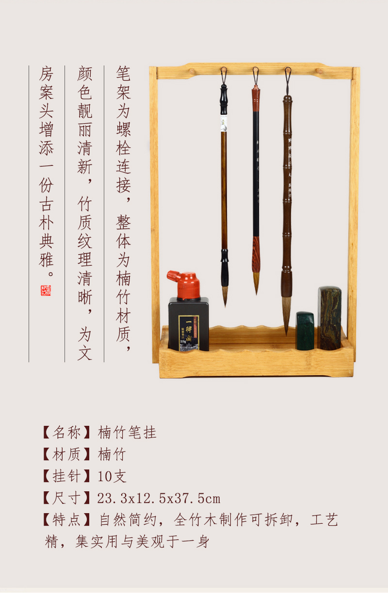 传玺竹楠木毛笔笔架文房四宝专用毛笔收纳盒架子初学练字书法儿童高档摆件入门练字笔墨纸砚挂件