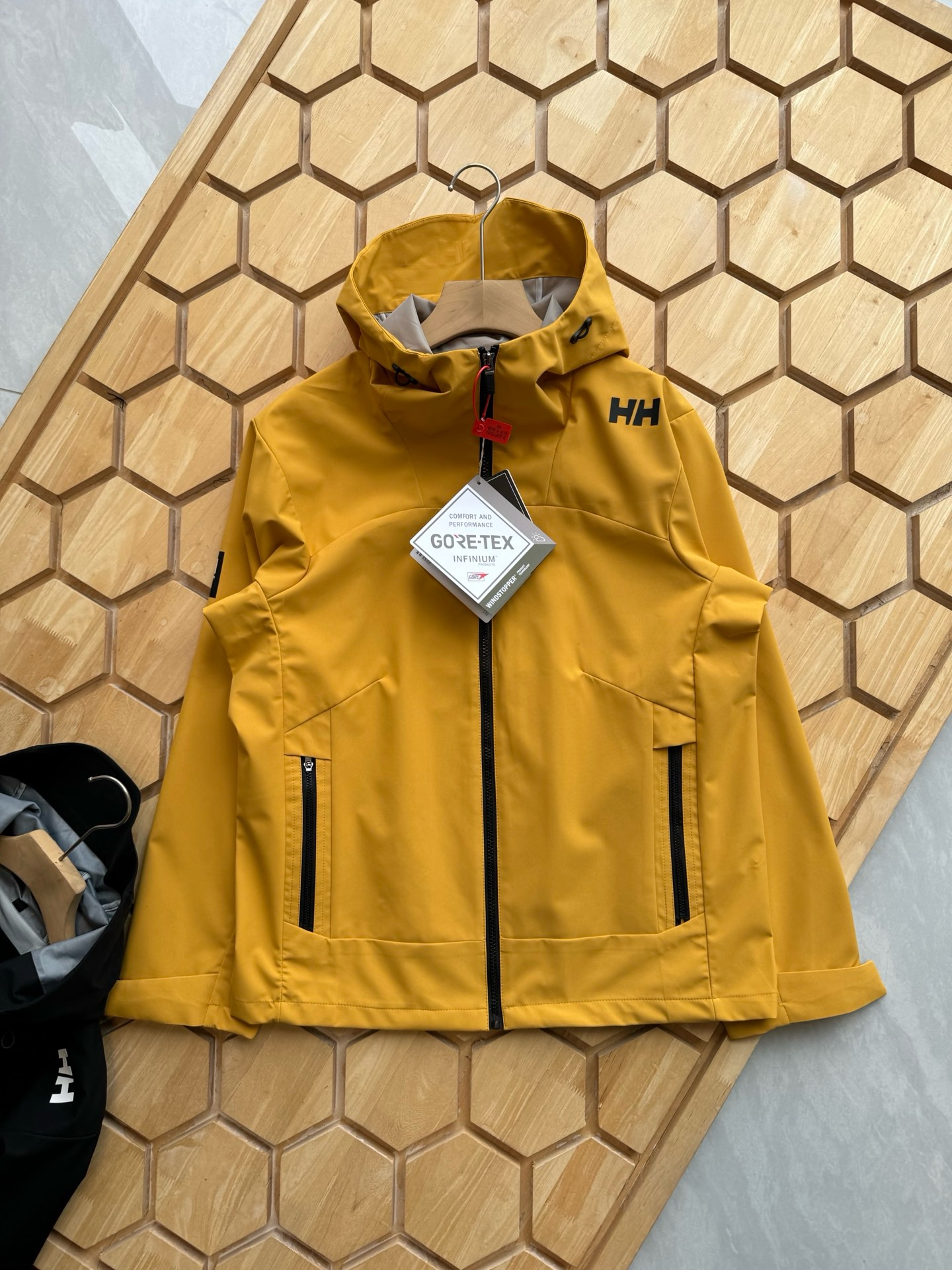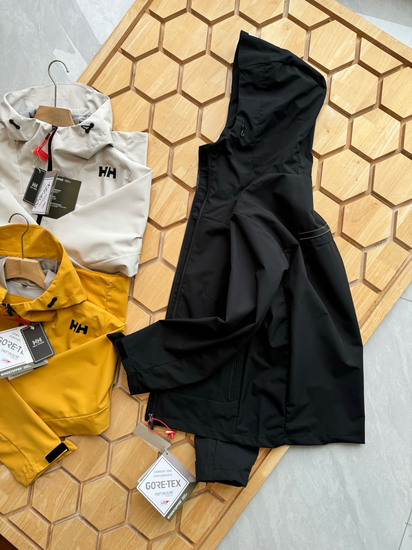 Helly Hansen 压胶高版本海丽汉森情侣拼接一体防泼水外套,SALT高端系列户外防风防水无缝压胶硬壳冲锋衣,专为户外运动人体工学设计,肩膀LOGO设计别具一格,搭配后身航海风格拼接,极具辨识度与时尚性,超多细节彰显旗舰爆款质感格调,Helly Tech Professional 3层织物结构,独家高防水透湿科技,通过面料防水性、透气性与拒水性的平衡,有效应对强风雨等多变天气及户外恶劣环境,减少闷热感,提高内部的舒适度,Bemis35L胶带层压结构,所有接缝全封闭式防水,100%防水防风性能,为户外运动登山徒步提供更舒适体验,采用两侧拉链口袋,更具便利性和美观度,领子顶端,袖口,后身多处点缀,增加户外辨识度和安全性,袖头魔术贴采用激光剪裁+嵌入式固定,增加精致度,底边调节系统,拒绝寒风侵入,高端品质货,喜欢的兄弟赶紧入手!