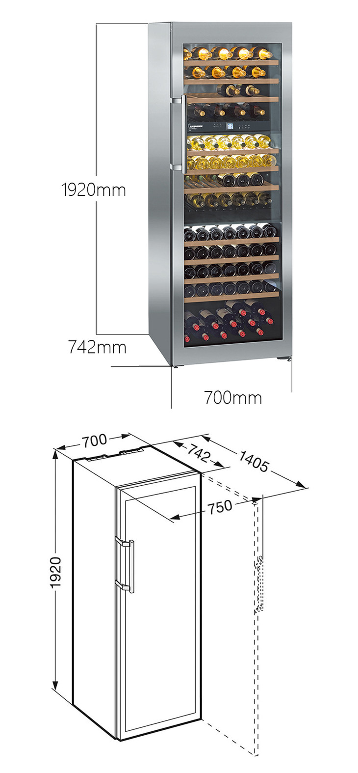 LIEBHERR利勃海尔 502升 Vinidor三温区独立式葡萄酒柜 WTes5872(8折)