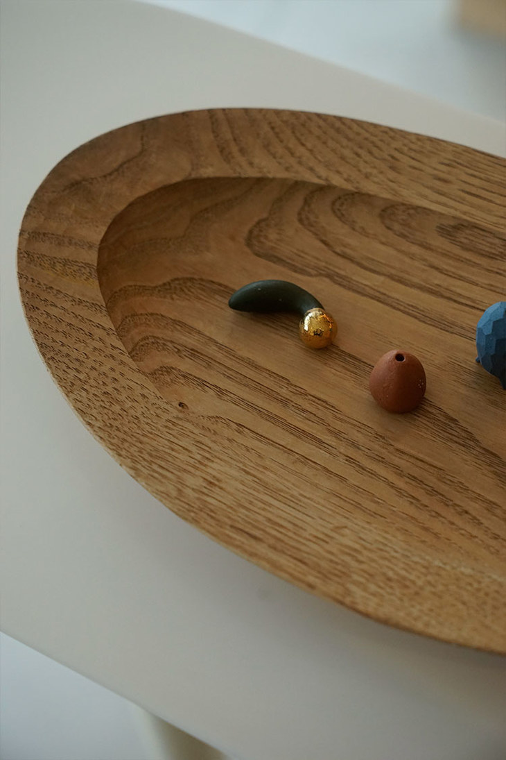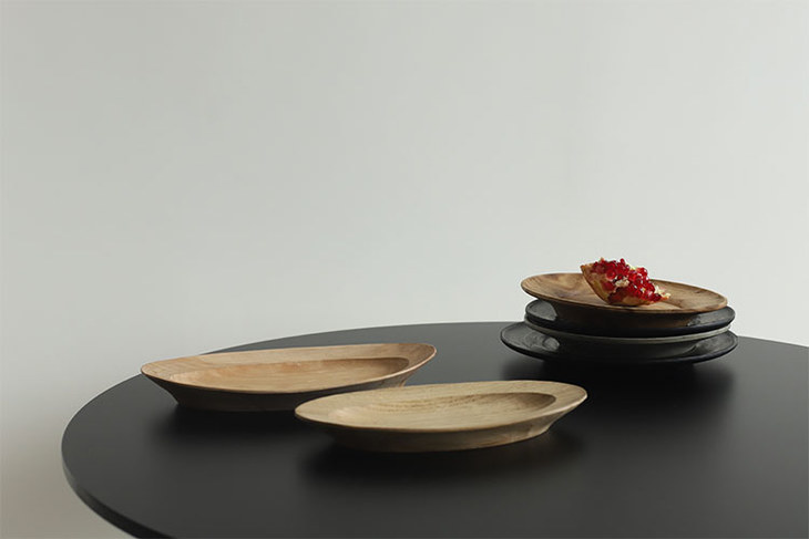 「中国 李祖日」木器 日用食器 茶道具 椭圆盘 圆边盘