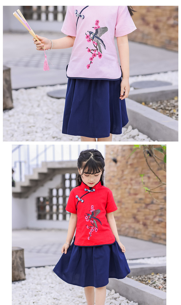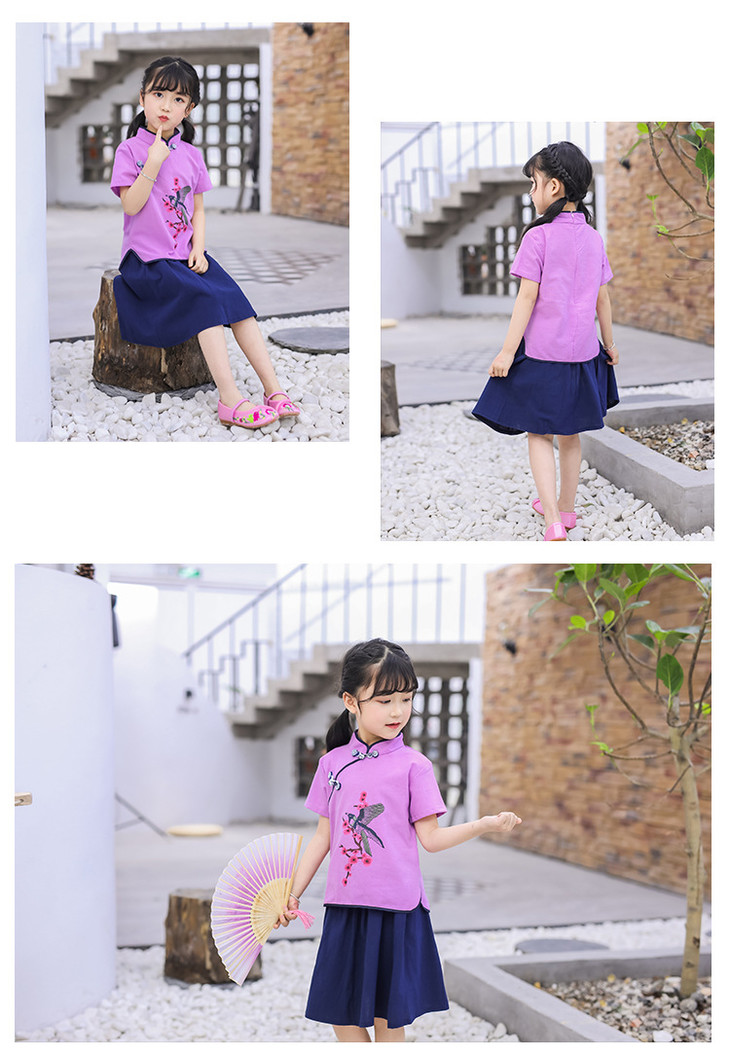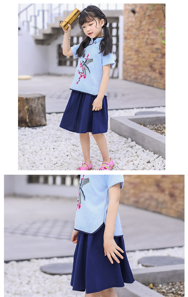 【童装】新款儿童汉服夏女中国风童装棉麻短袖襦裙套装