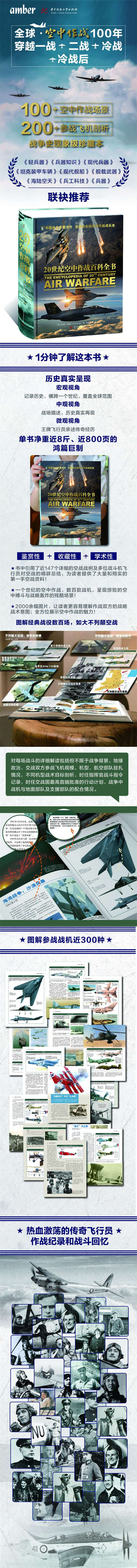 本书总共有超过2000幅珍贵历史图片和工艺图,及大篇幅的文字,详细介绍整个20世纪自有空中作战以来的全部空战历史.并有各型战机的精要介绍,研发历史,图片档案,战机特点和性能,尤其着中其空战史.是战机百科和战机档案系列的重要补充和扩展。