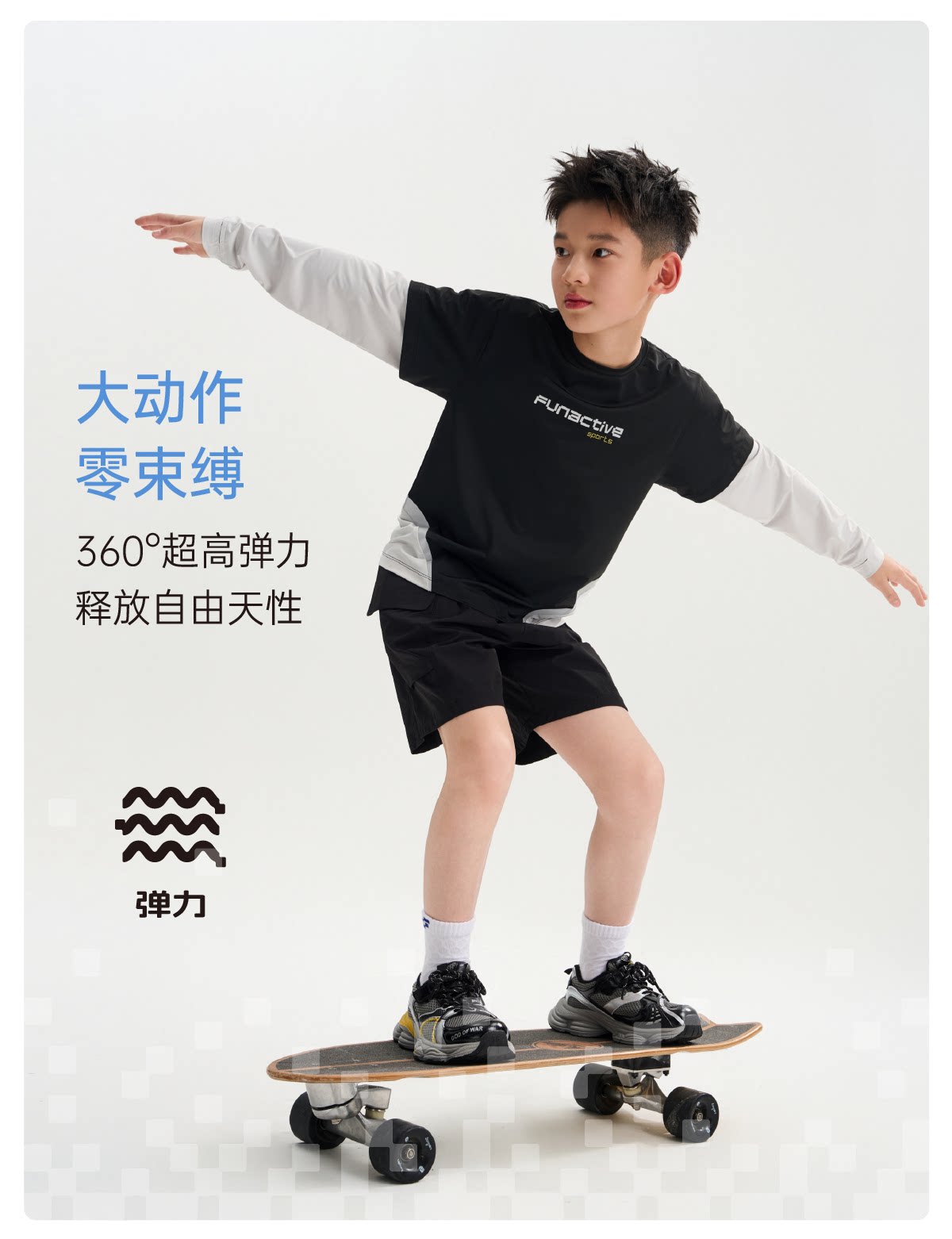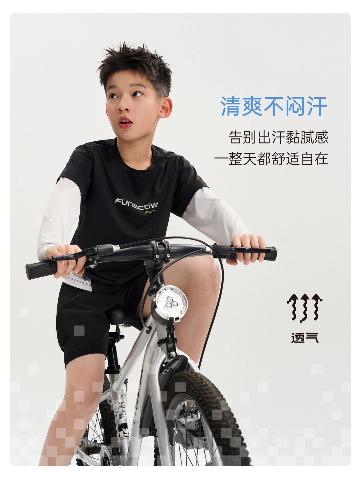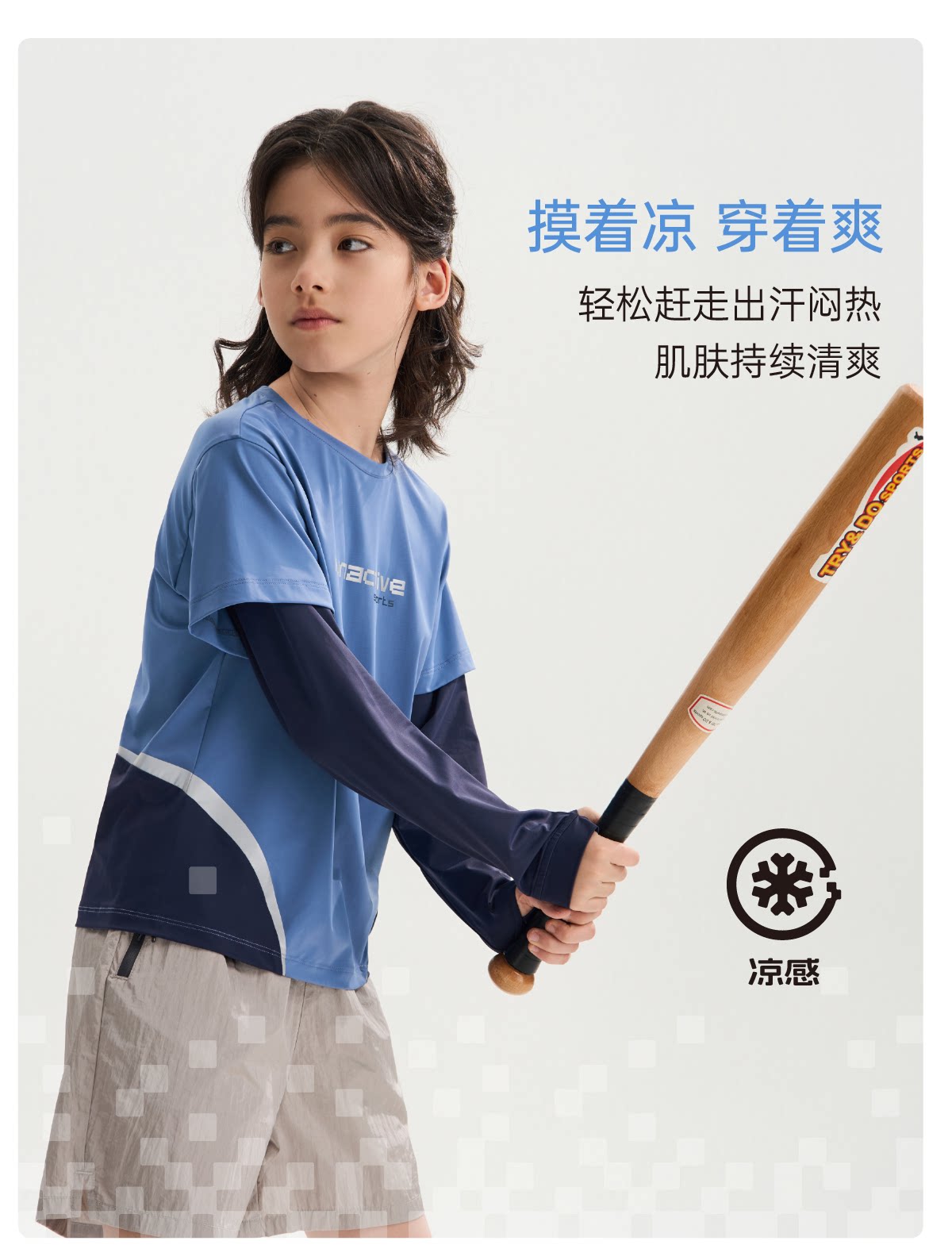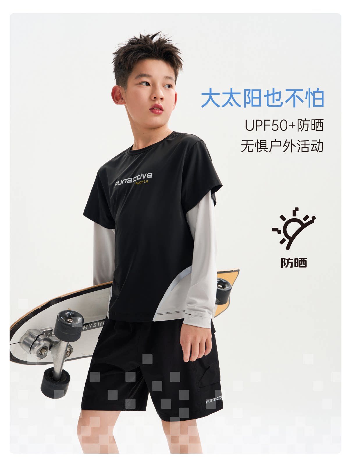 funactive男童假两件长袖T恤儿童运动凉感亲肤防晒衣F1UT20191