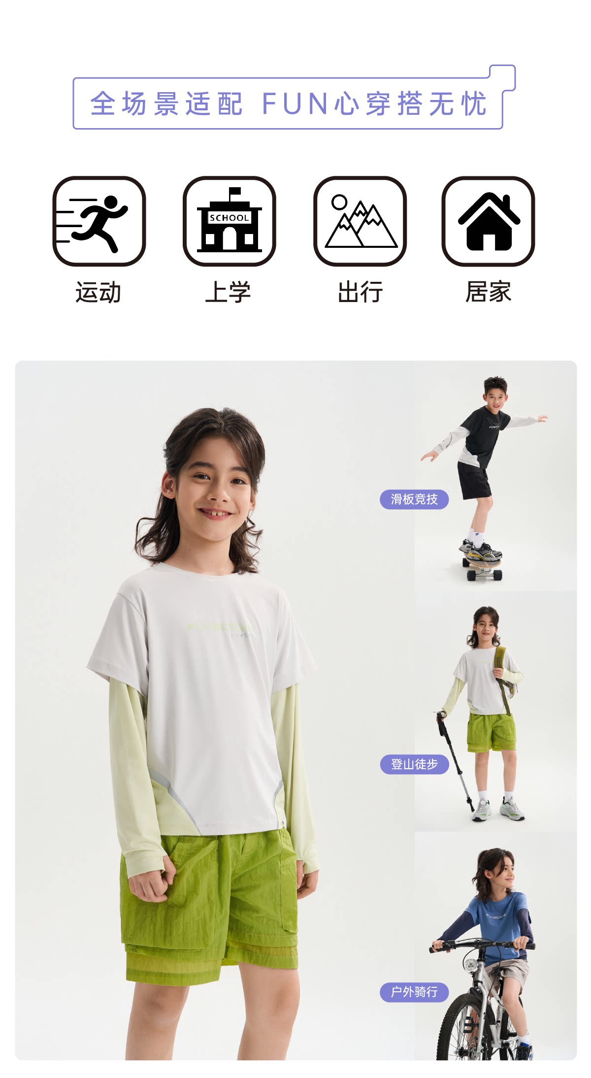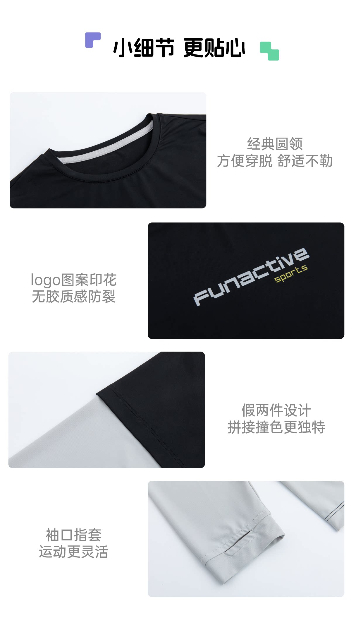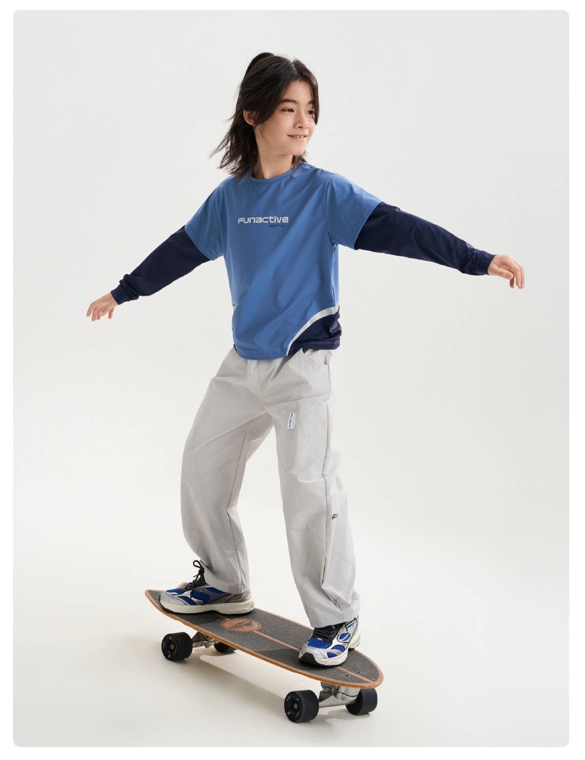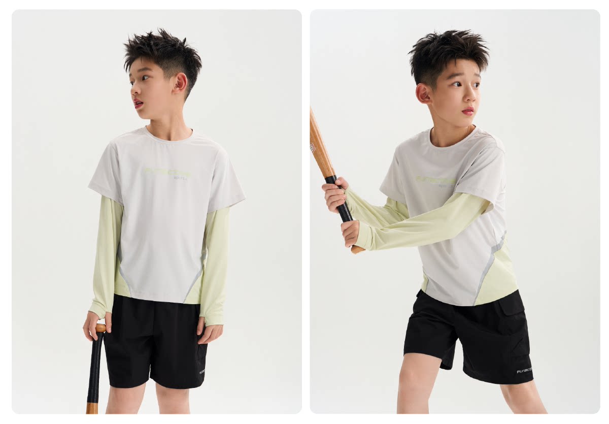 funactive男童假两件长袖T恤儿童运动凉感亲肤防晒衣F1UT20191