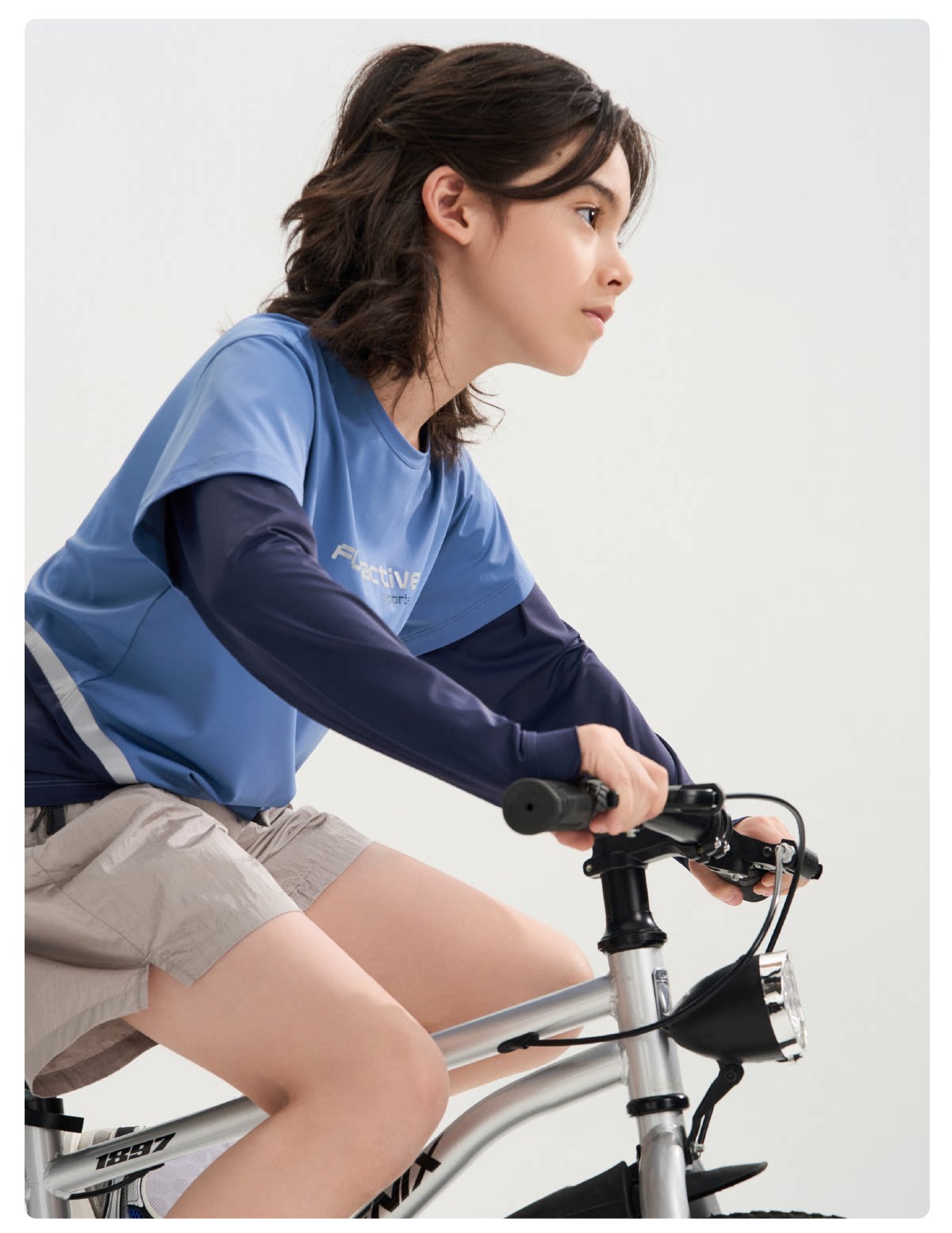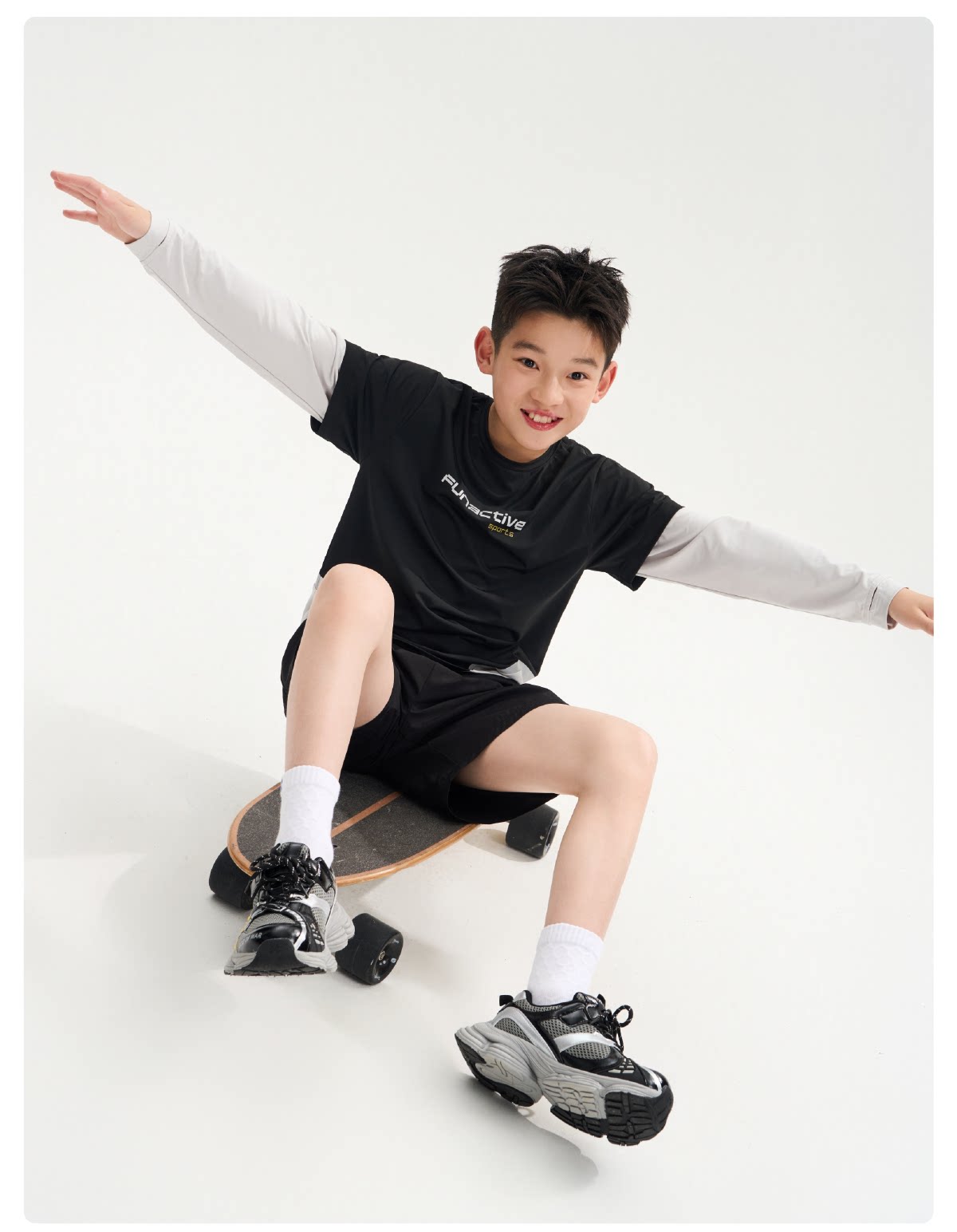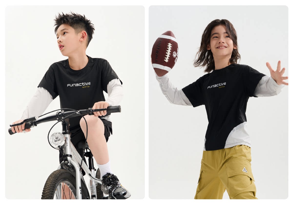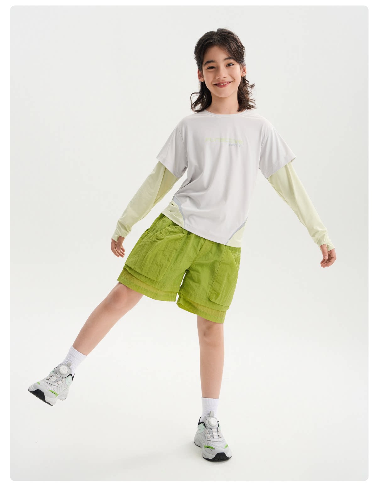 funactive男童假两件长袖T恤儿童运动凉感亲肤防晒衣F1UT20191