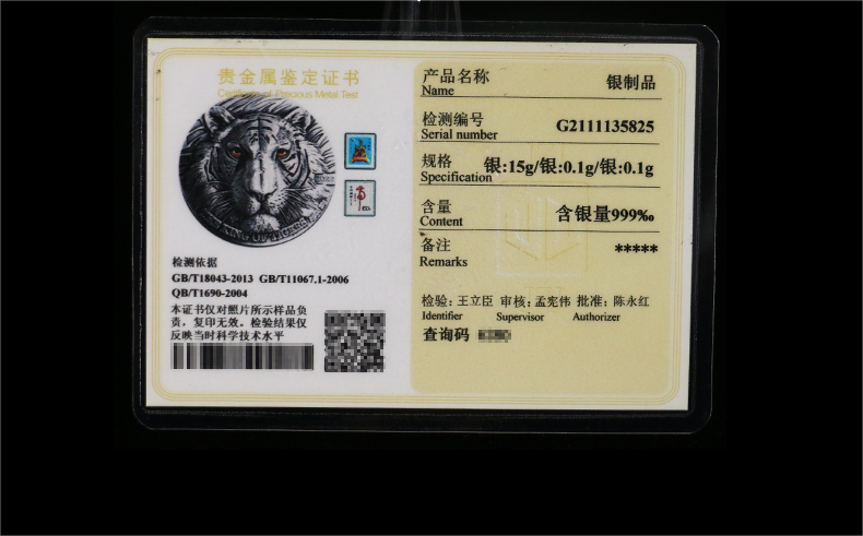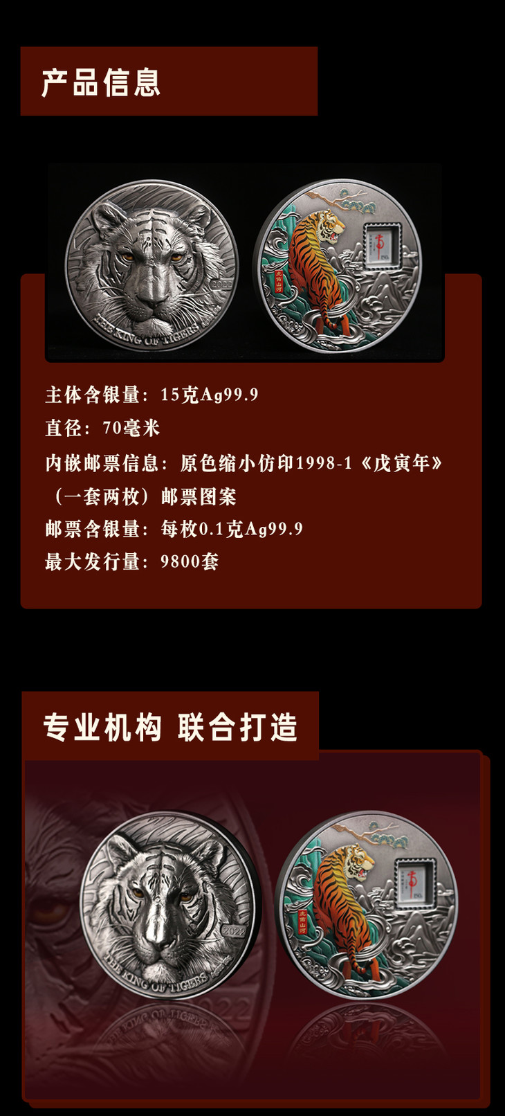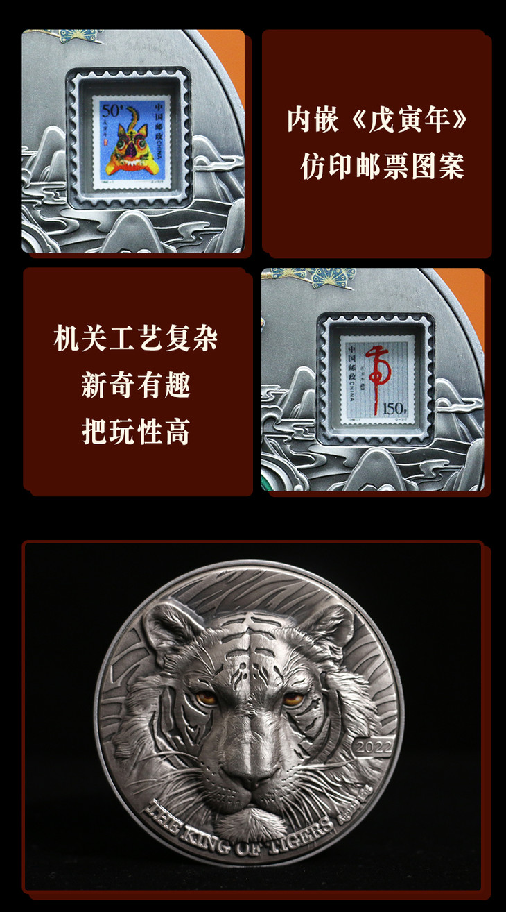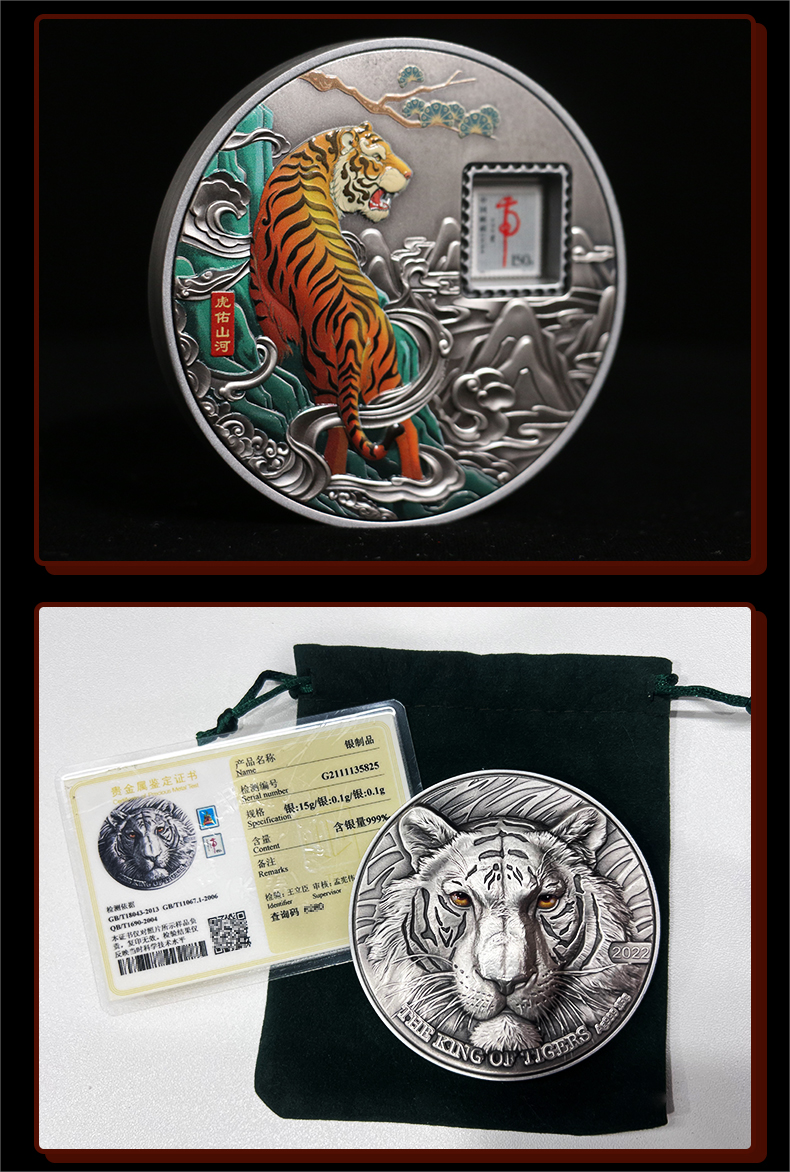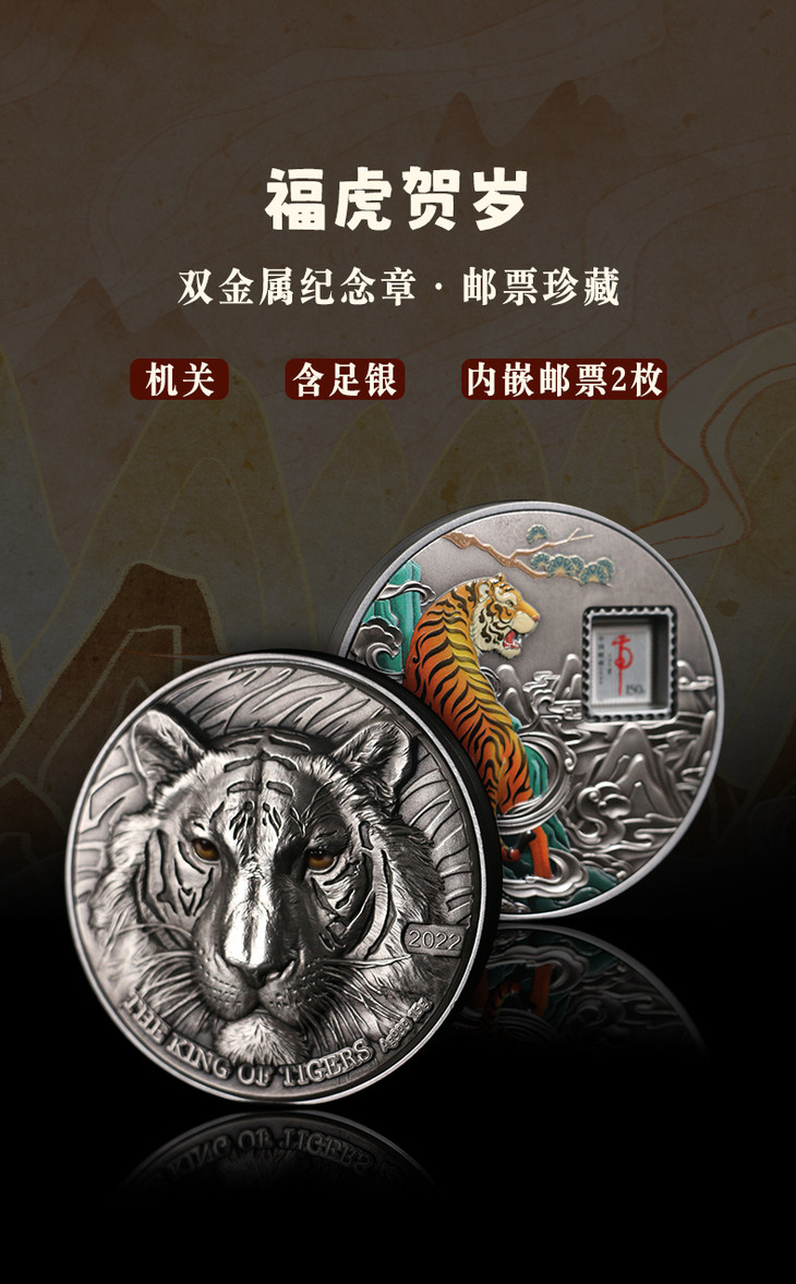 “虎”佑山河·双金属机关纪念银章(内嵌2枚邮票)