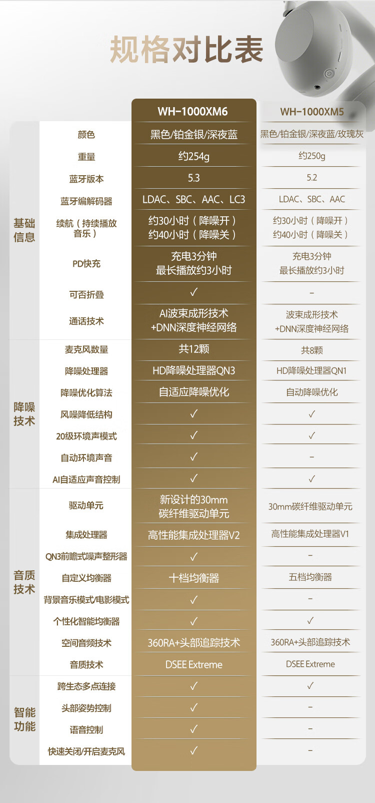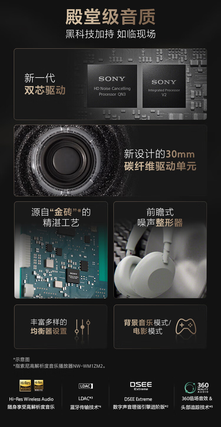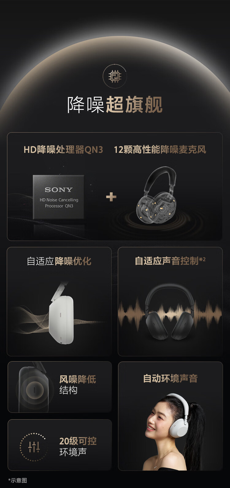 索尼(SONY)WH-1000XM6 头戴式无线降噪耳机 AI智能降噪