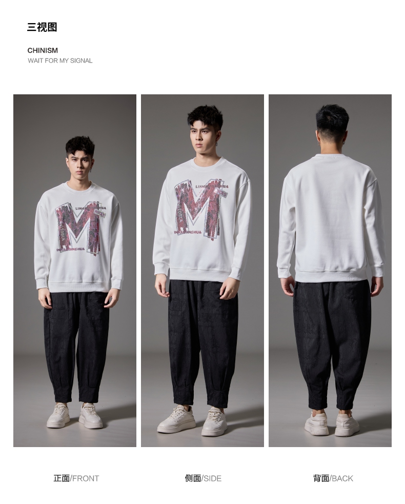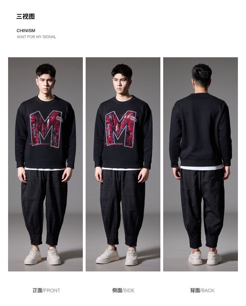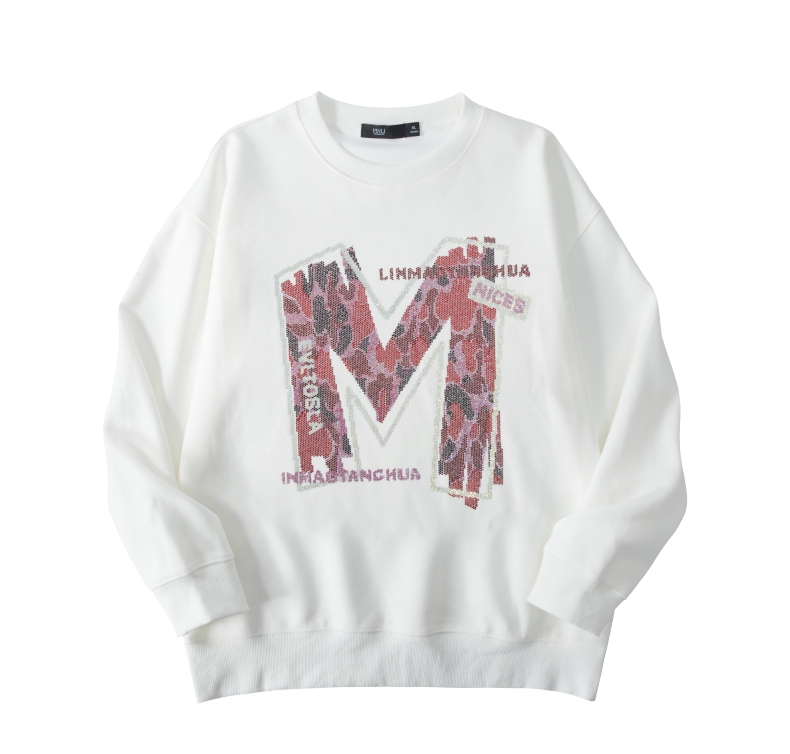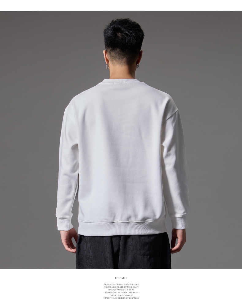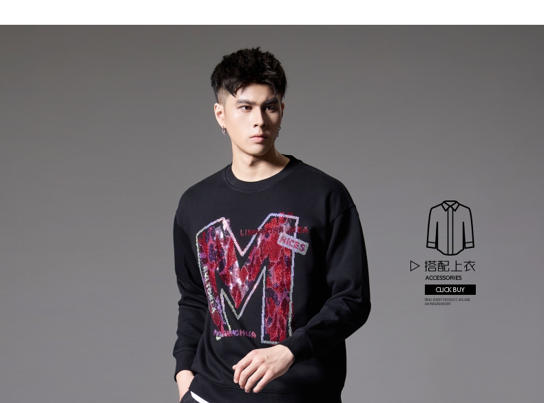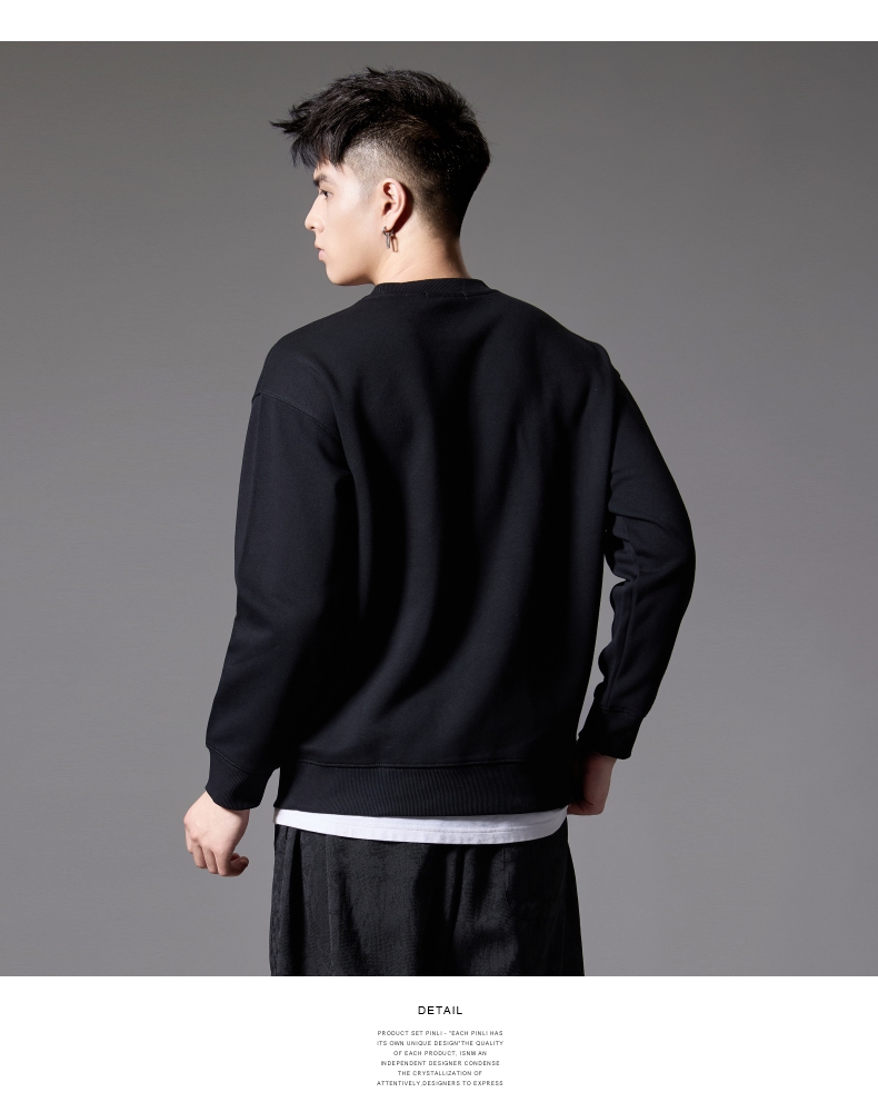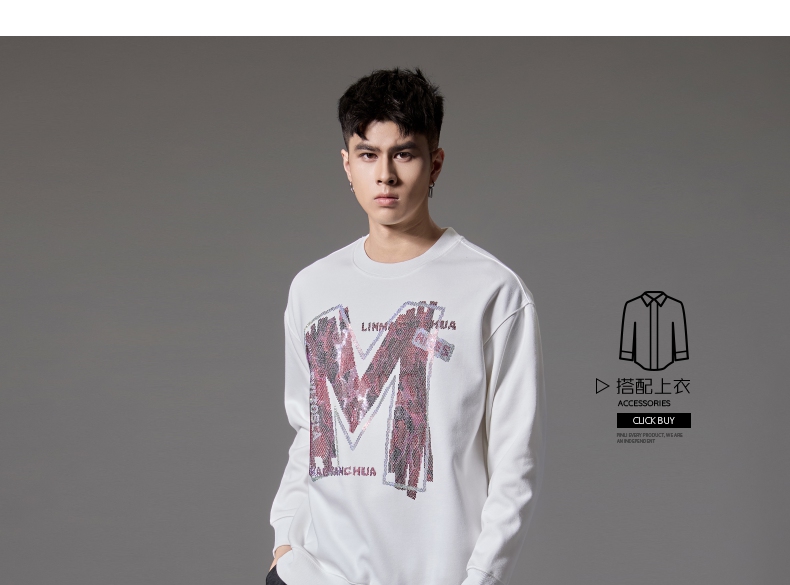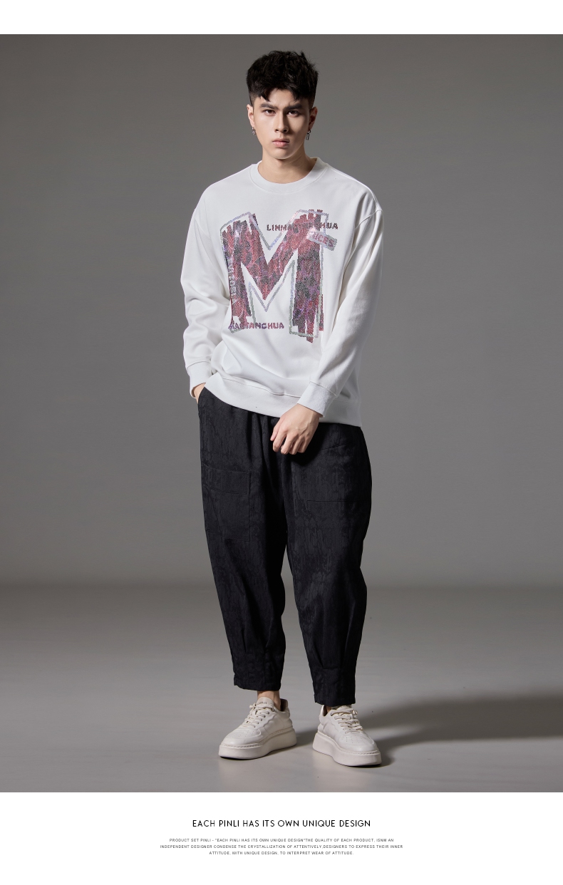 PINLI品立2024秋季新款男士字母烫钻套头卫衣百搭休闲宽松上衣潮BG243109014