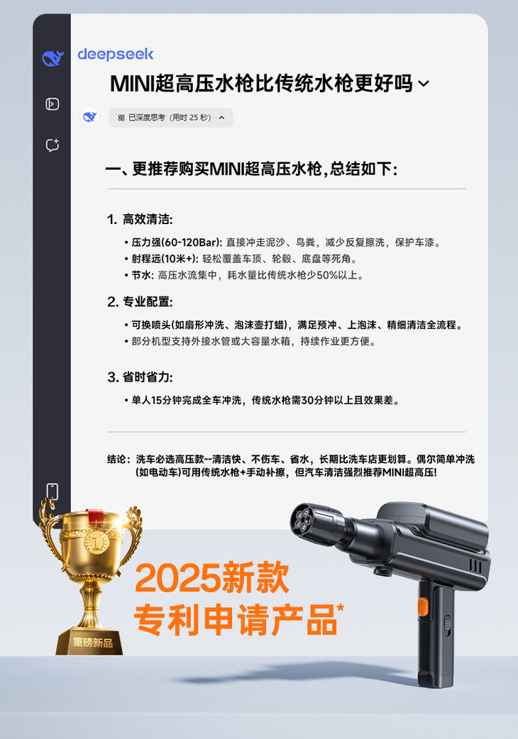 [屁侠推荐]单手握持 轻松无感 喜车友超mini无线速洗机 创新一体式增压泵机 高压去污 两年质保