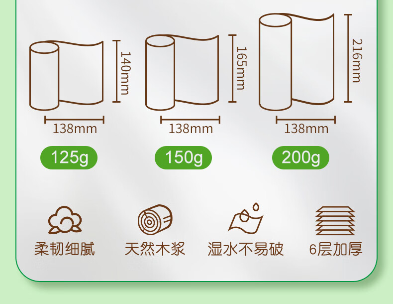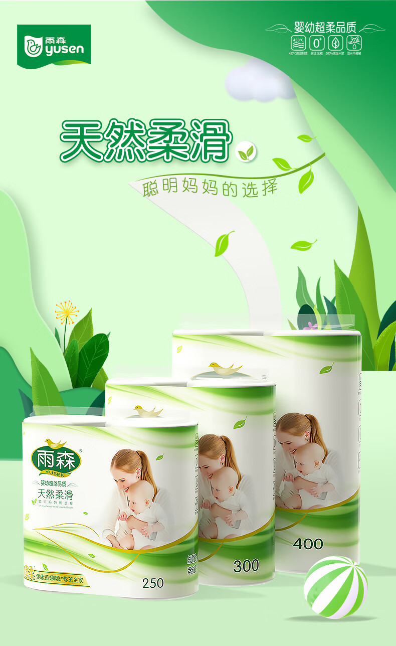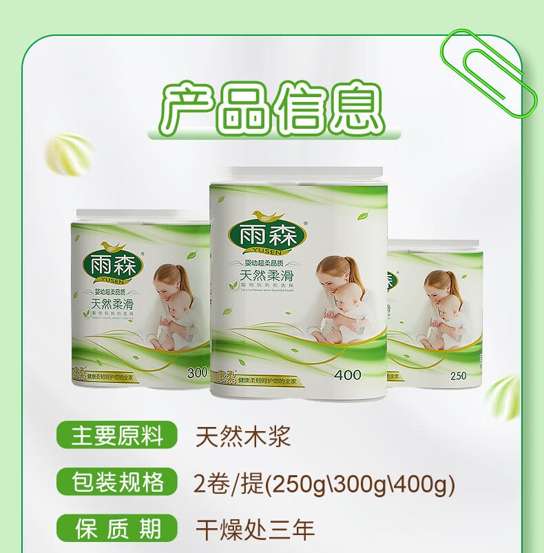雨森卷纸 母婴6层加厚柔韧 亲肤妇婴适用无芯厕所经期适用150g*2卷