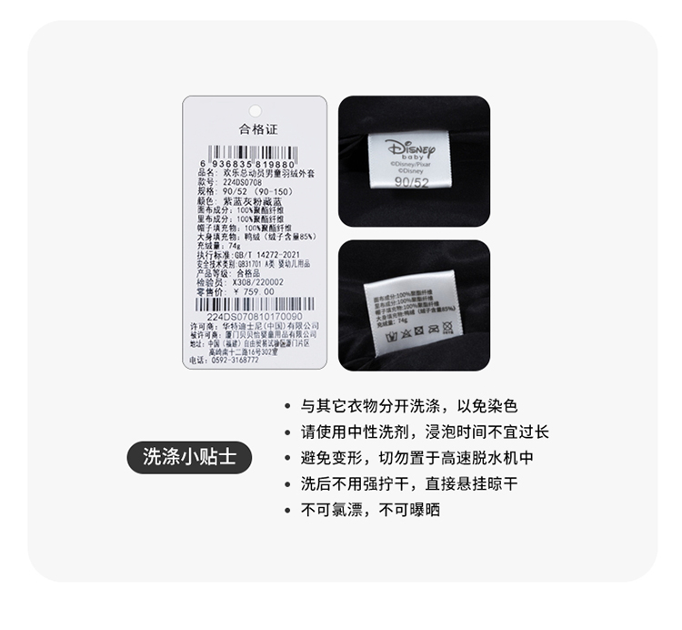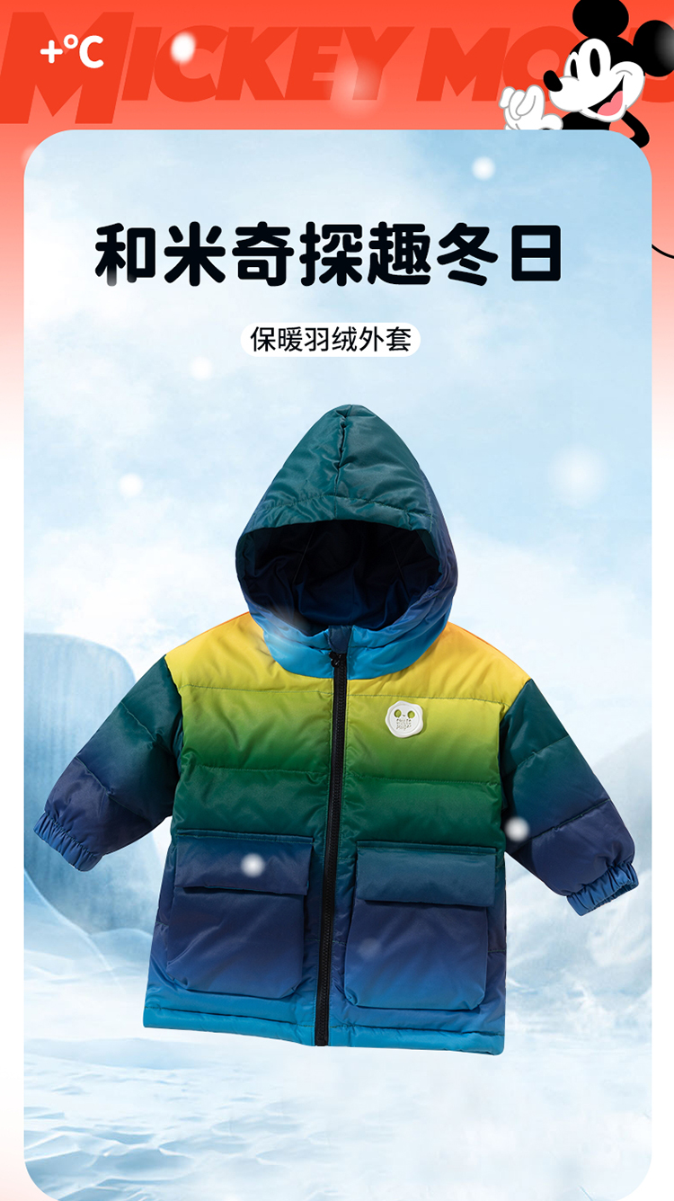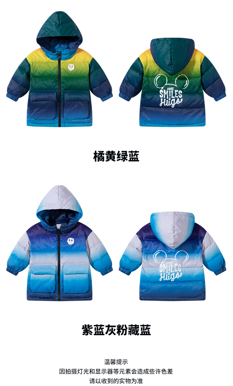 迪士尼冬季男童羽绒外套连帽防风上衣中大童保暖中长款羽绒服224DS0708