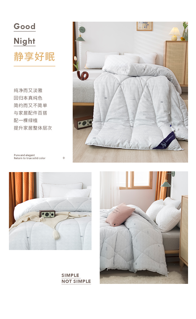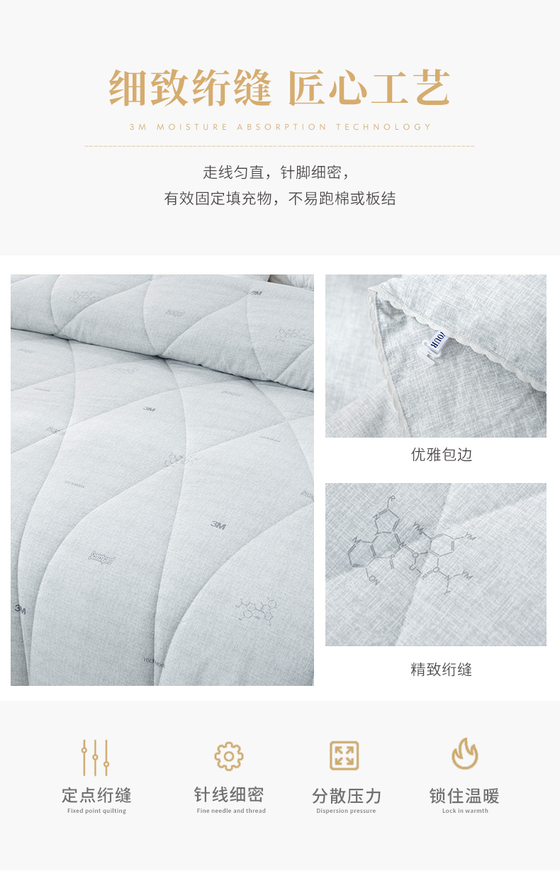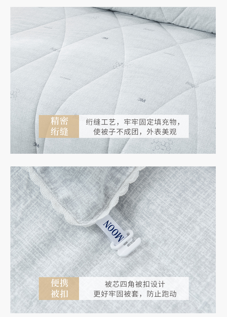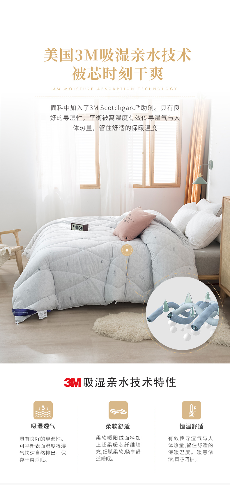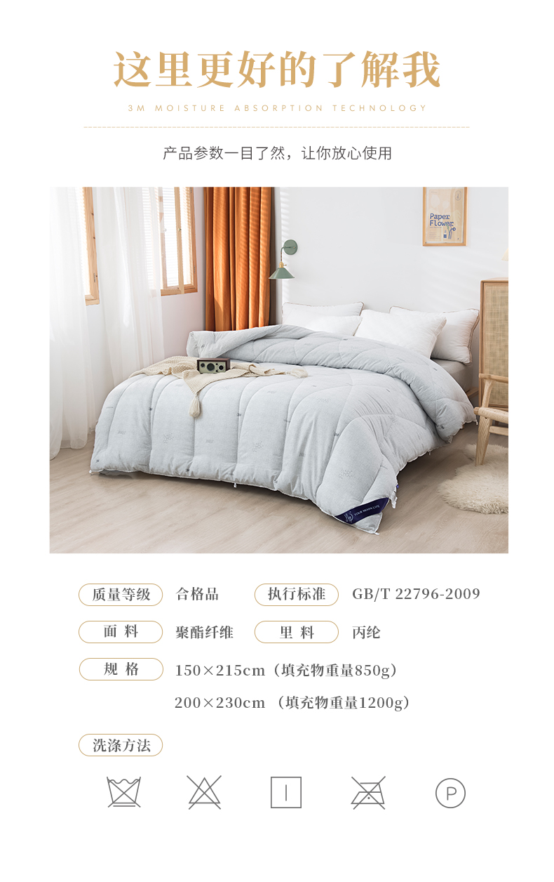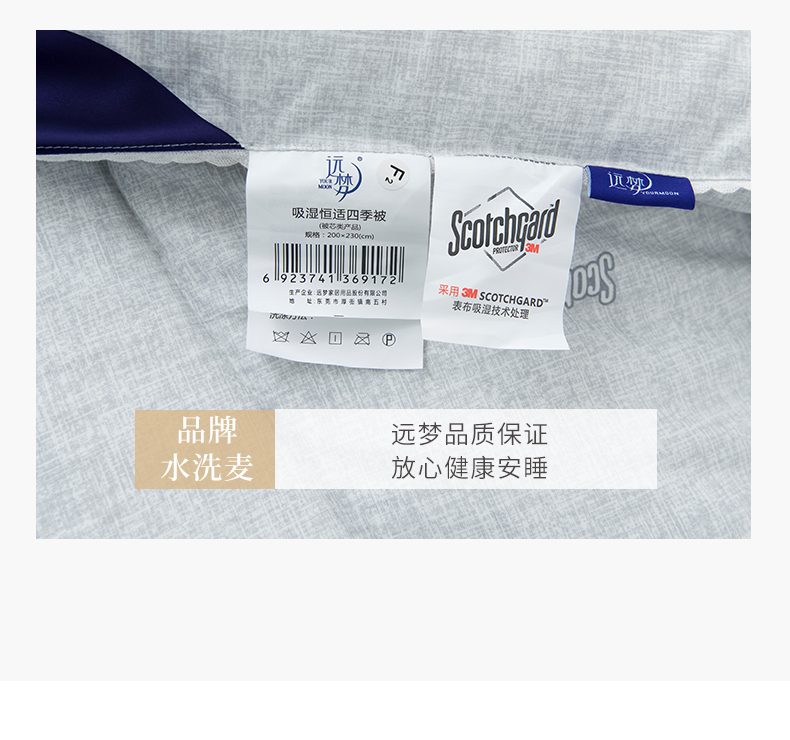 a. 【恒温常适】远梦研发团队采用美国国际3M公司的3M Scotchgrrd,与国际服装运动品牌同一吸湿技术处理,面料具有良好的导湿性,能将人体皮肤湿气快速而自然的排出,平衡被窝湿度。有效传导湿气与人体热量,留住舒适的保暖温度。
