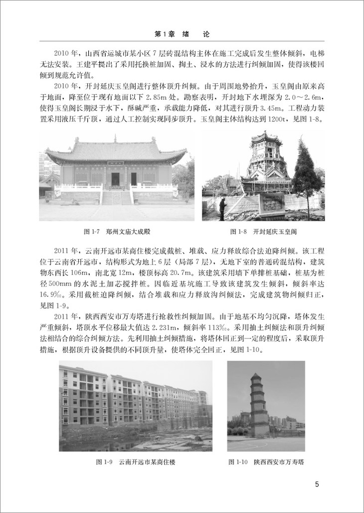 本书主要介绍了建筑物倾斜产生的原因及分析、建筑物纠倾的技术难点、建筑物检测鉴定、建筑物止倾加固、建筑物顶升法纠倾、建筑物迫降法纠倾、建筑物综合法纠倾、建筑物纠倾实时监测、建筑物纠倾设备以及10项典型纠倾工程实践的案例分析等内容。