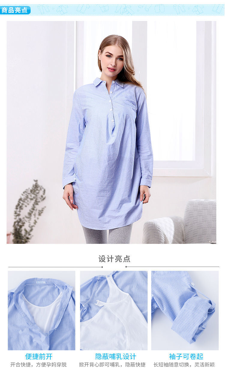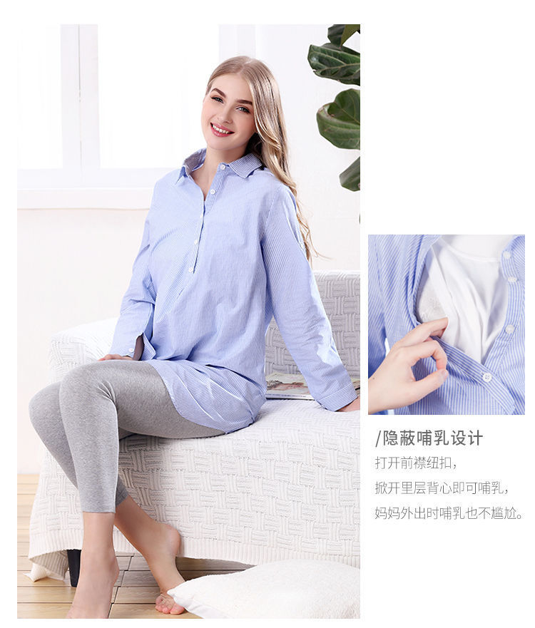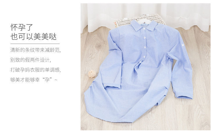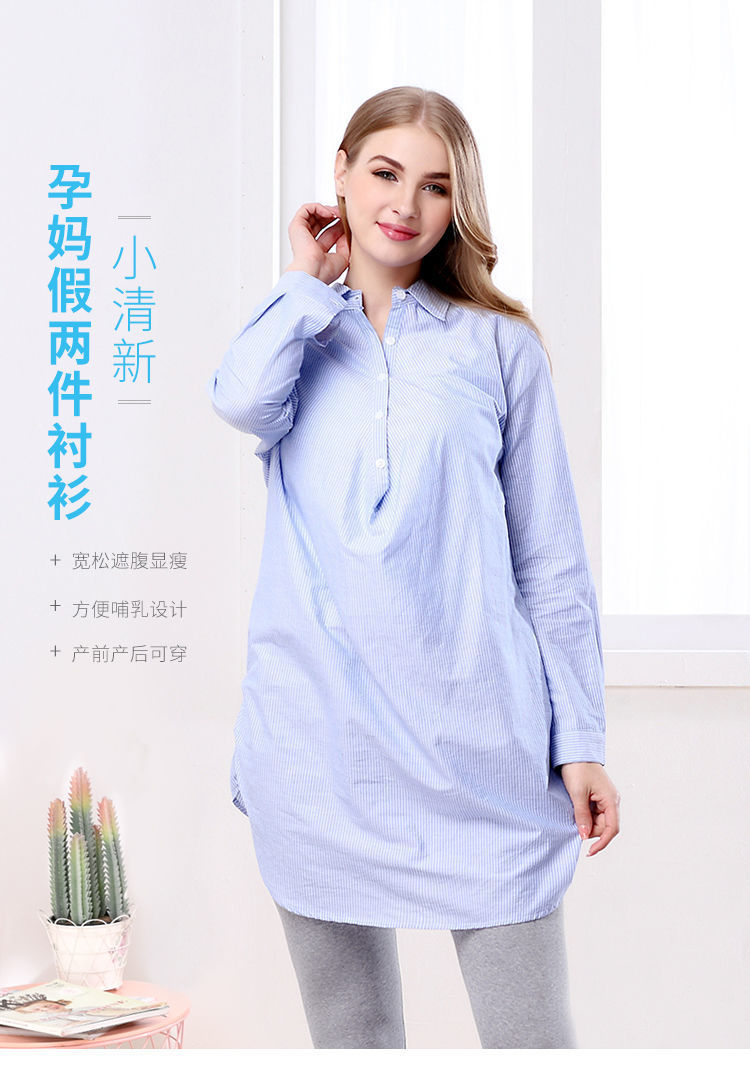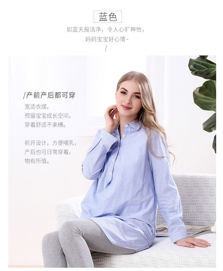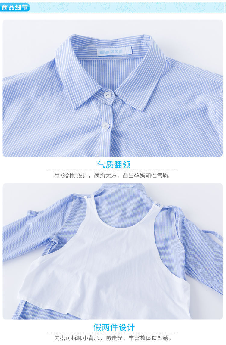 贝贝怡孕妇装长袖纯棉衬衫春秋装新款中长款孕期潮妈哺乳宽松上衣