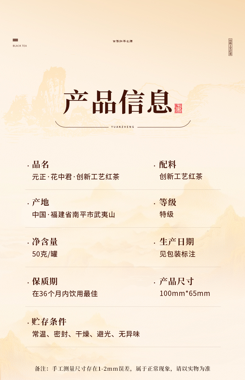 元正 茶票花中君 特级武夷红茶茶叶兰花香罐装50g/150g/300g
