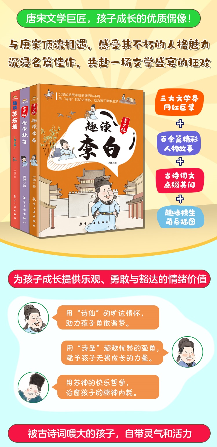 趣读李白+趣读杜甫+趣读苏东坡(全3册)青少版