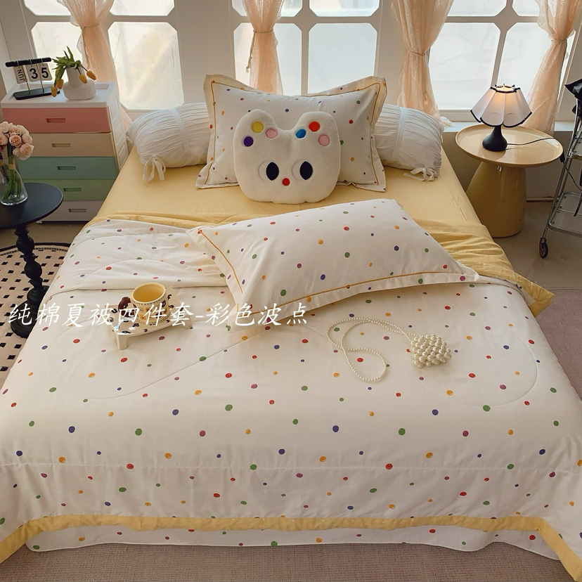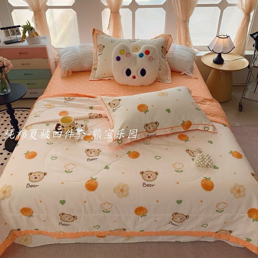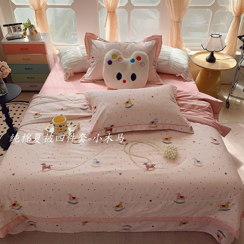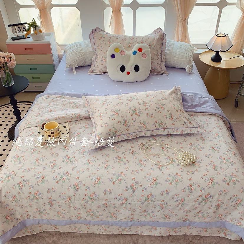 ➬夏季必备产品 适合裸睡的四件套 全棉健康环保♻️整张超柔纤维填充 绗缝工艺 可以直接机洗;不变形~纯手工包边工艺;不跑棉;不走位