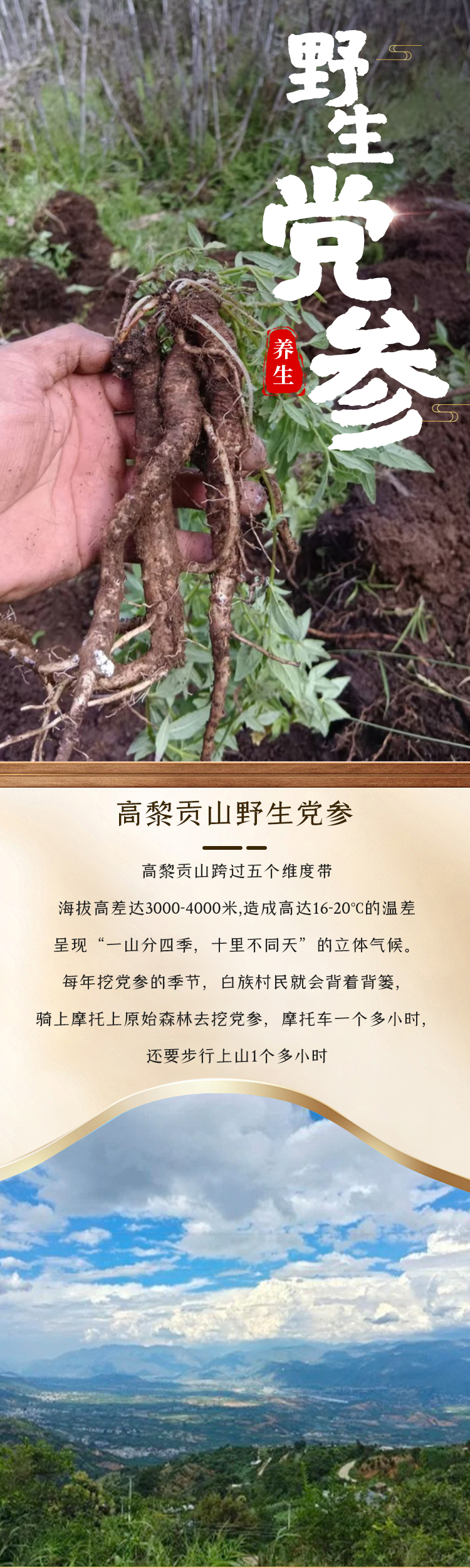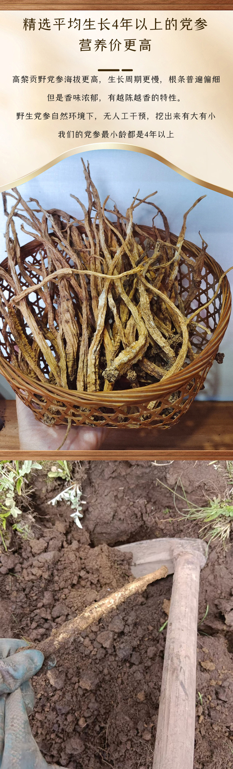 【野生党参】高黎贡野生党参 无人工干预 最小龄4年以上 高黎贡野党参海拔更高,生长周期更慢,根条普遍偏细,但是香味浓郁,有越陈越香的特性