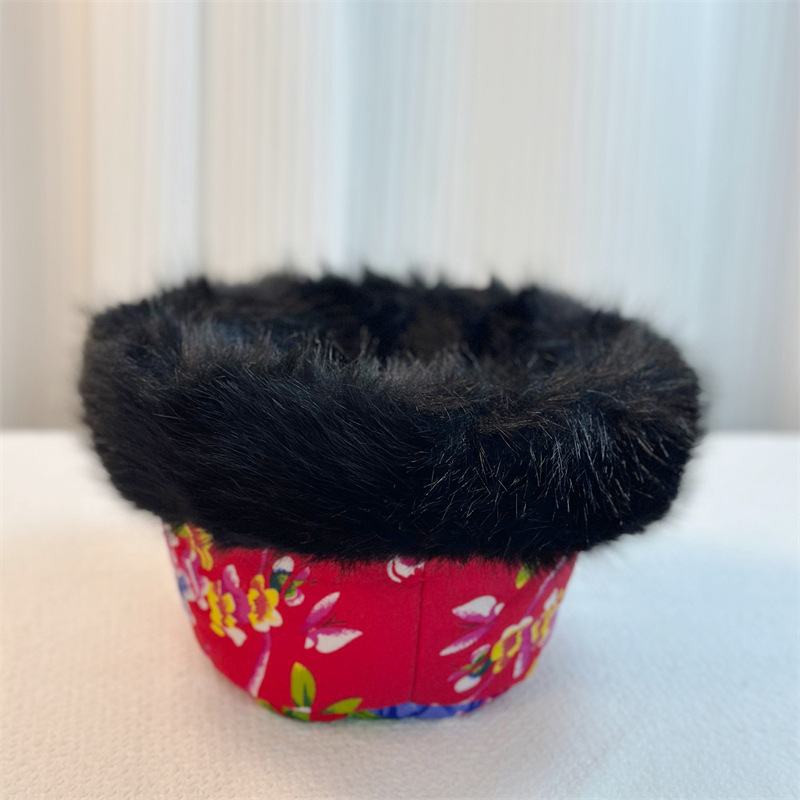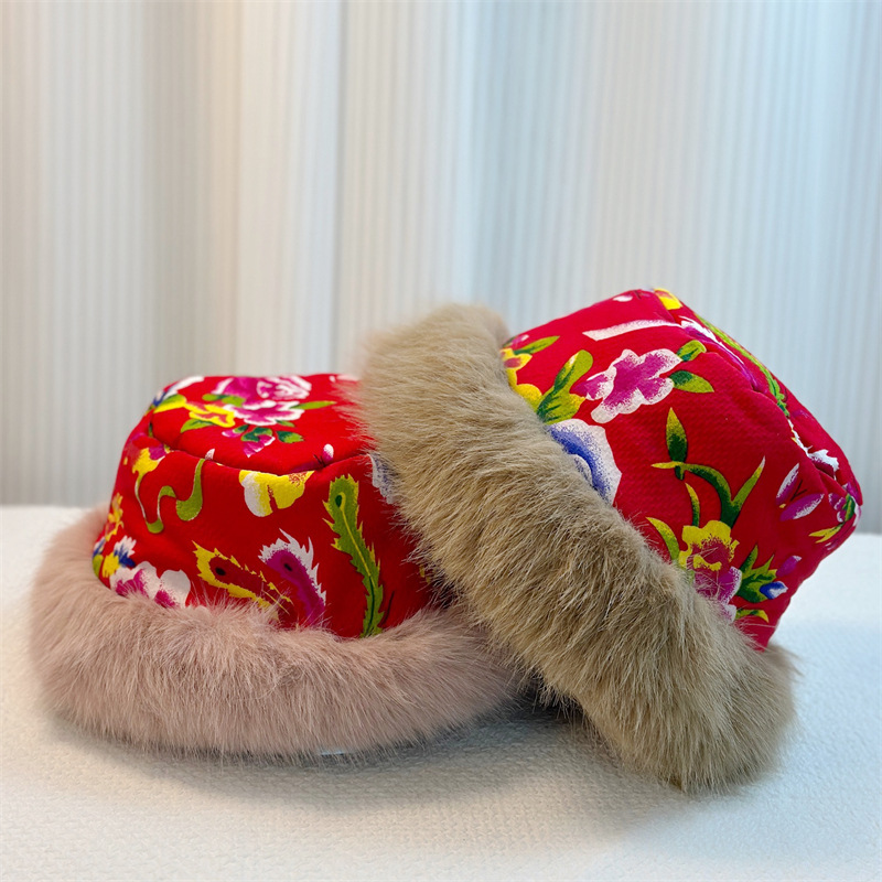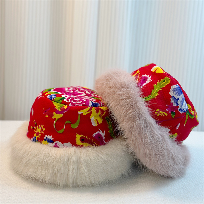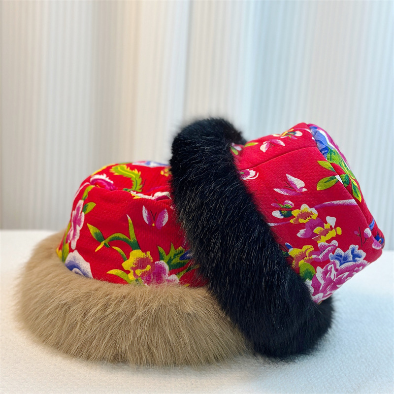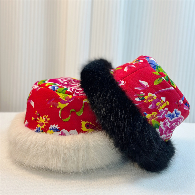 秋冬民族风东北大花毛绒渔夫帽男女潮网红款保暖蒙古帽