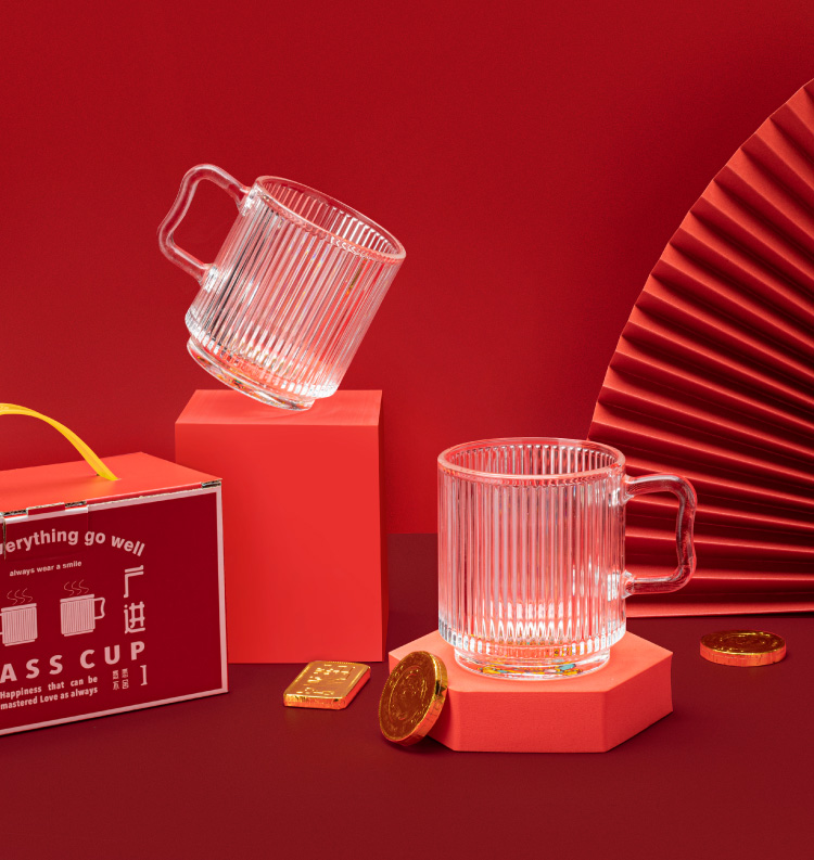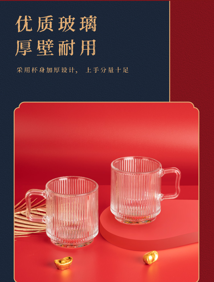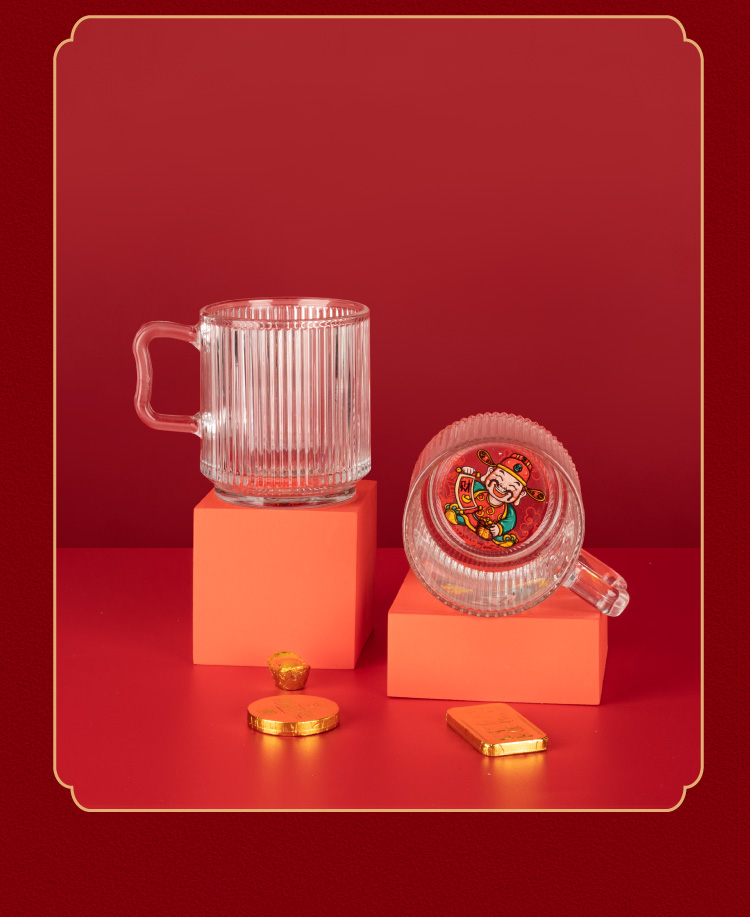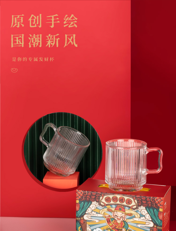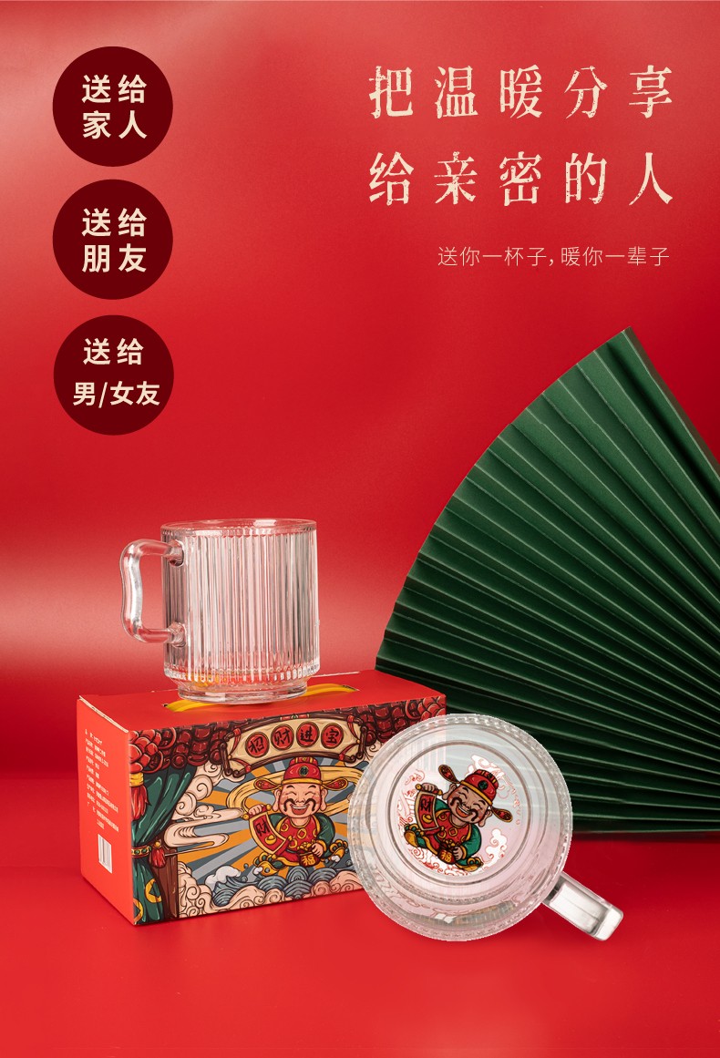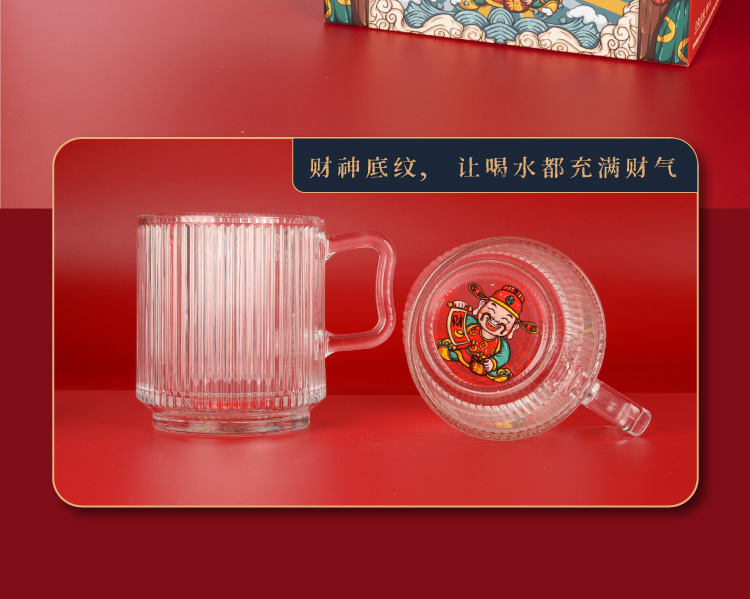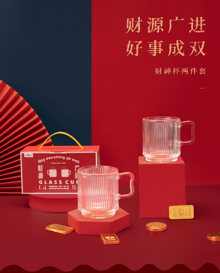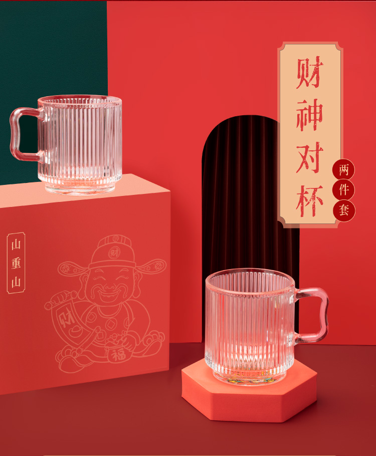 山重山玻璃水杯礼品客户小礼物办公室家用泡茶杯350ml多功能玻璃杯套装伴手礼9016财神杯礼盒装 (圆通)财神杯2件套