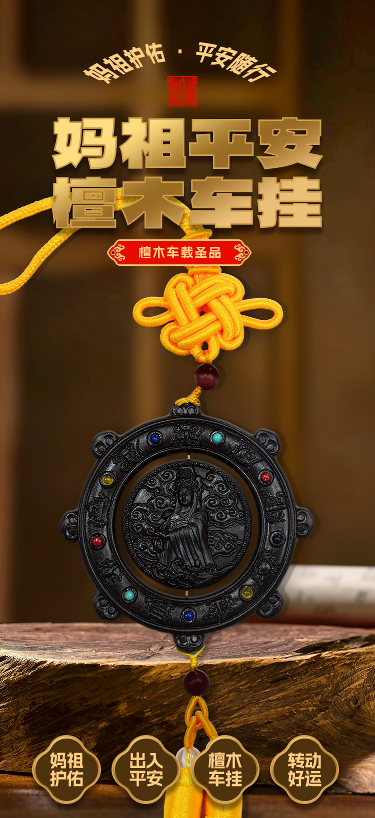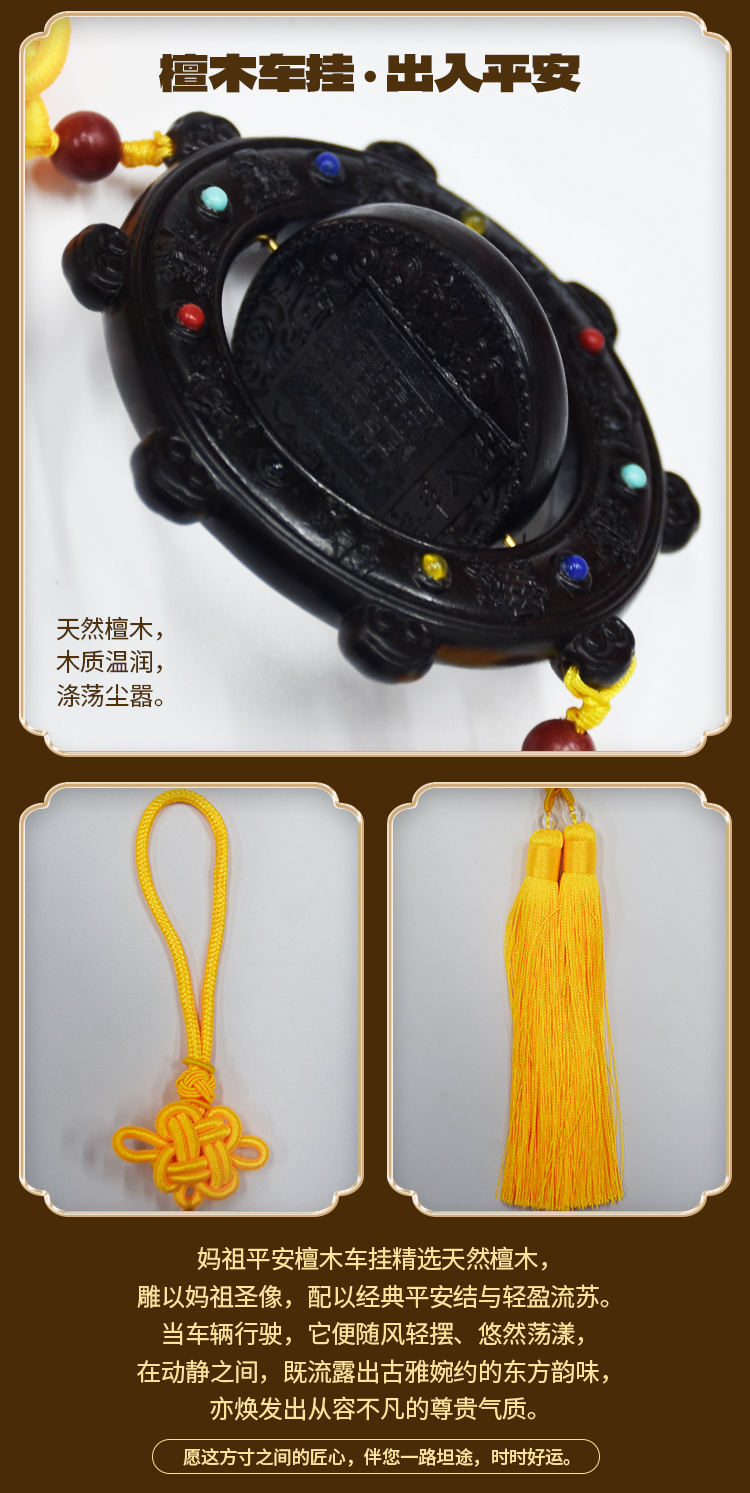 湄洲妈妈祖平安檀木车挂 汽车装饰创意挂件