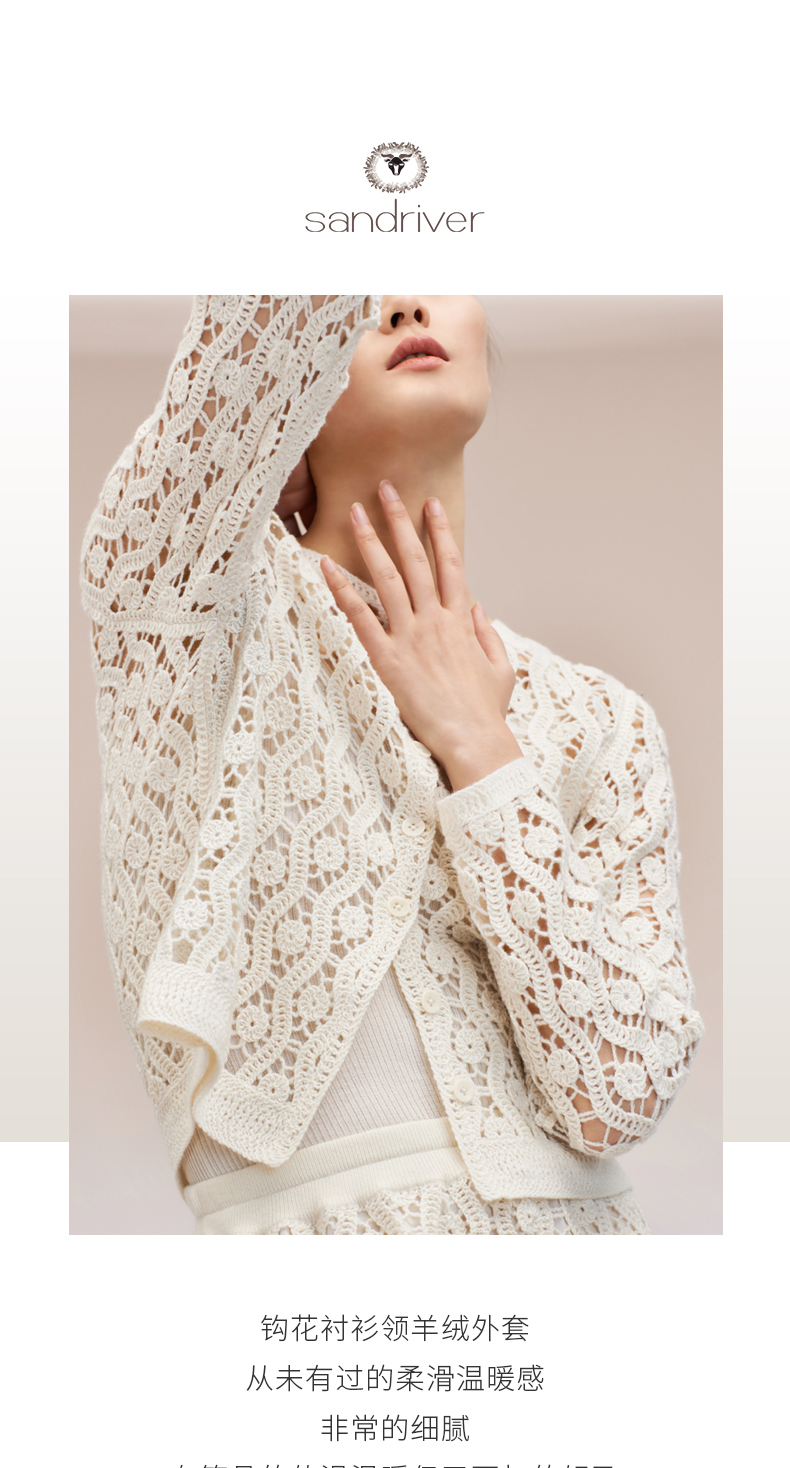 历年在巴黎时装周亮相,享誉世界的艺术羊绒品牌[Sandriver 沙涓]由羊绒布道者郭秀玲女士创立。阿拉善自有牧场纯种羔羊绒,日本国宝设计师小筱顺子,上海自有基地精工细作。承载羊绒情怀,坚持匠人品质。