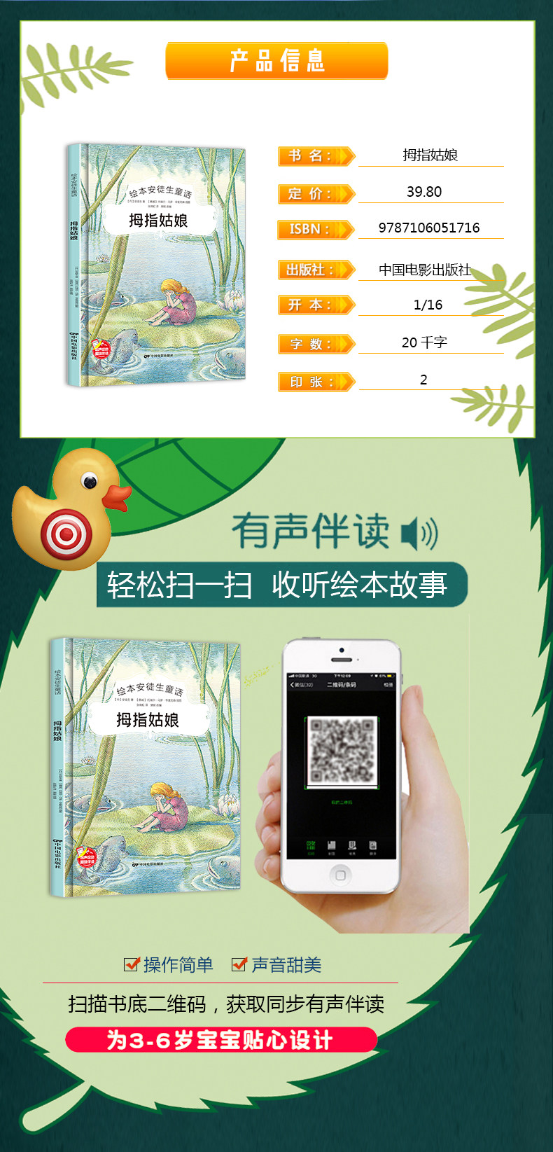 安徒生童话绘本拇指姑娘三年级上册必读故事书 小学生课外阅读书籍一年级课外书6-8-10岁老师推荐经典 幼儿童读物宝宝睡前故事大班