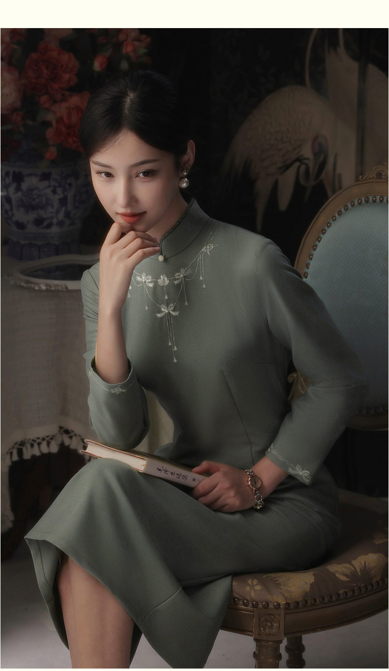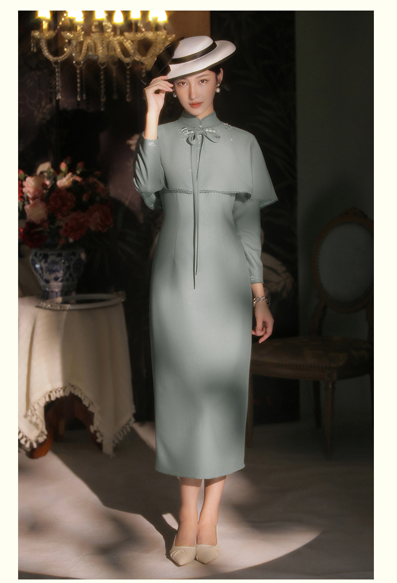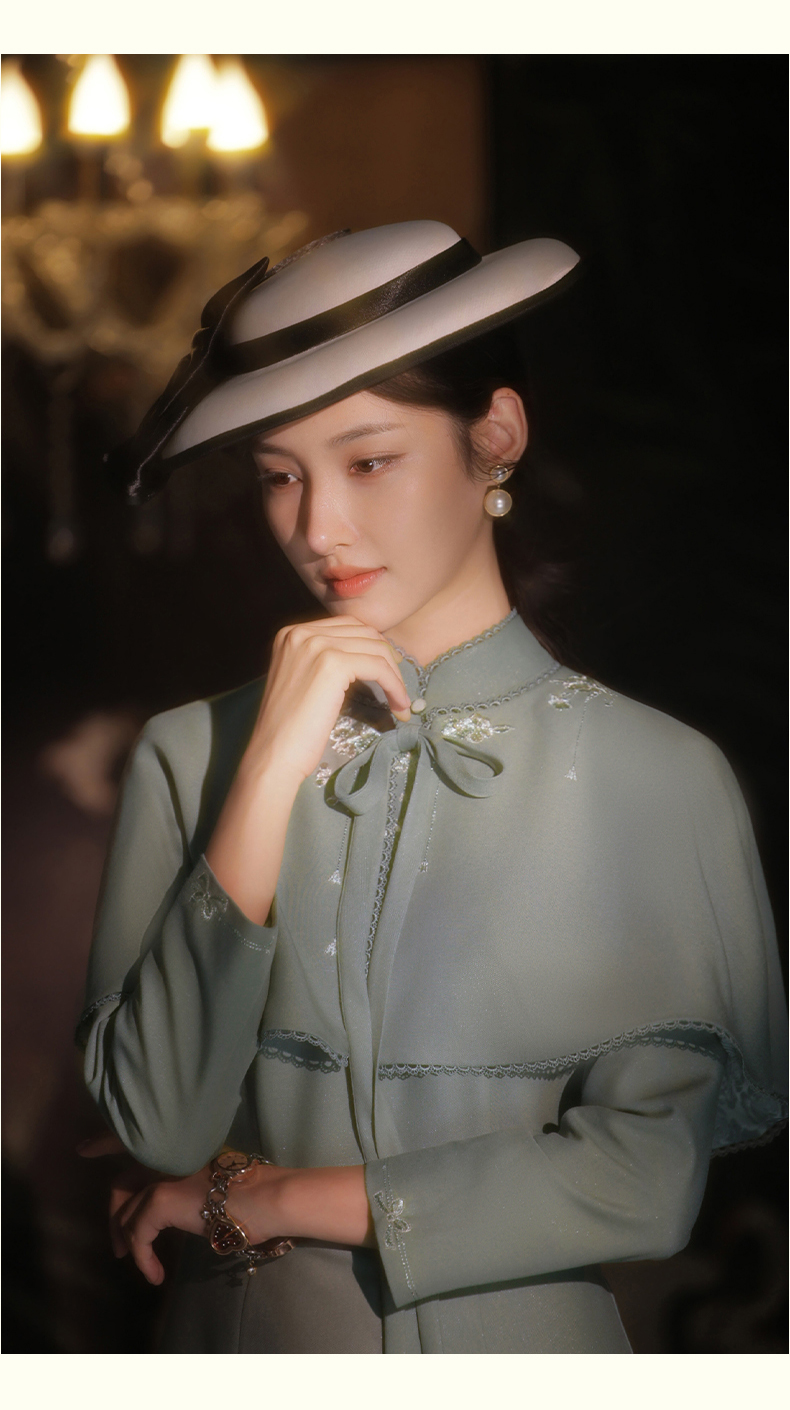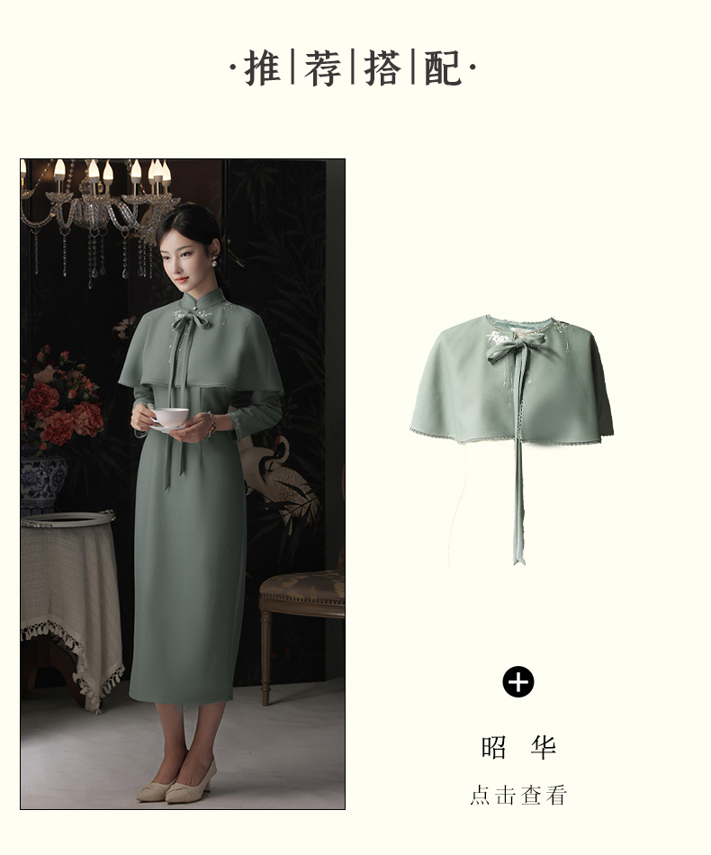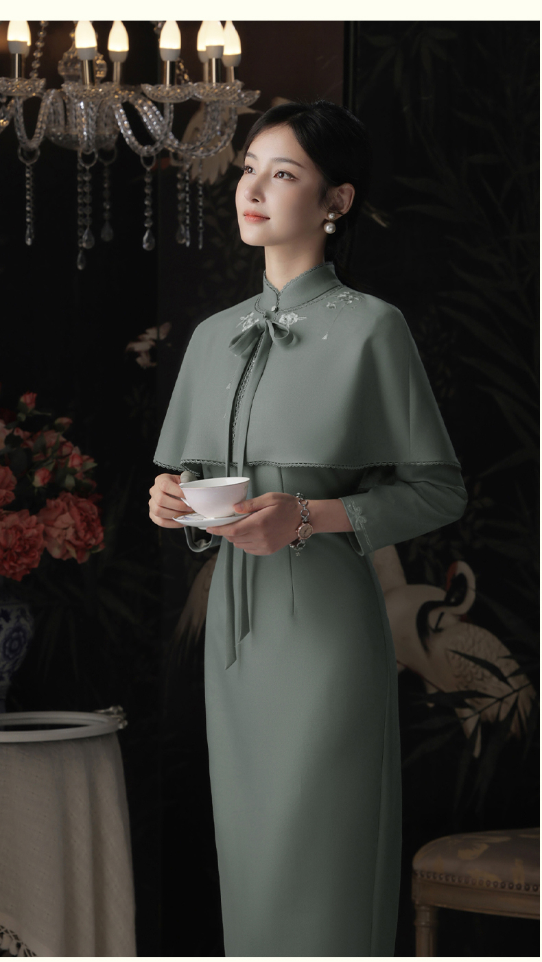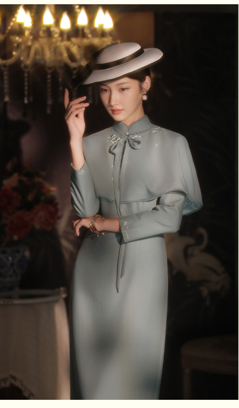 逸红颜时蓉2025秋冬新款民国剧照款精工刺绣后开叉旗袍斗篷套装女