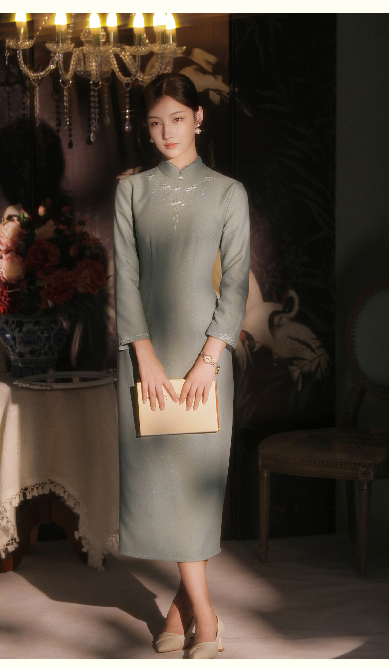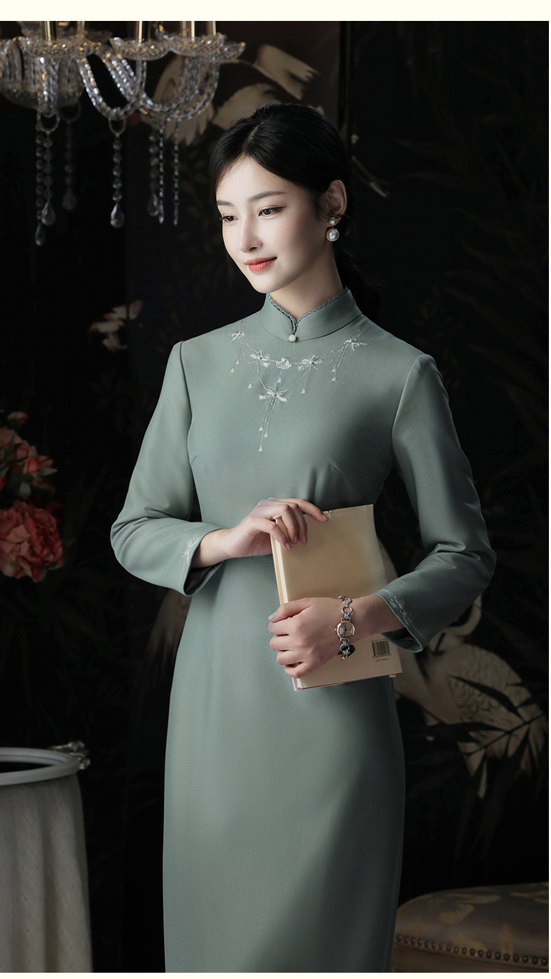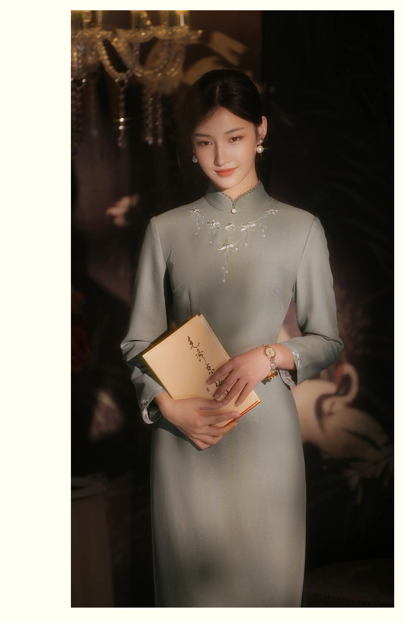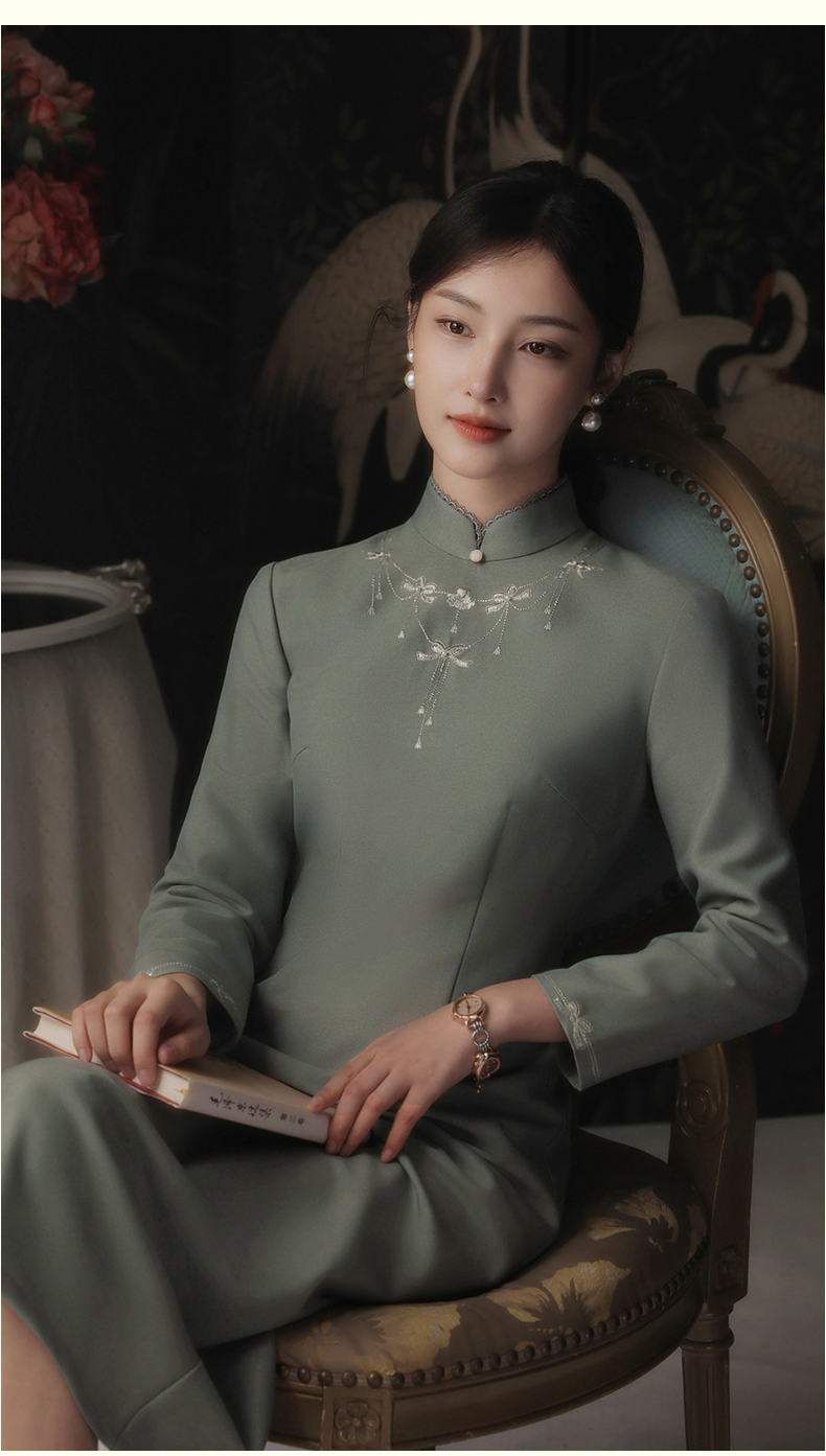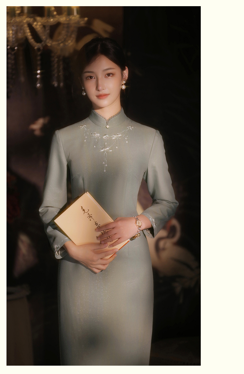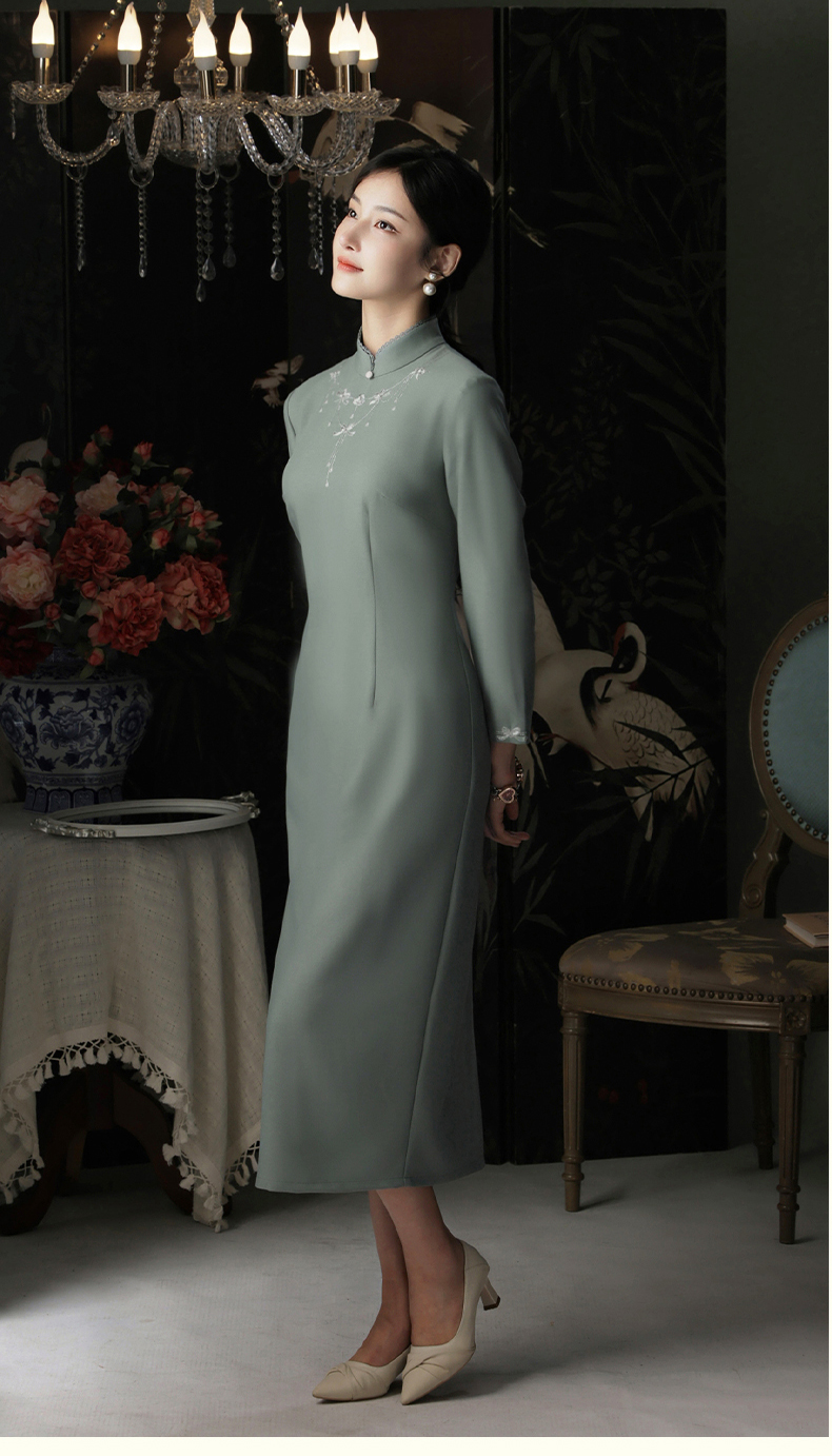 逸红颜时蓉2025秋冬新款民国剧照款精工刺绣后开叉旗袍斗篷套装女