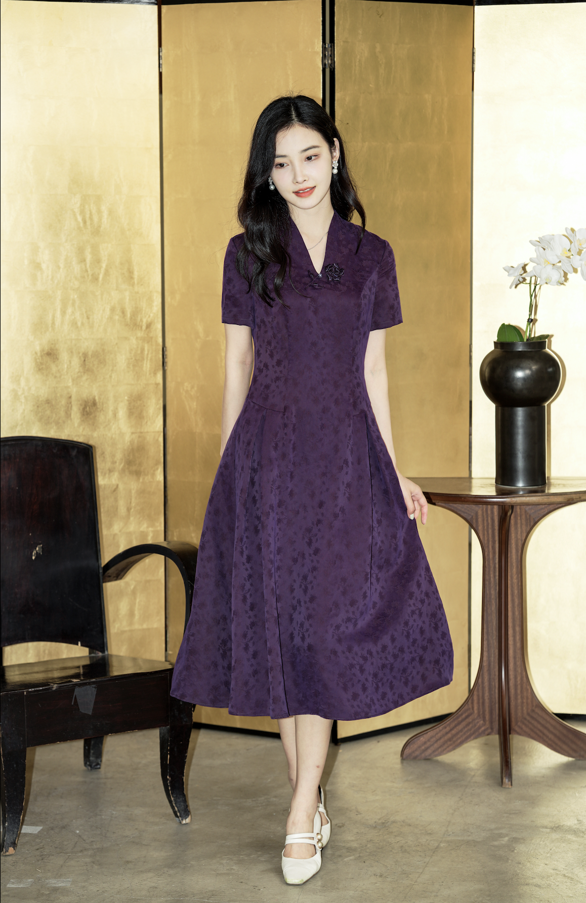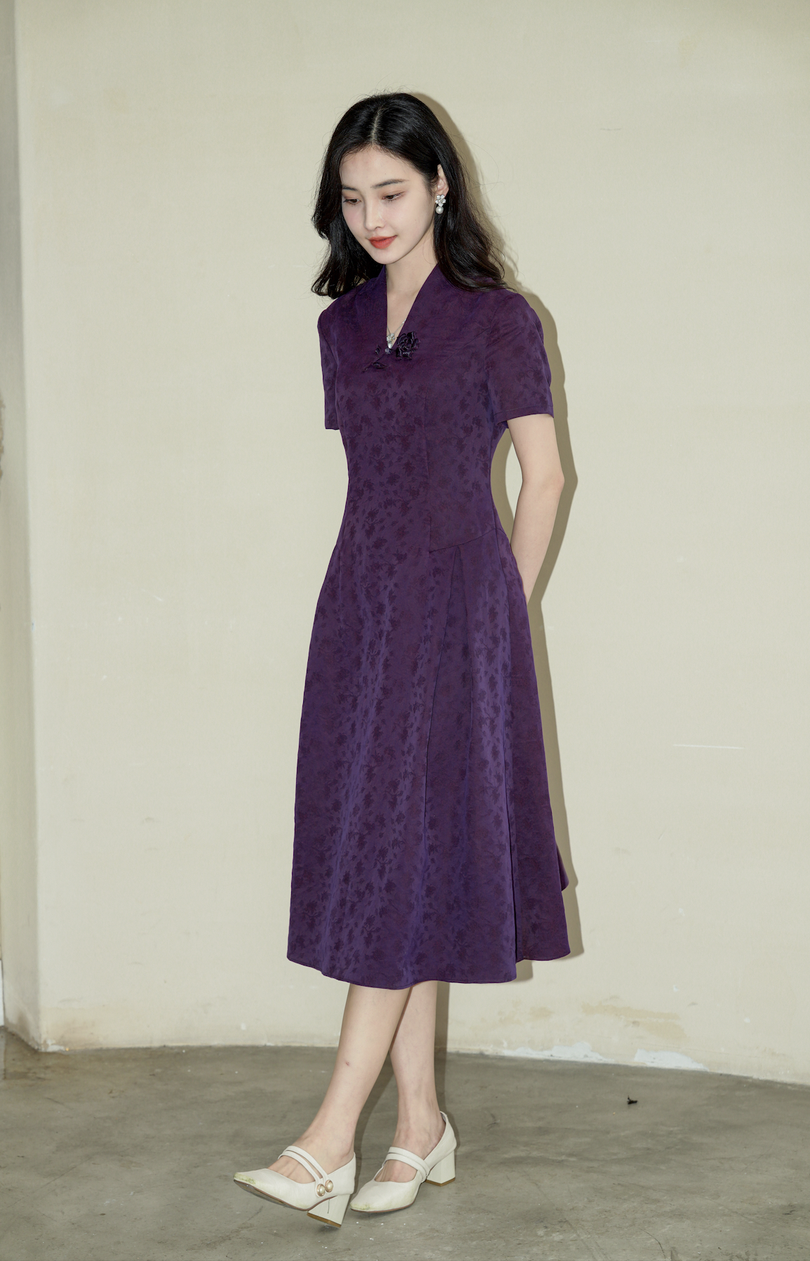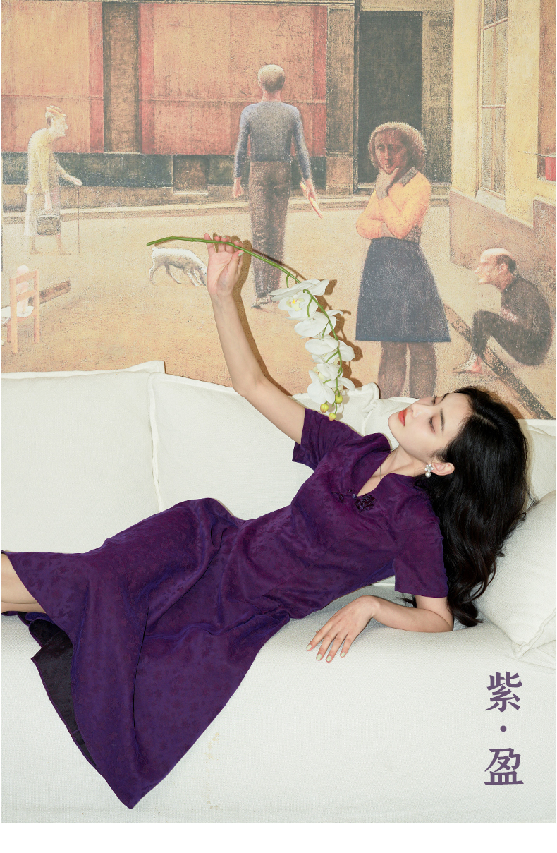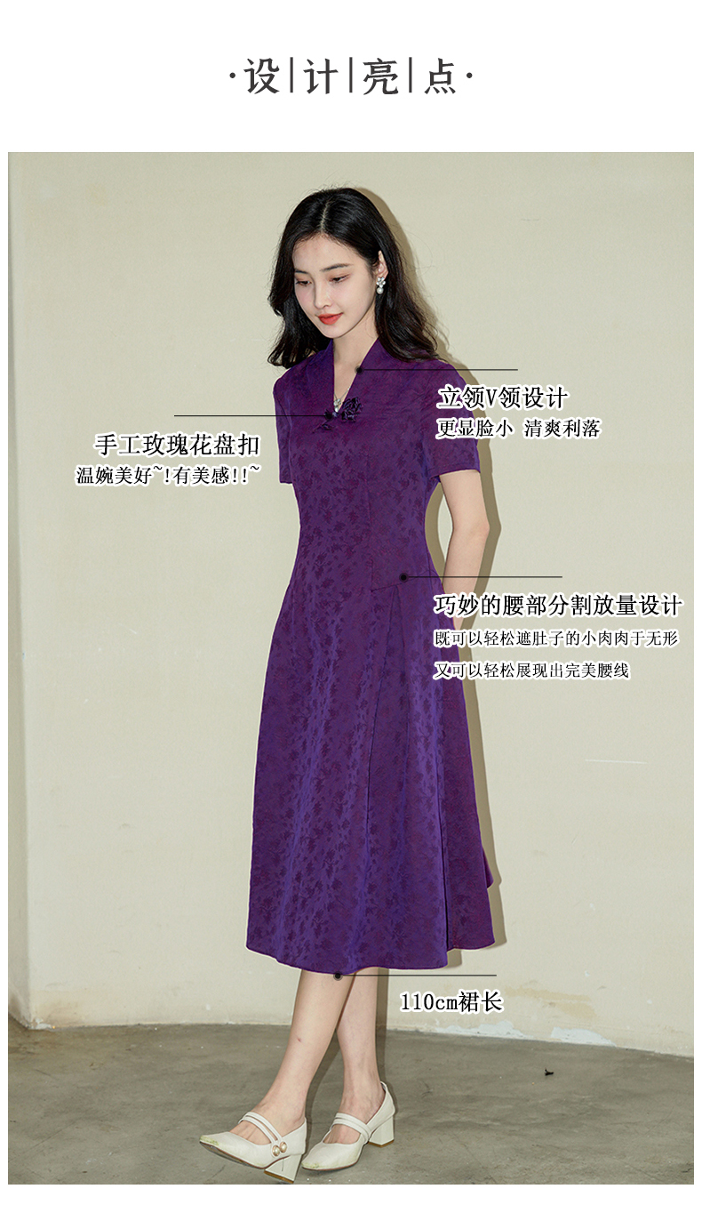 #25姆米提花紫色香云纱连衣裙#