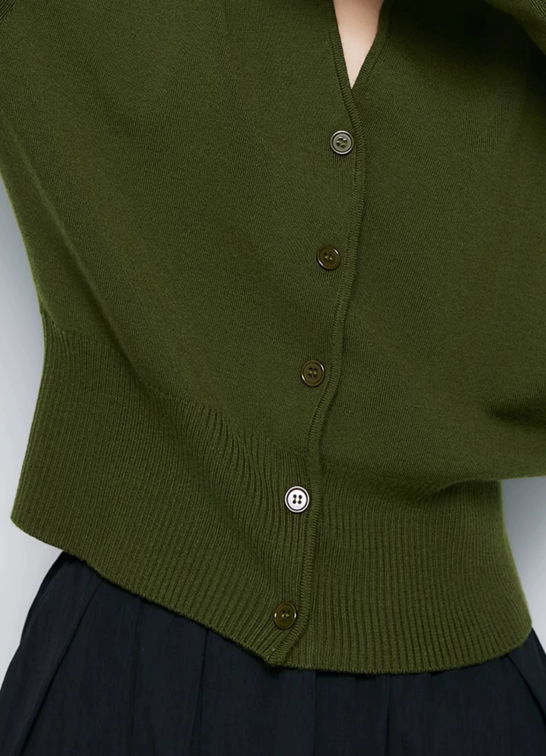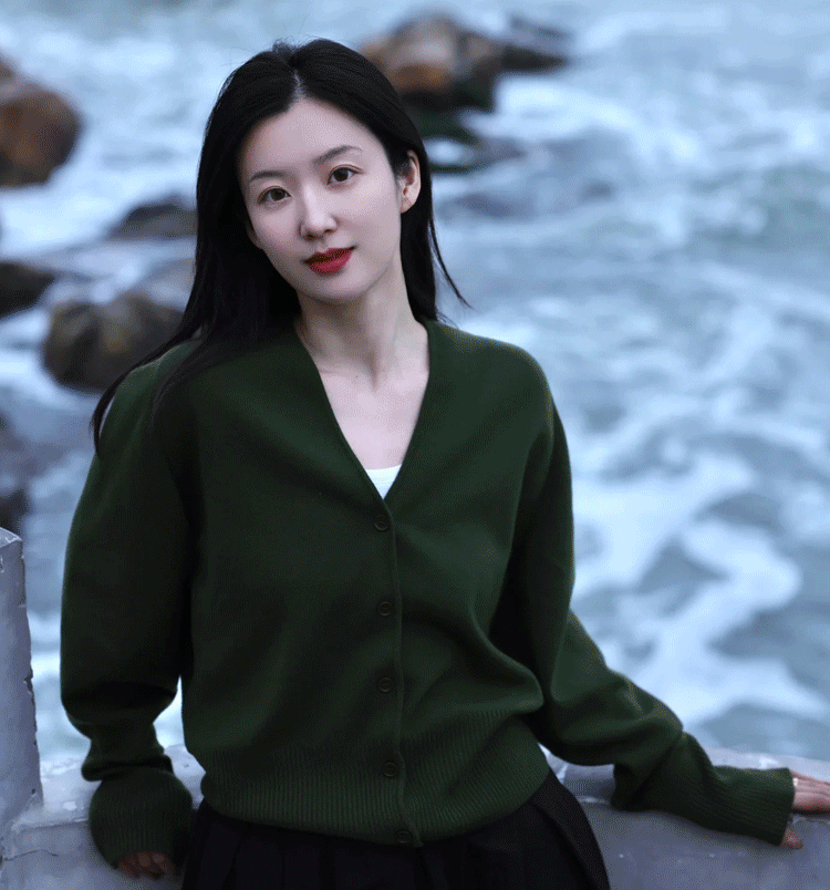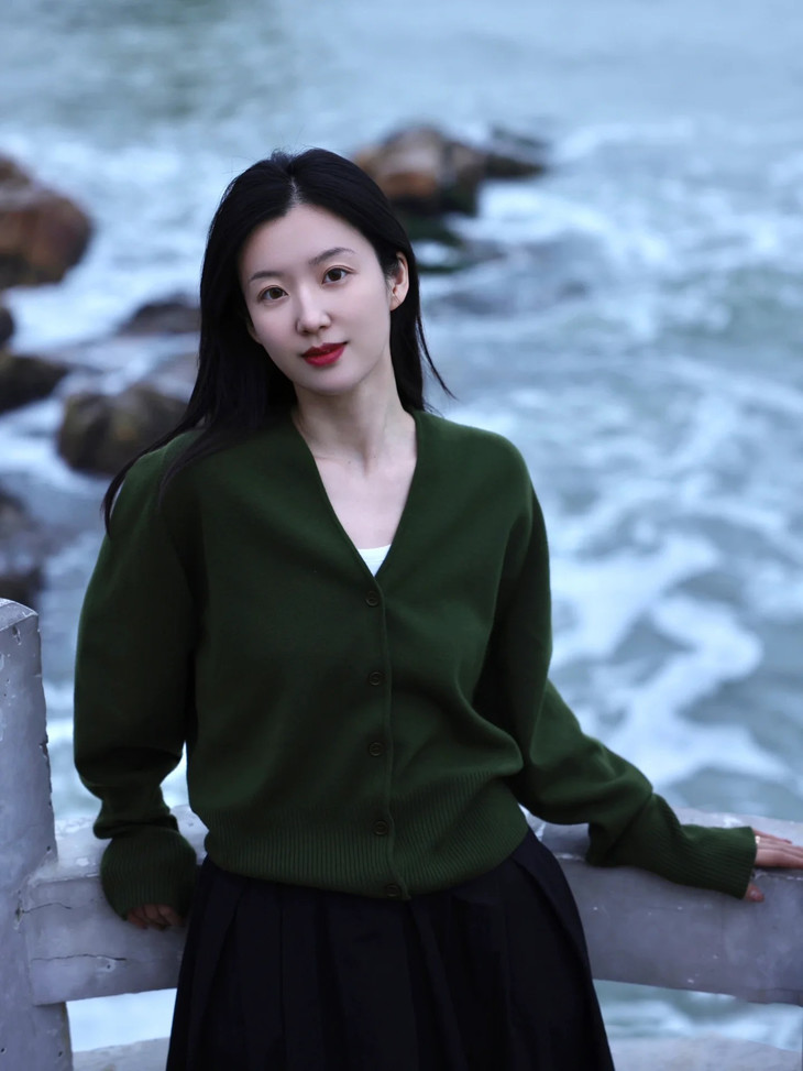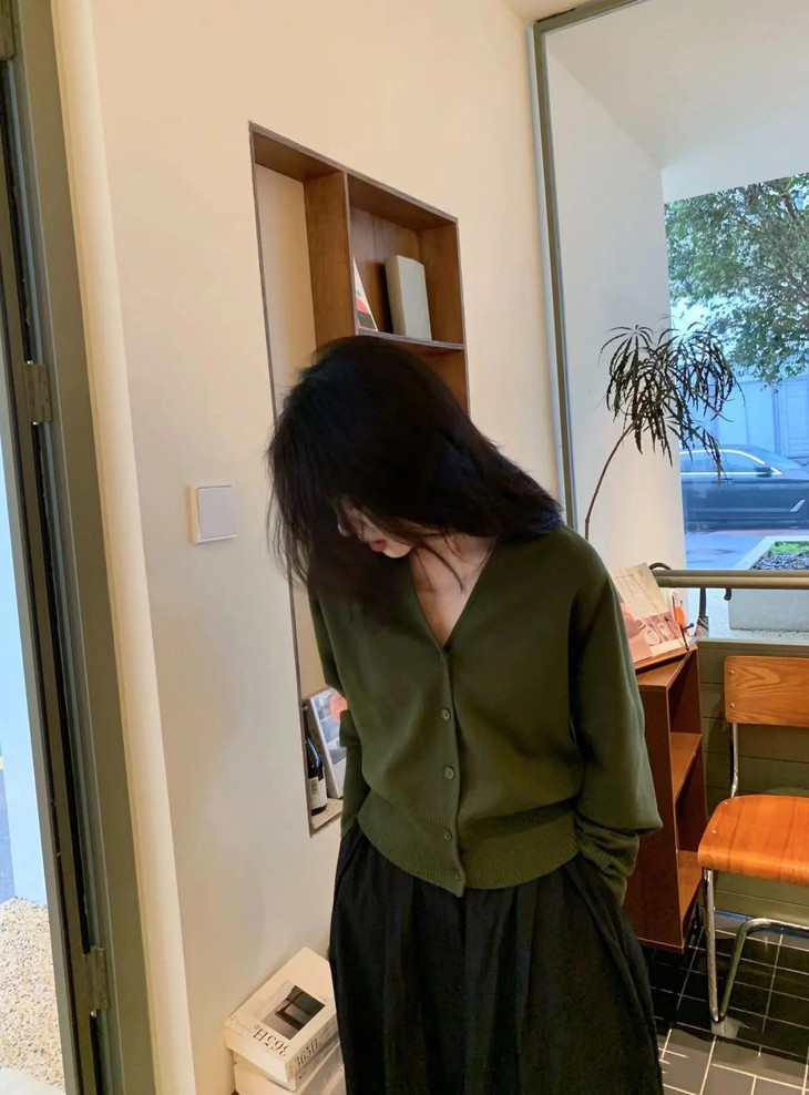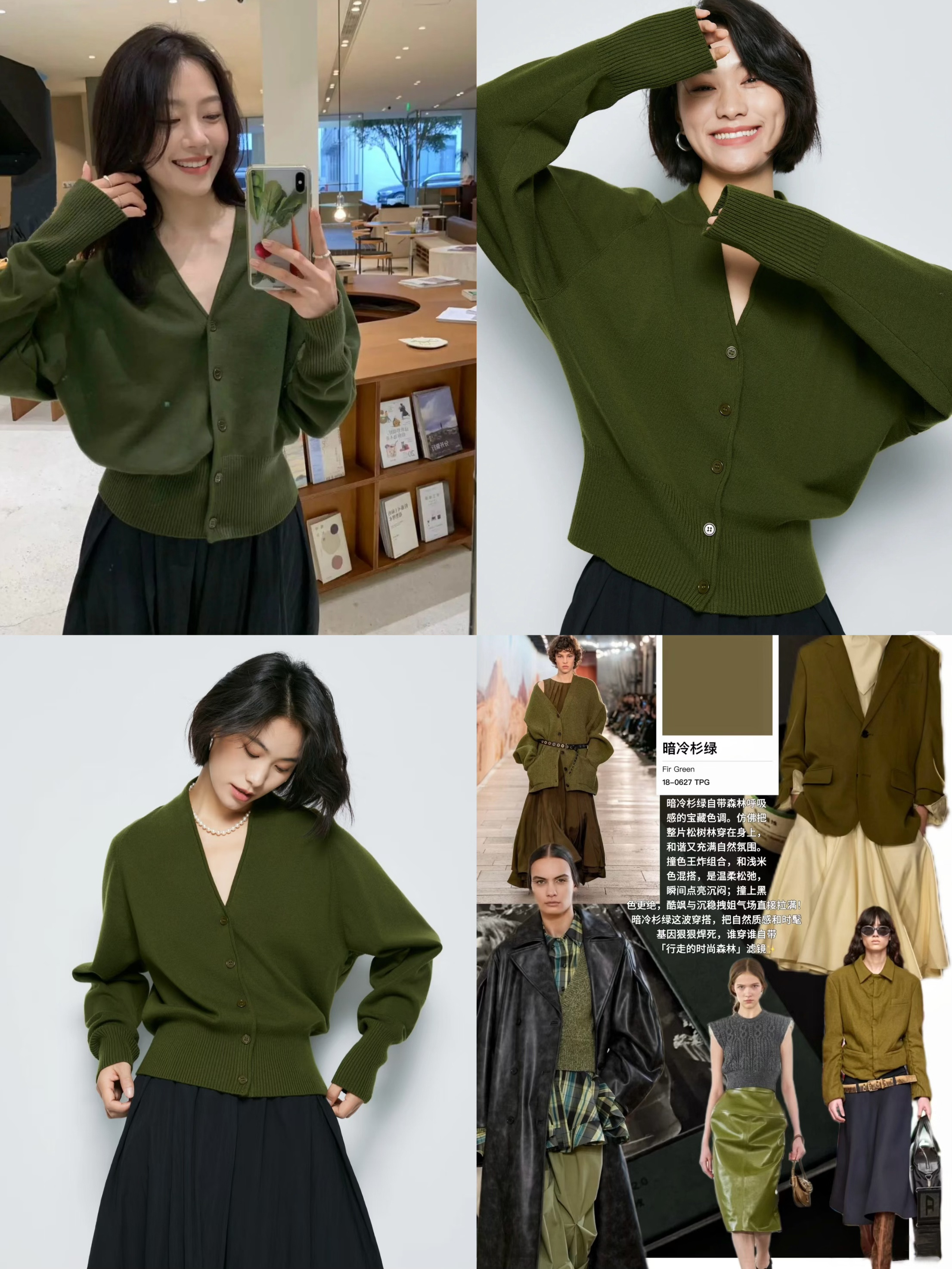 暗冷杉绿V领开衫 | 显高显瘦,温柔又慵懒的早秋气质(3-5天发货)