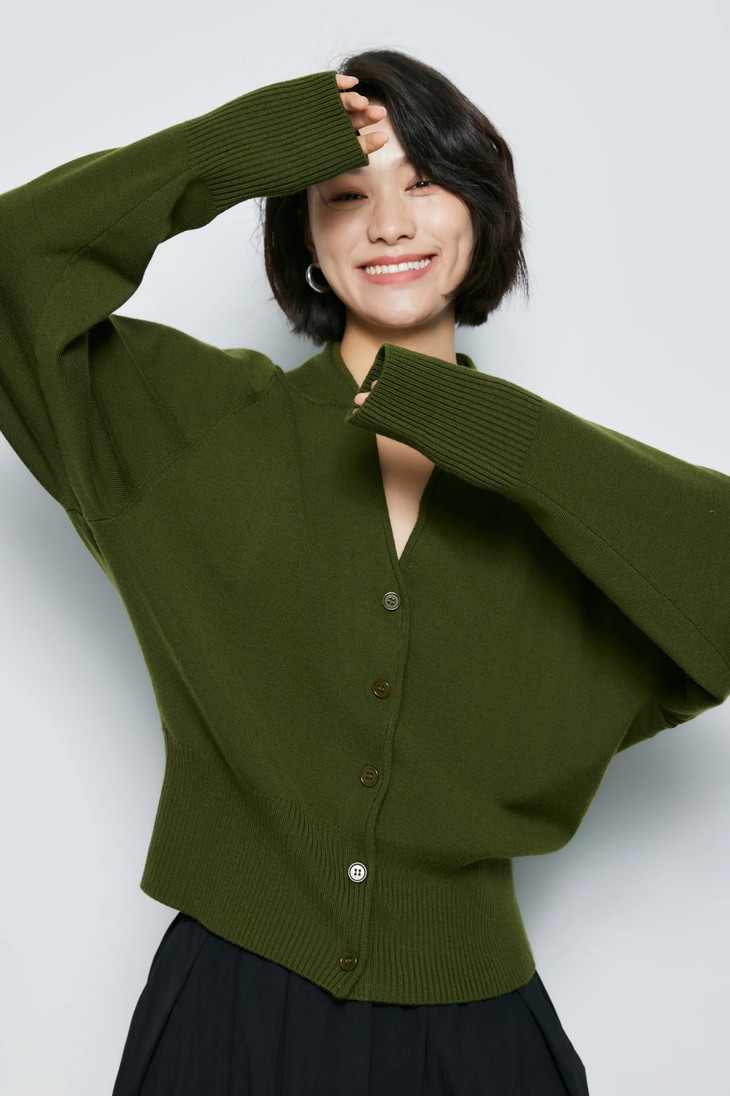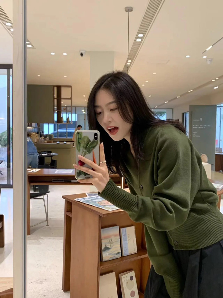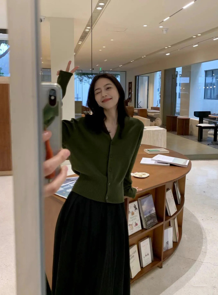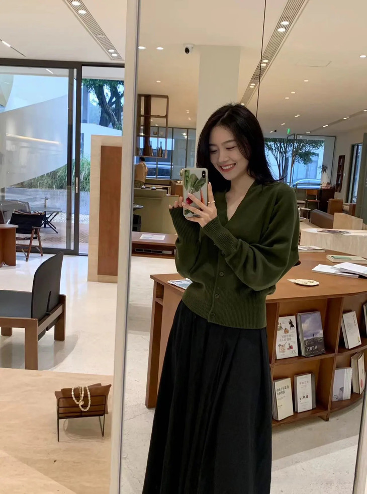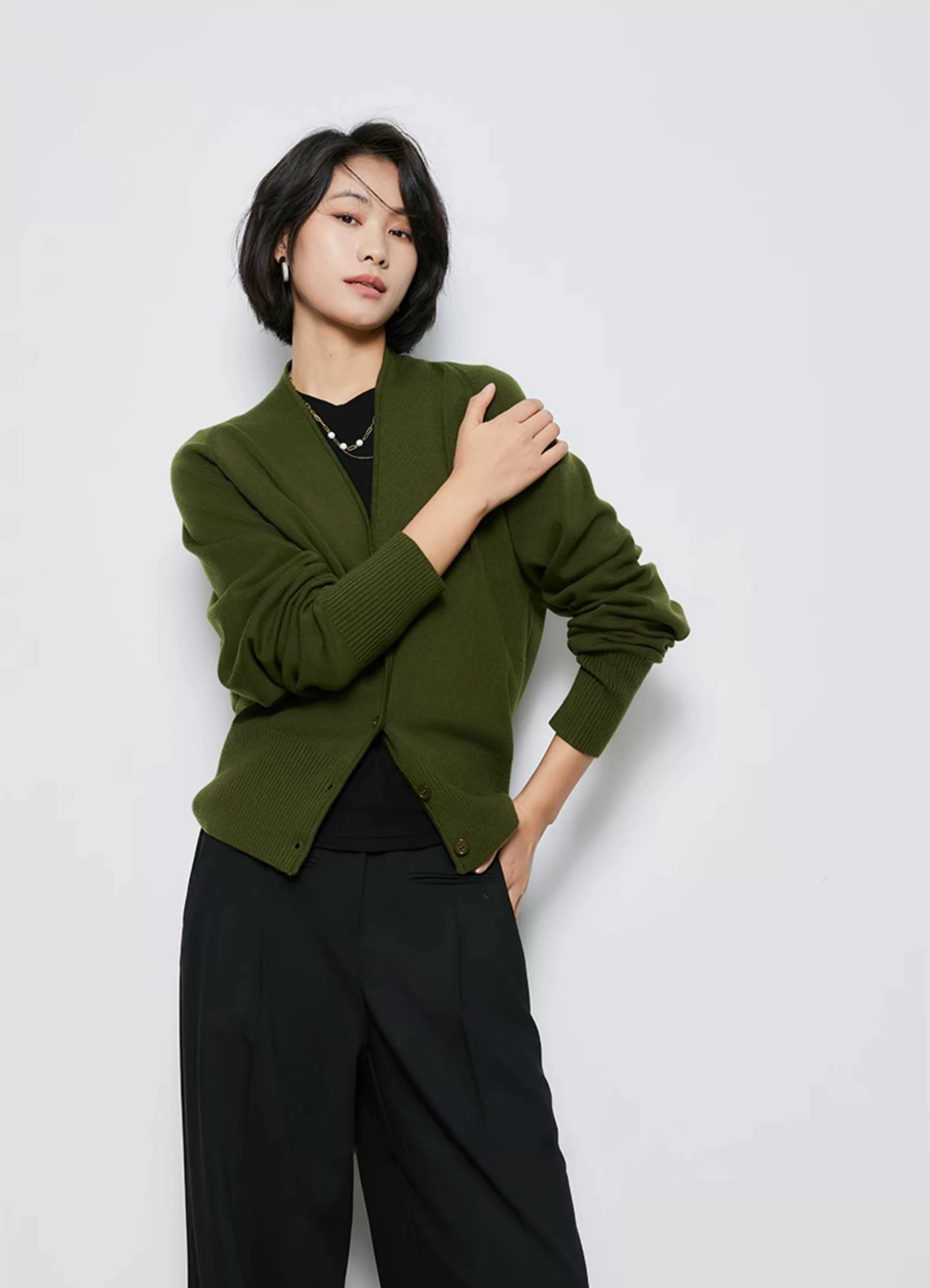 暗冷杉绿V领开衫 | 显高显瘦,温柔又慵懒的早秋气质(3-5天发货)