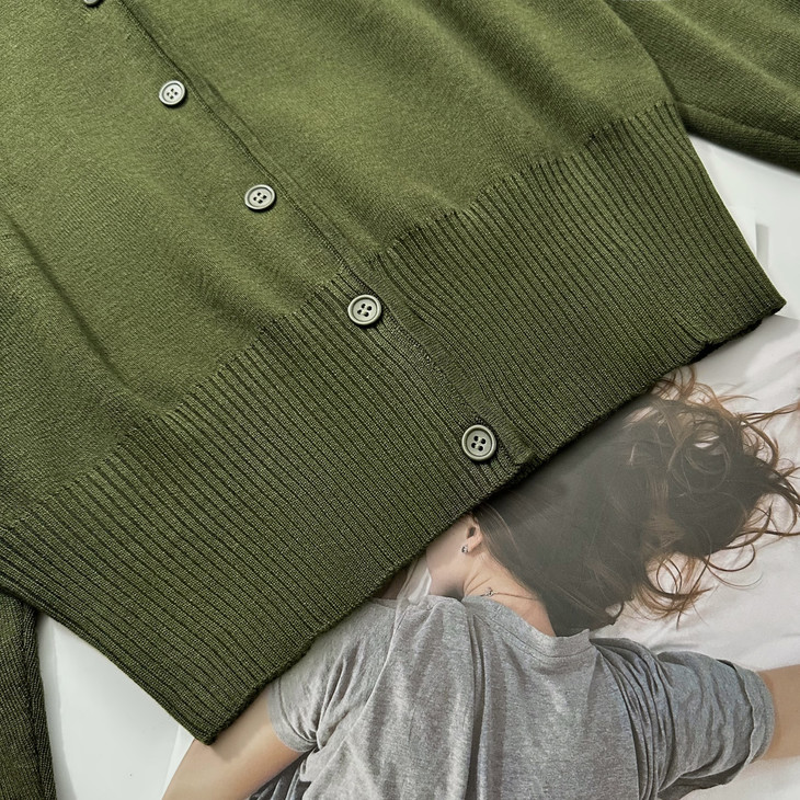于是找了我们的服饰品牌伙伴——源自法国的高端休闲品牌isabelle marran,联合做出了这件我们都很满意的【暗冷杉绿V领开衫】。