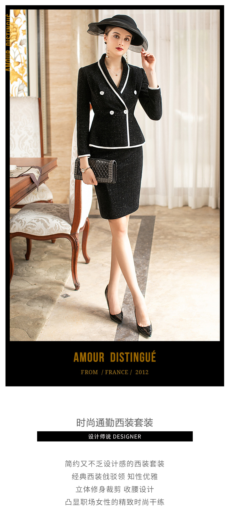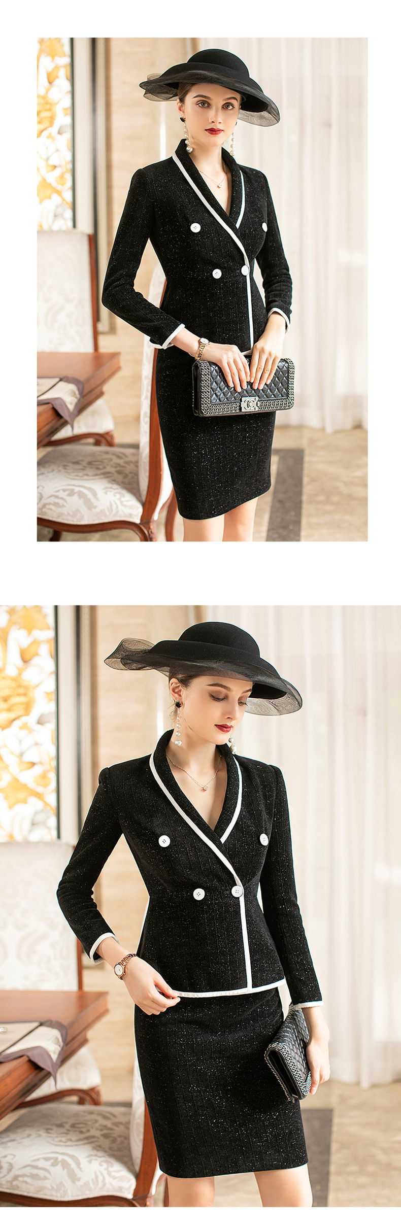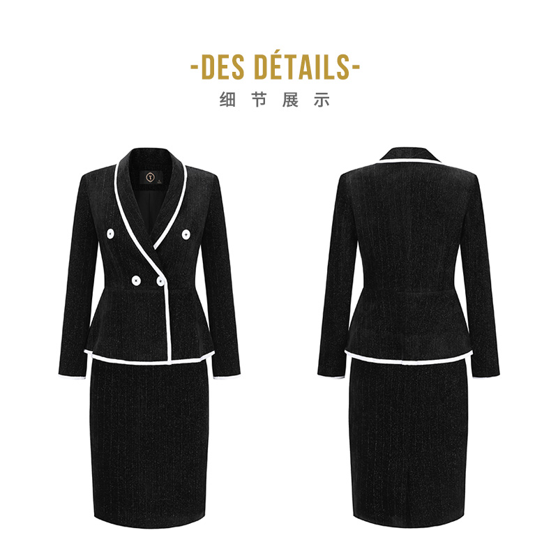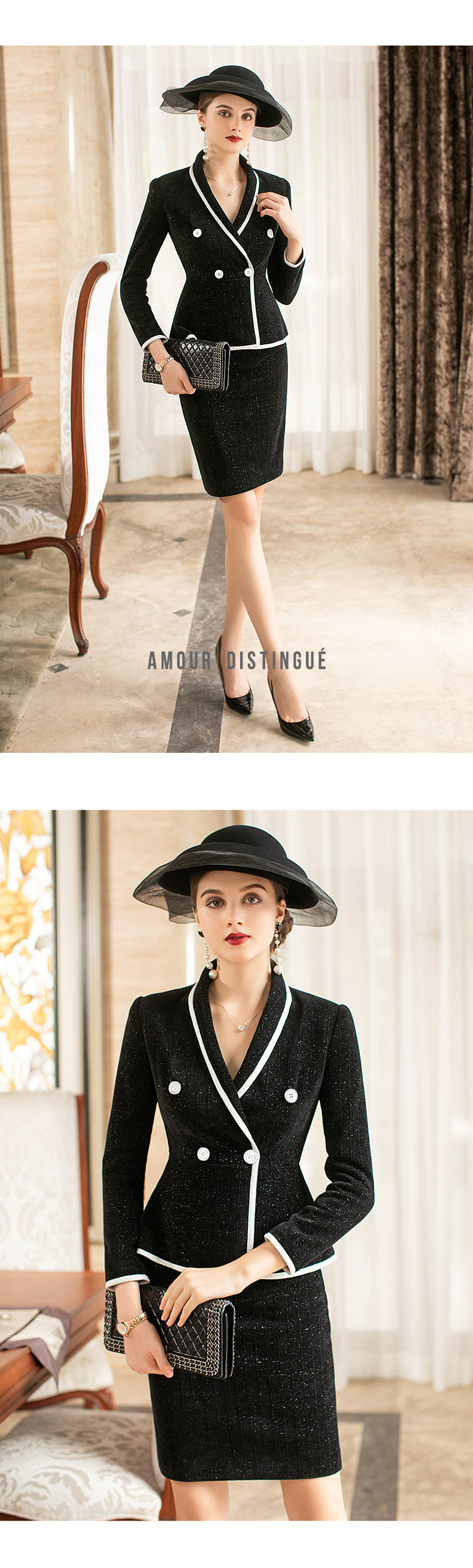 AD洋气名媛两件套裙子时尚小香风套装女镶边西服新款毛呢职业套裙