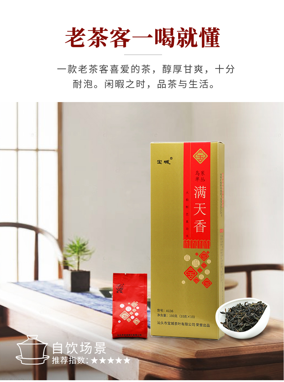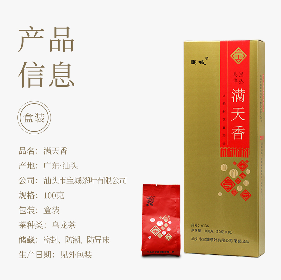 【新品上市,欢迎尝鲜】宝城 A136传统单丛茶满天香单枞茶叶礼盒装100克 醇香四溢,持久耐泡