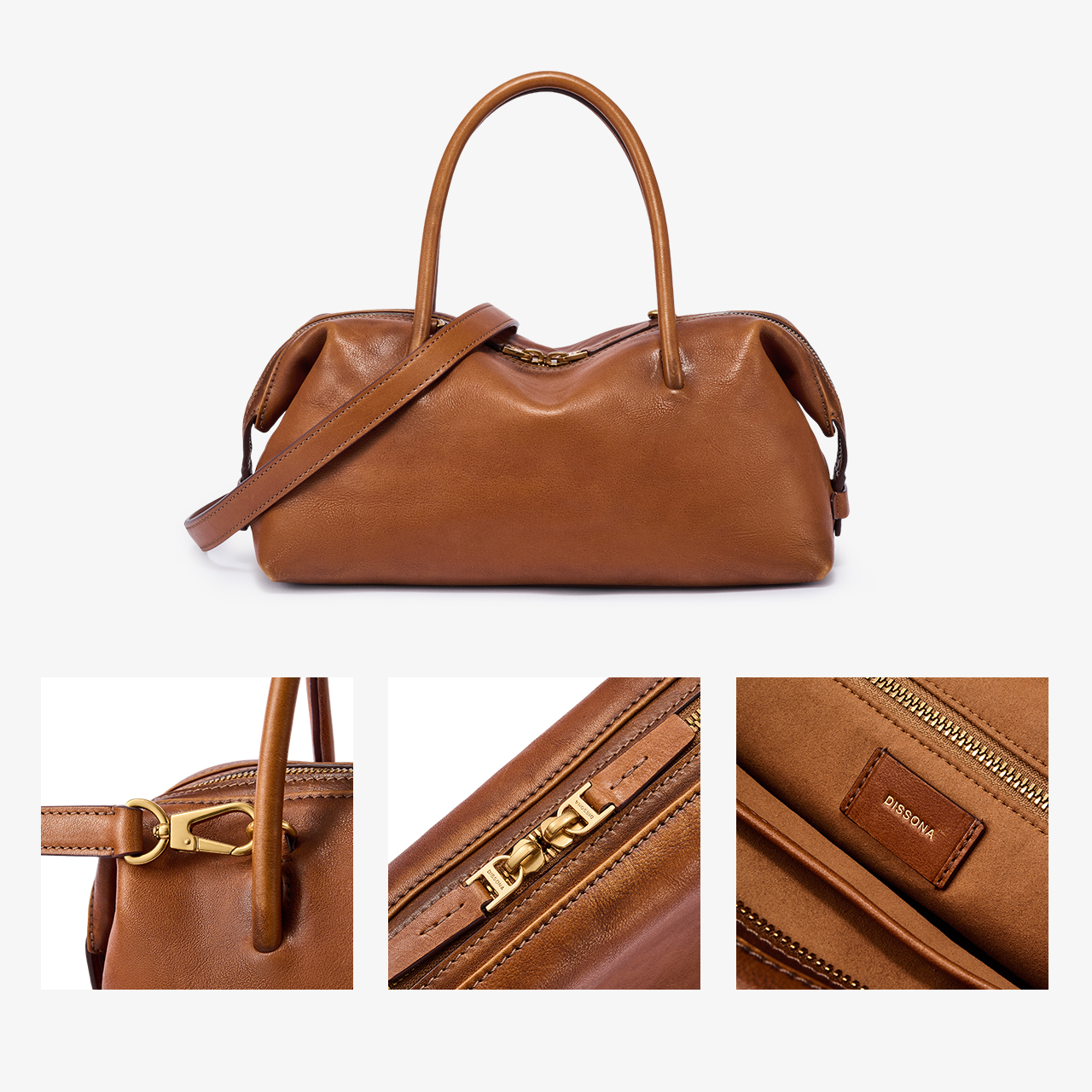 【2F迪桑娜】迪桑娜 26SS风行系列 擦色波士顿款 手拎斜跨肩带多用途植鞣牛皮女包