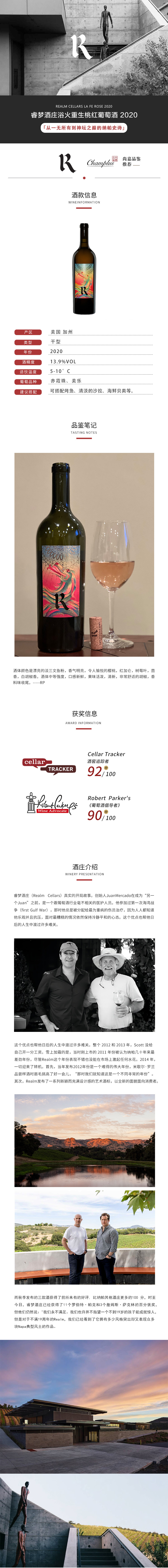 睿梦酒庄浴火重生桃红葡萄酒2020年 Realm Cellars La Fe Rose 2020