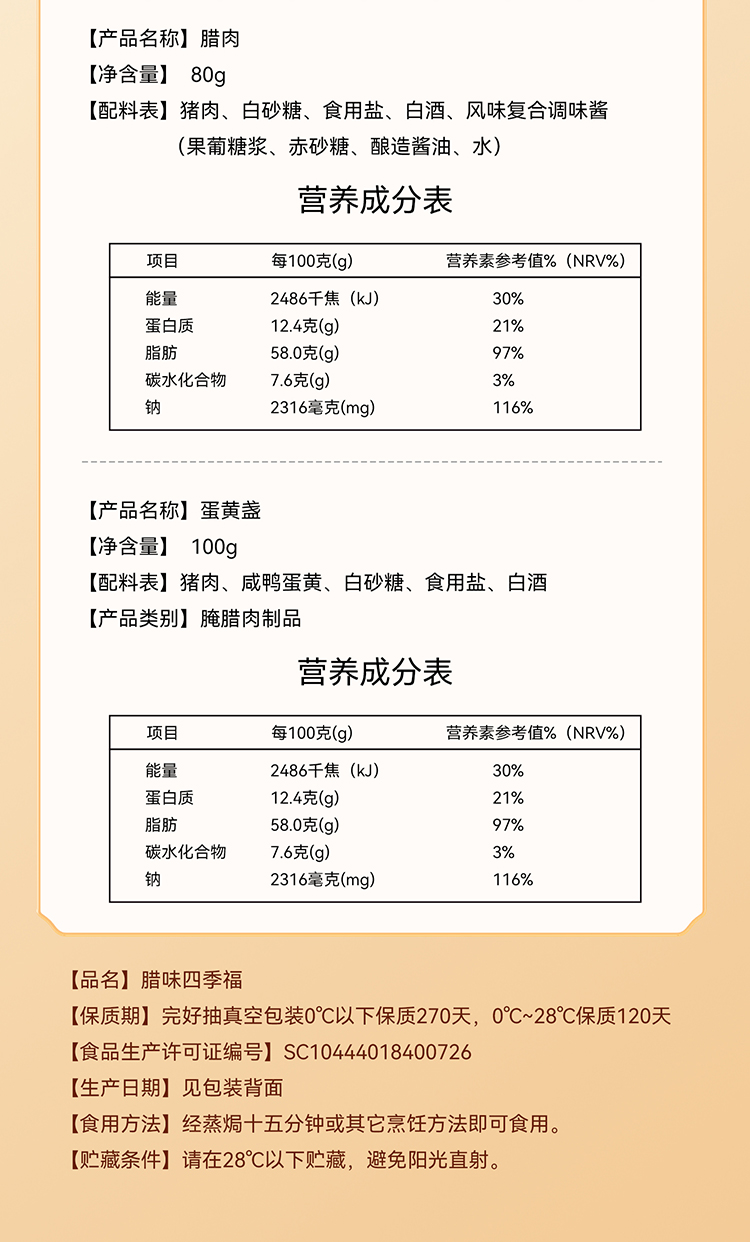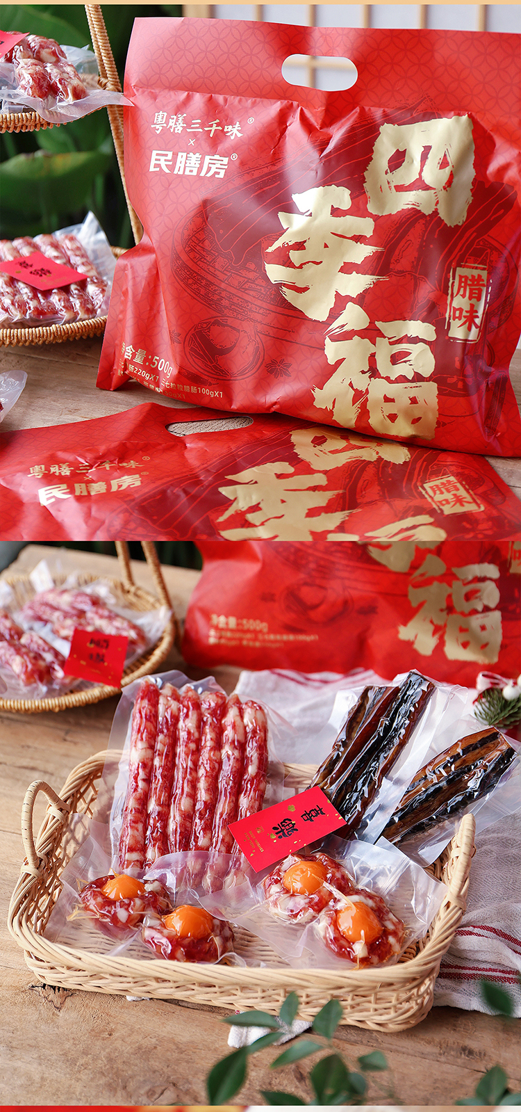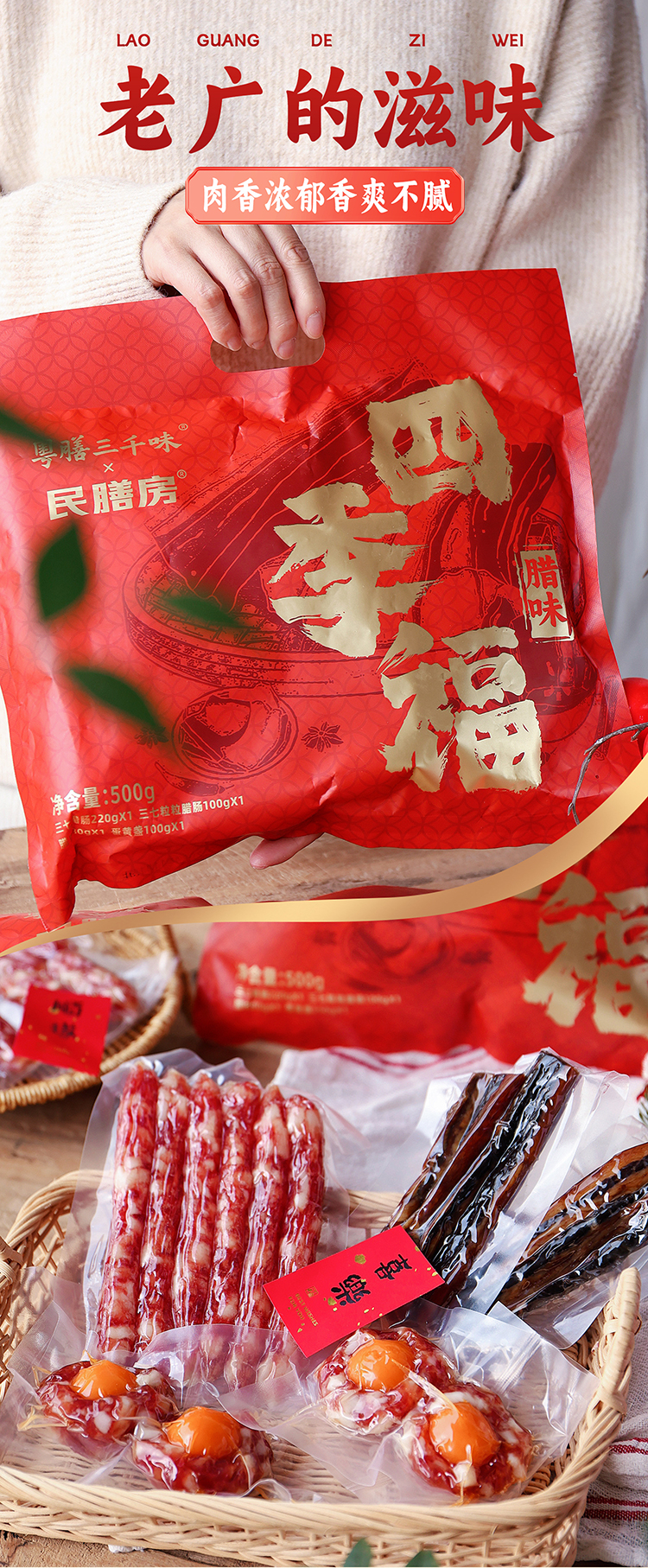 腊味四季福 广州老字号 无添加 传统广式腊肠腊肉蛋黄盏 肉香浓郁香爽不腻