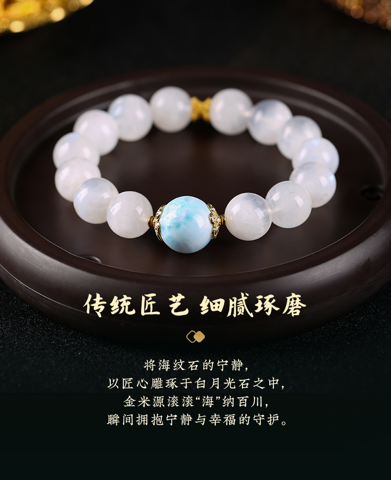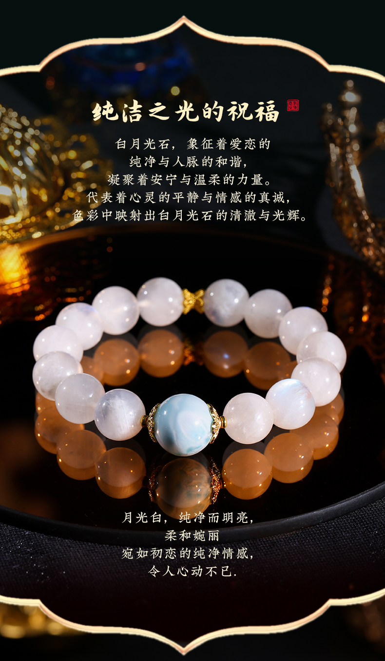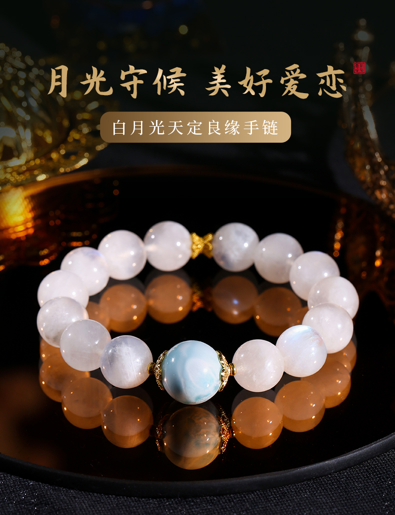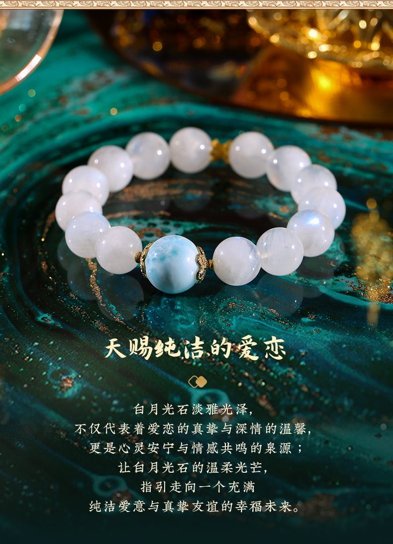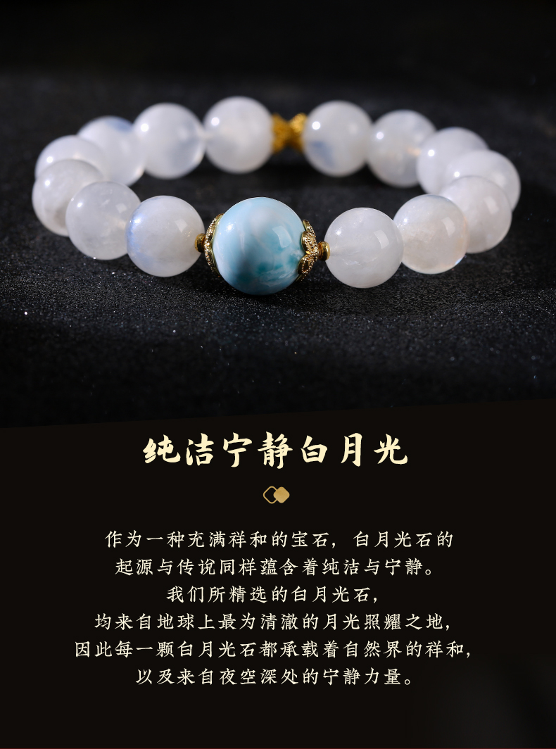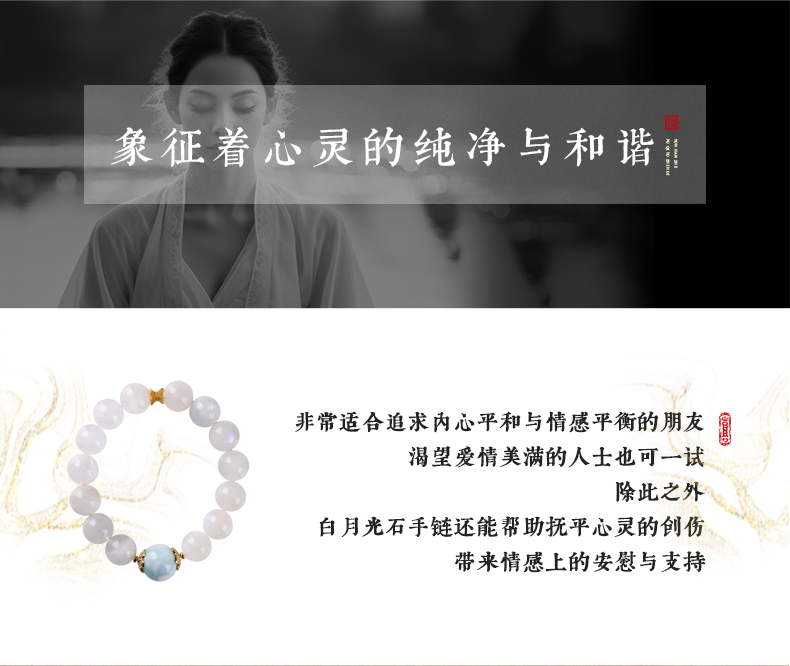 【情绪稳定剂】月之女神月光石手链 海纹石白月光石手链