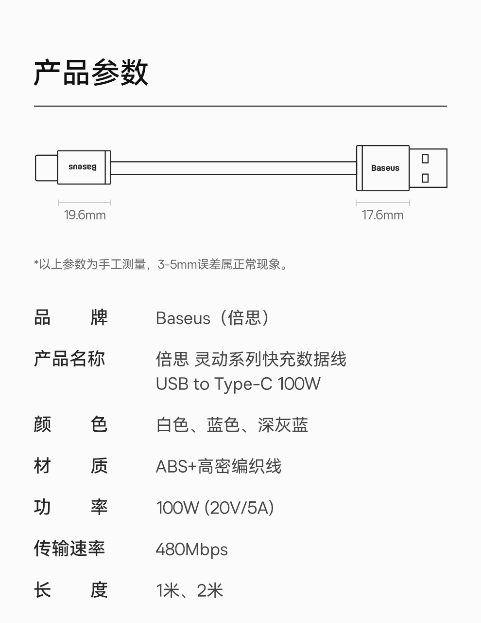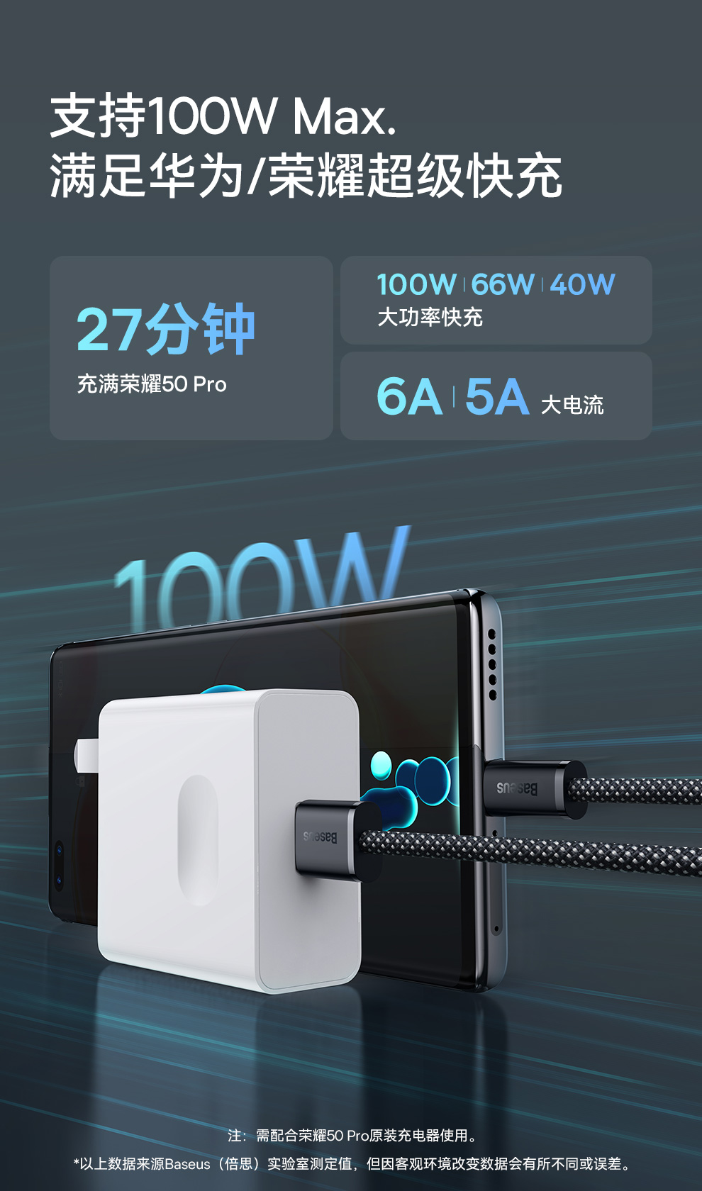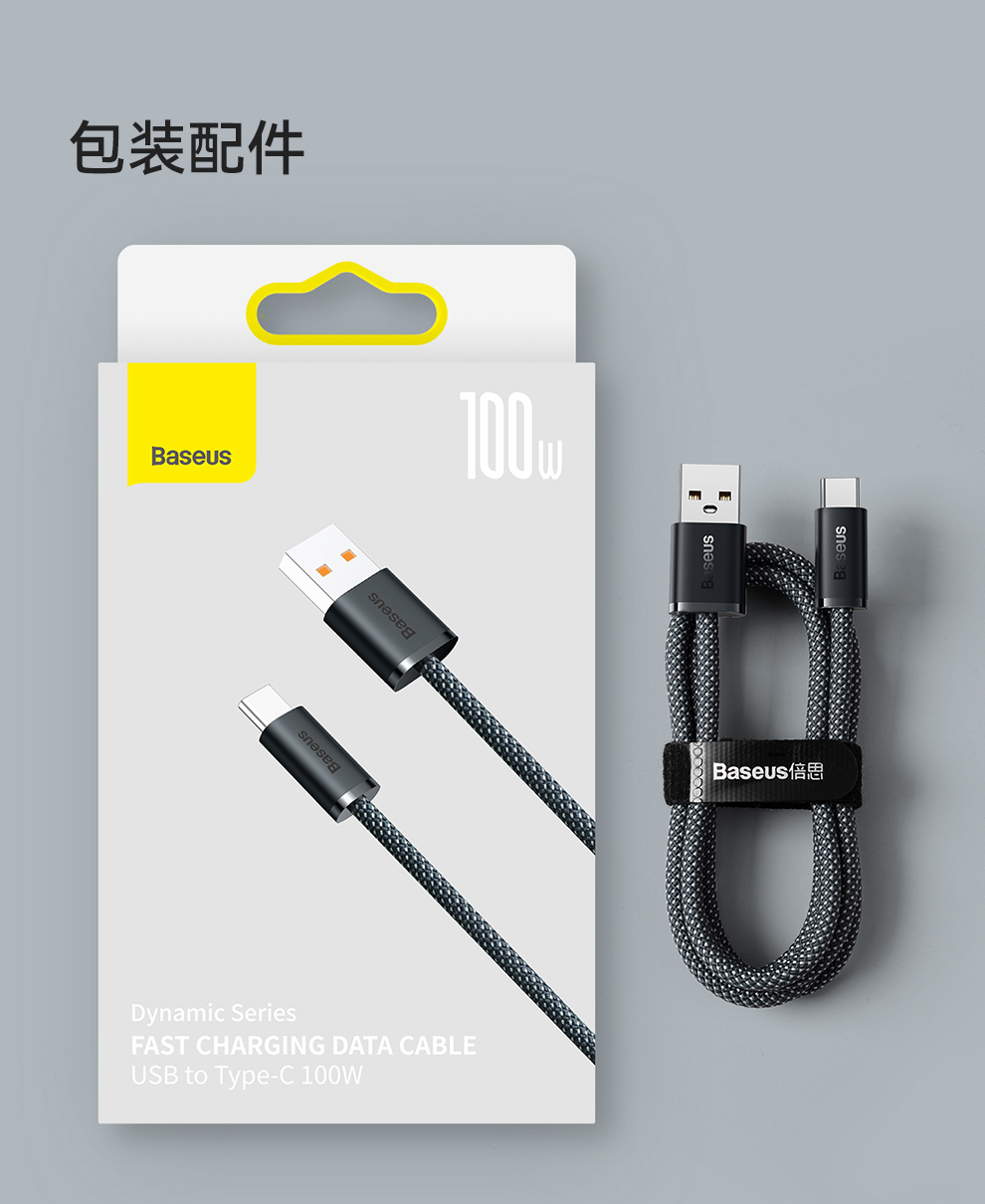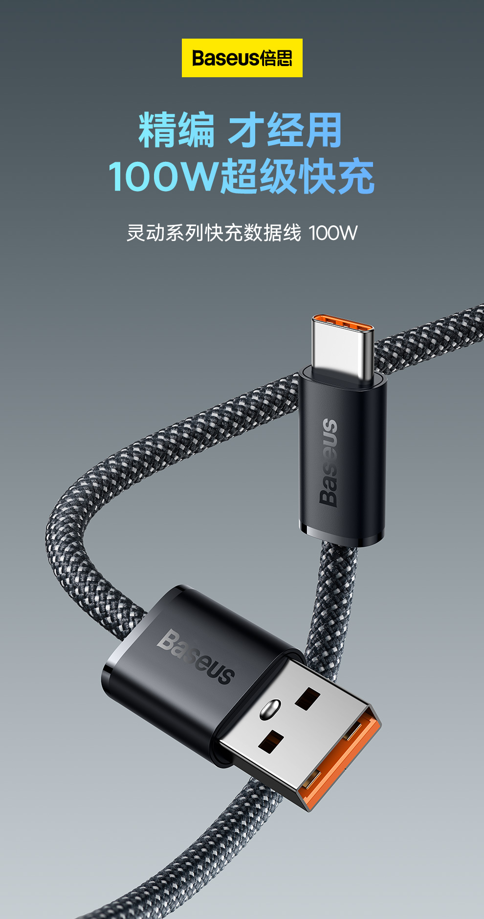 倍思 灵动系列快充数据线USB to Type-C 100W 适用华为/荣耀/小米/oppo/vivo安卓充电线