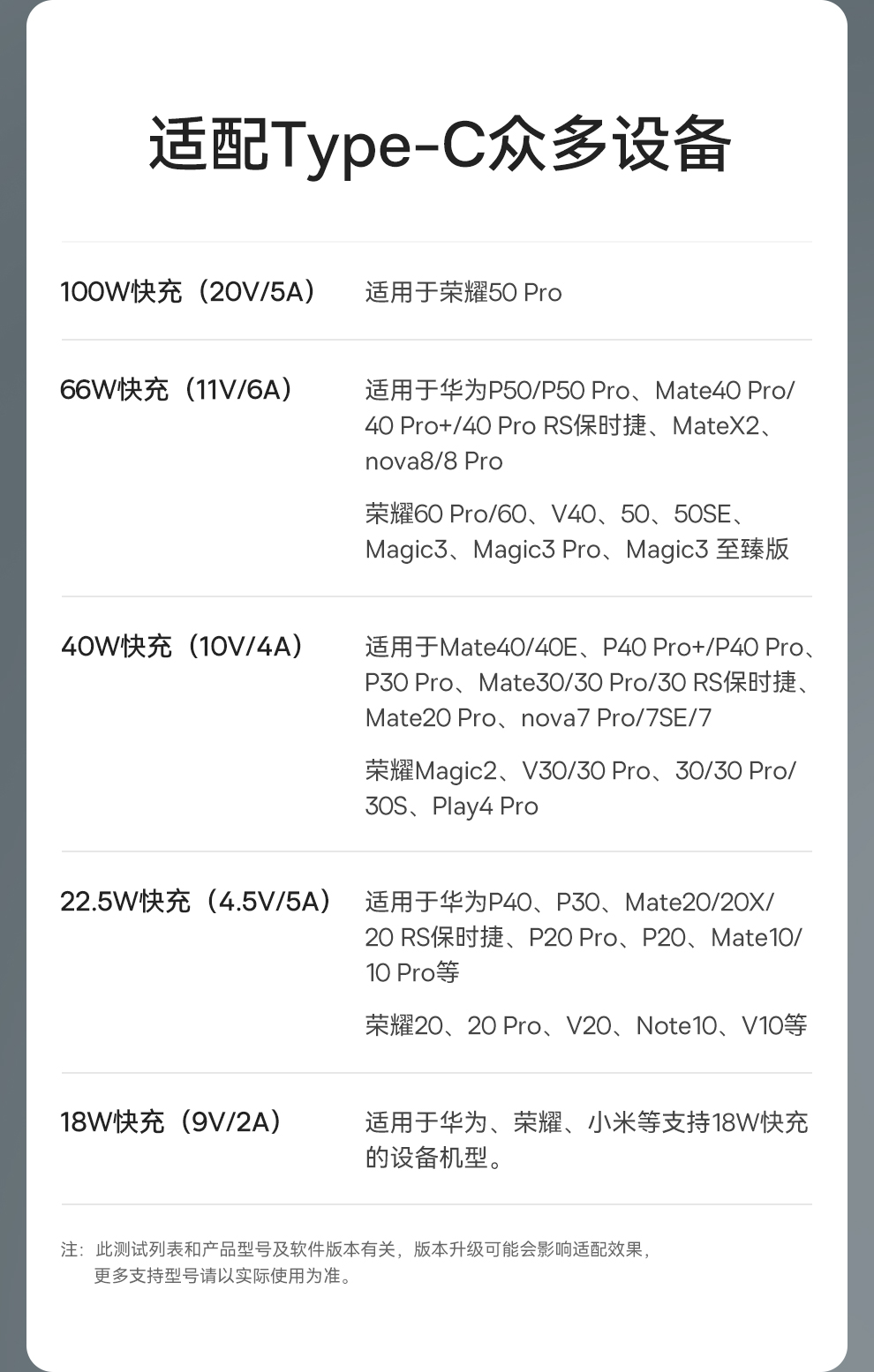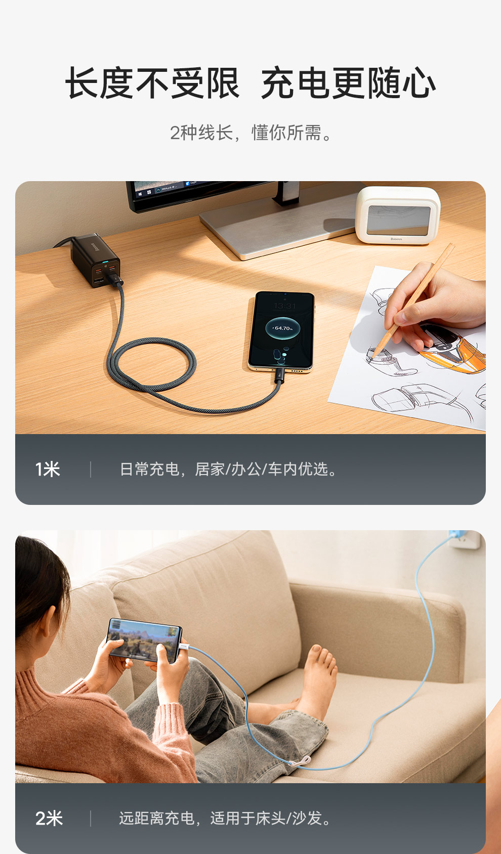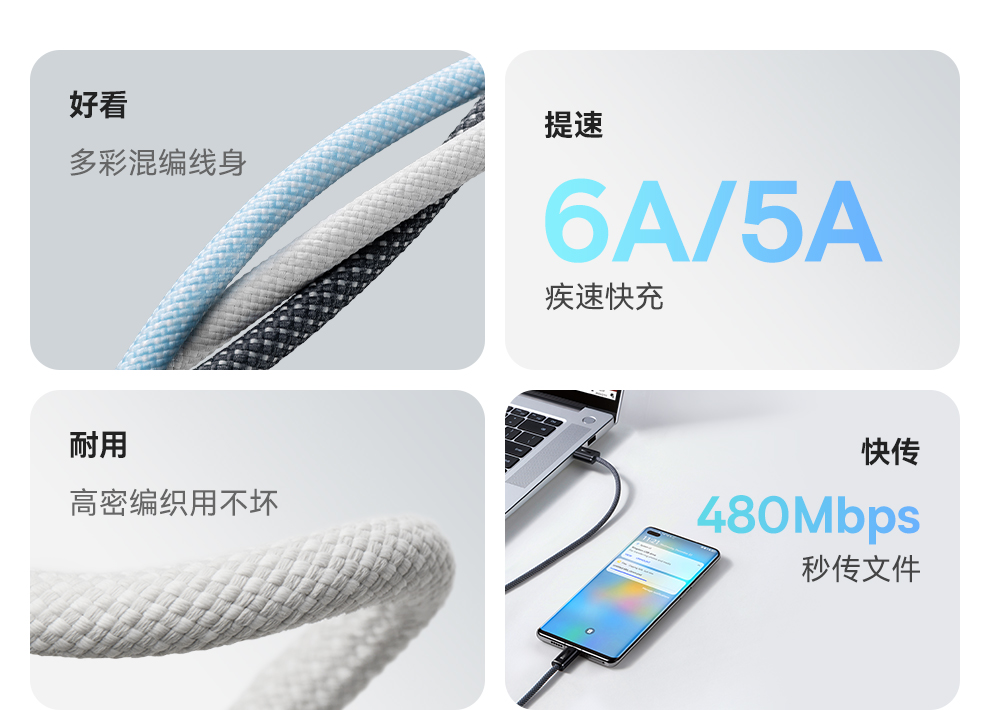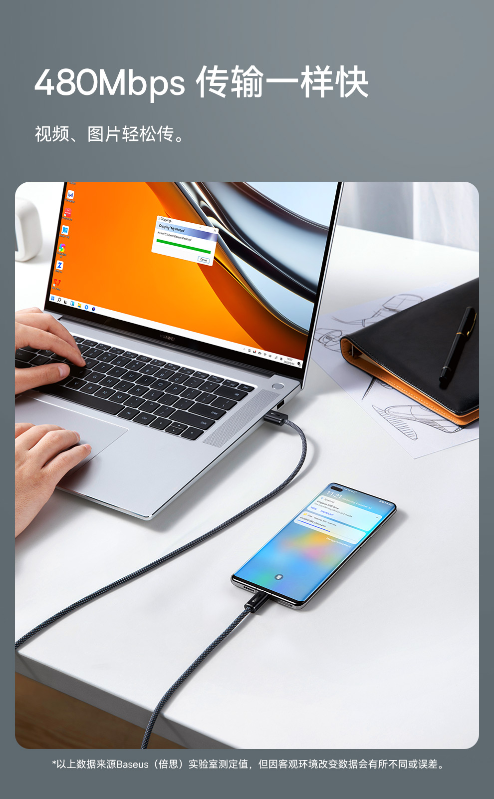 倍思 灵动系列快充数据线USB to Type-C 100W 适用华为/荣耀/小米/oppo/vivo安卓充电线