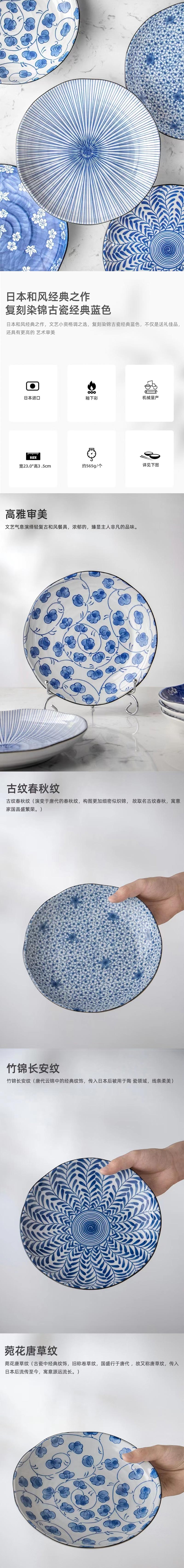 古染蓝绘9.0英寸圆盘 | 日本和风经典之作,复刻染锦古瓷经典蓝色,可在微波炉、洗碗机、消毒柜等家电中使用,不窠臼的荷叶边不规则盘口设计。