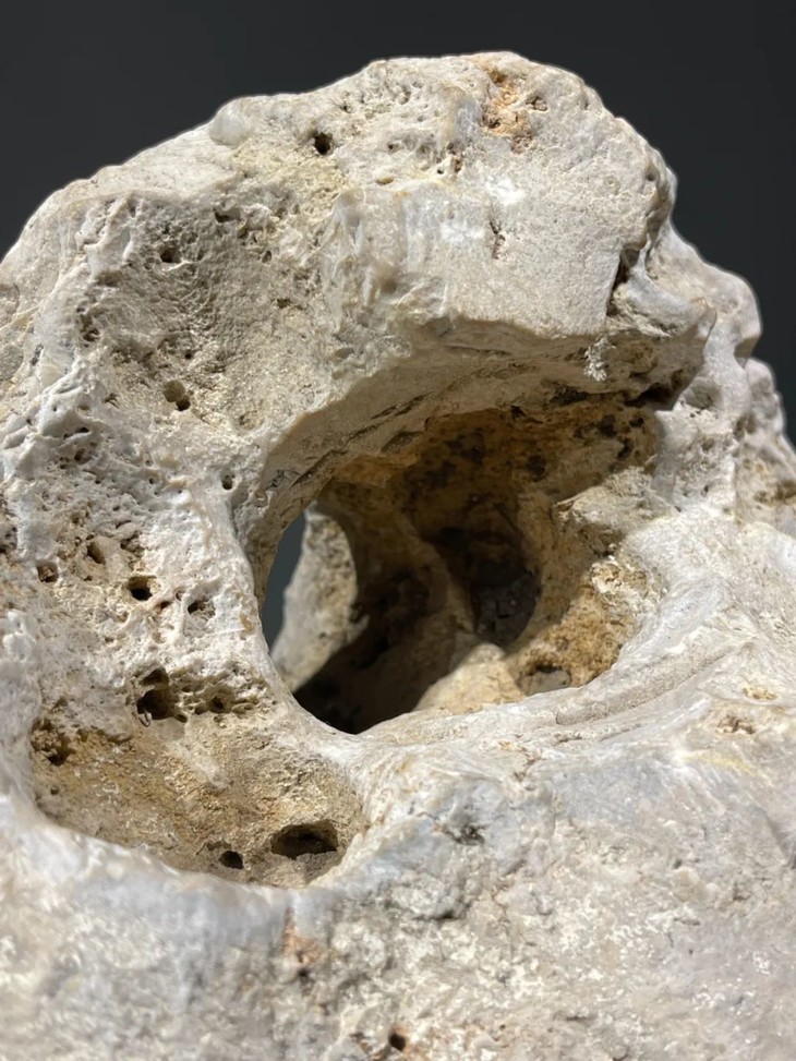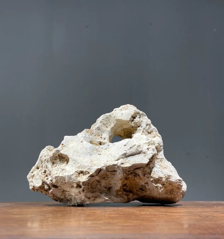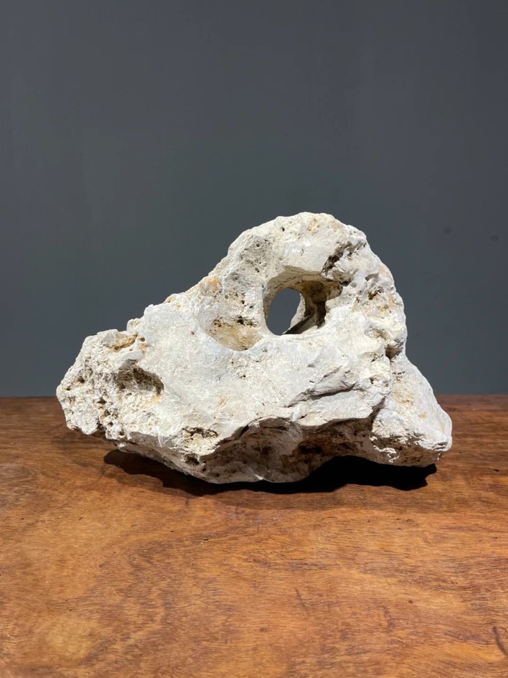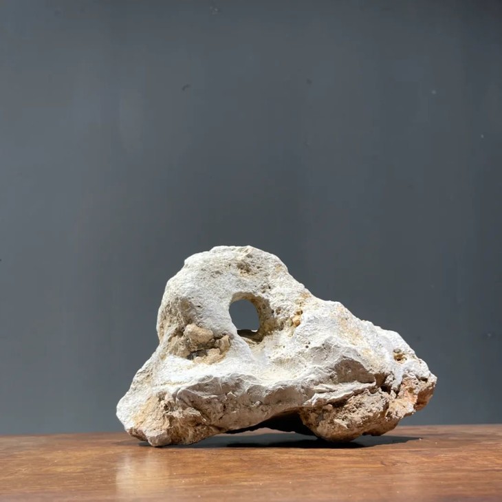 此北太湖石镂洞案头山子是寻获后已使用多年的山子笔搁,原石天然纹理与镂洞浑然天成,未经任何人为修饰,整体典雅苍古,文人韵味十足。