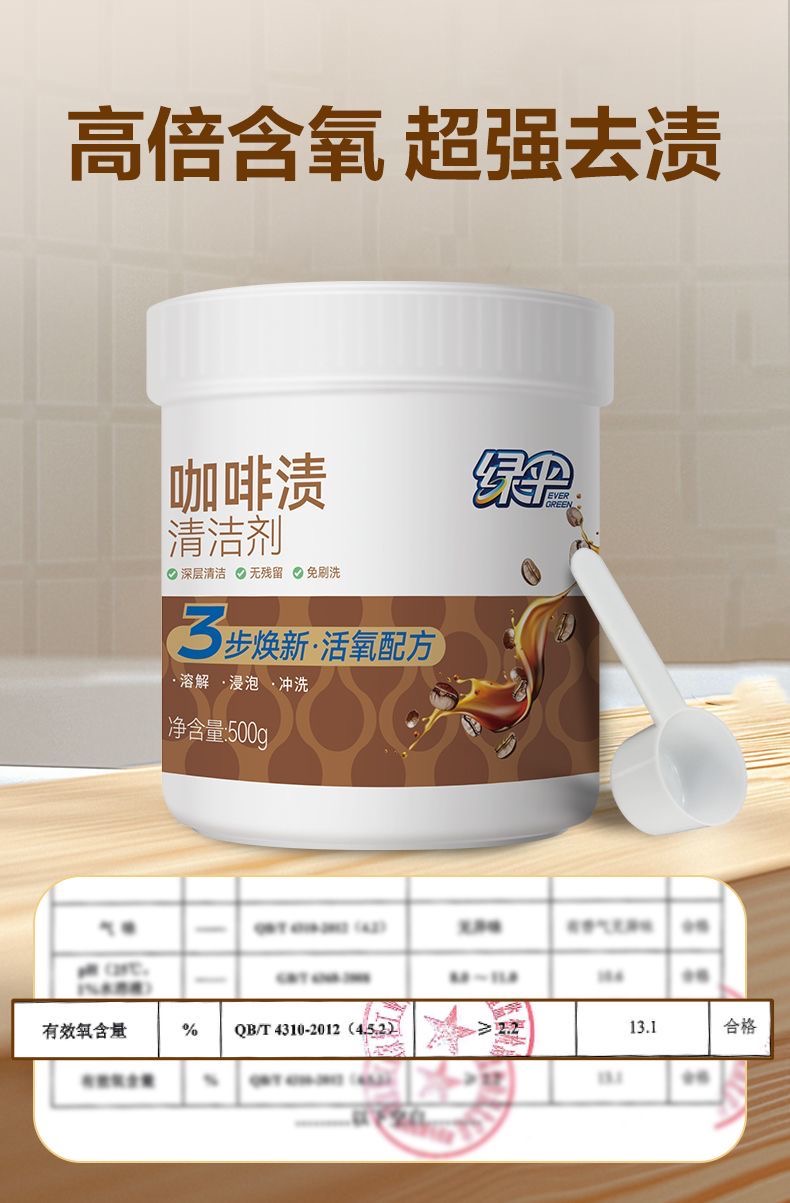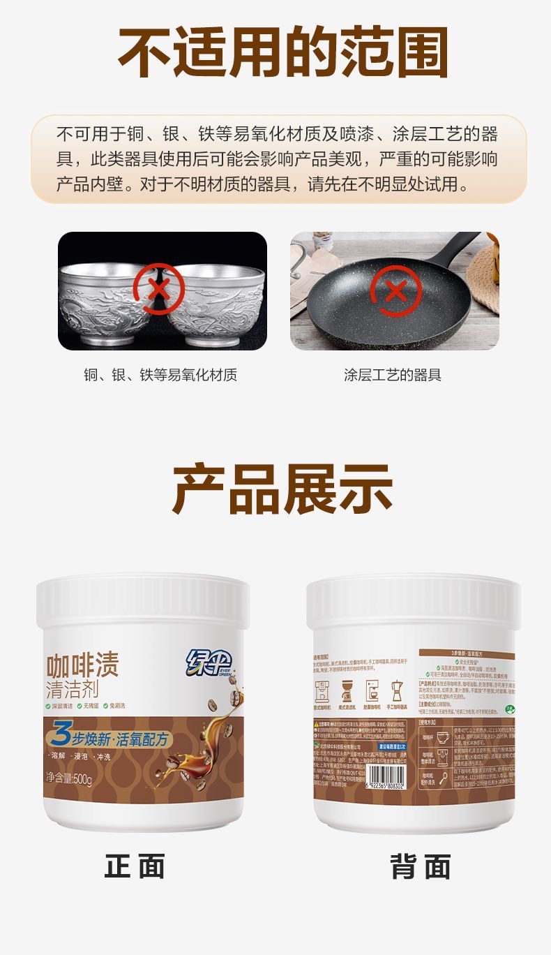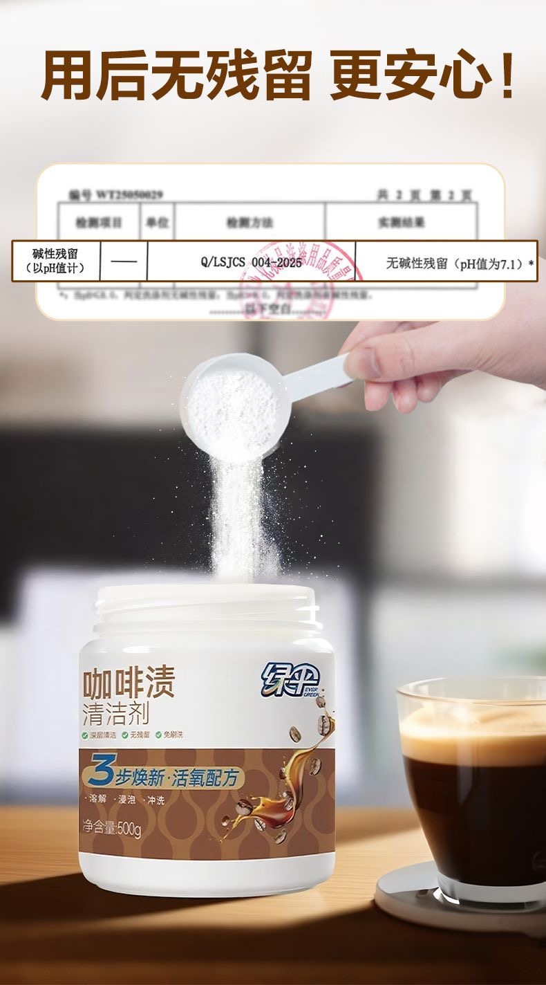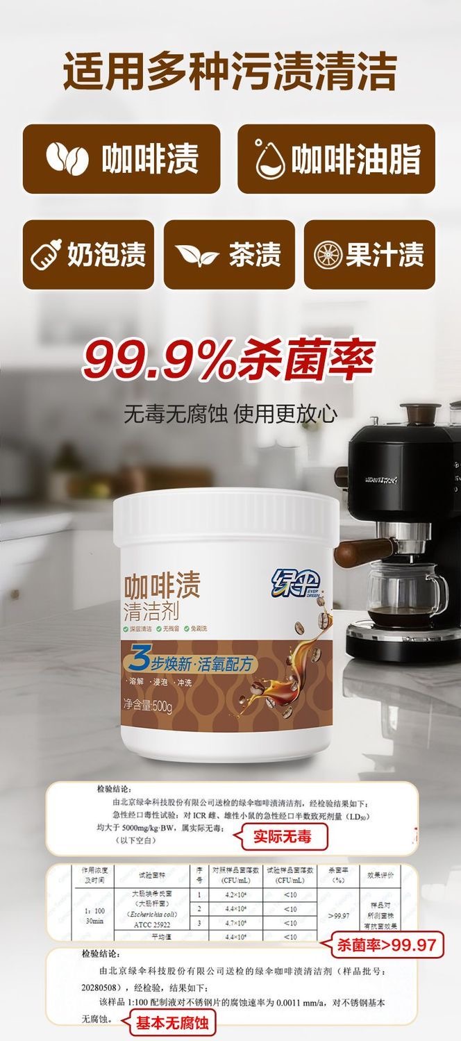 绿伞咖啡渍清洁剂500g茶渍家用咖啡机咖啡杯污渍除垢无毒无腐蚀