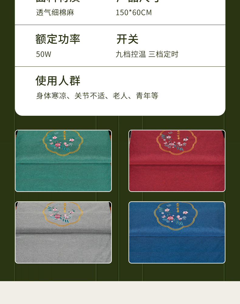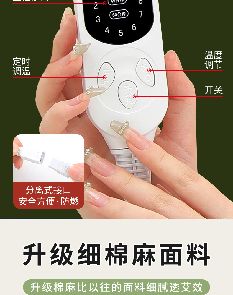 九档十档调节随机发货, 150*60cm尺寸设计(艾灸毯长度手工测量会有几厘米误差,最终以收到的实物为准!)