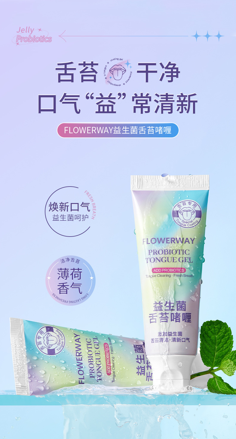 【福利❗️9.9抢3件🔥益生菌舌苔啫喱洁舌器】早晚清洁3分钟,口腔臭味去无踪,哈气都是薄荷香!水溶性啫喱 拯救口腔救星FLOWERWAY舌苔清洁啫喱除异味清新