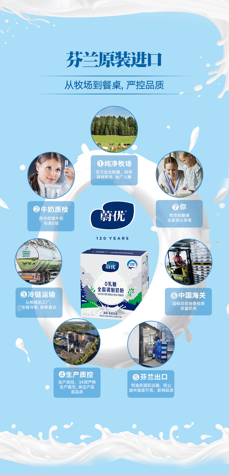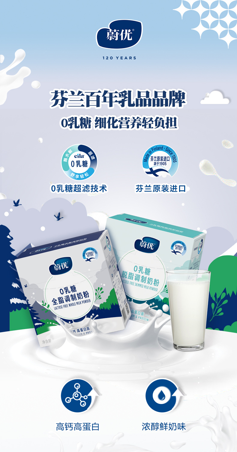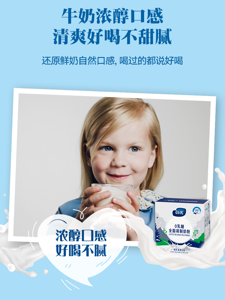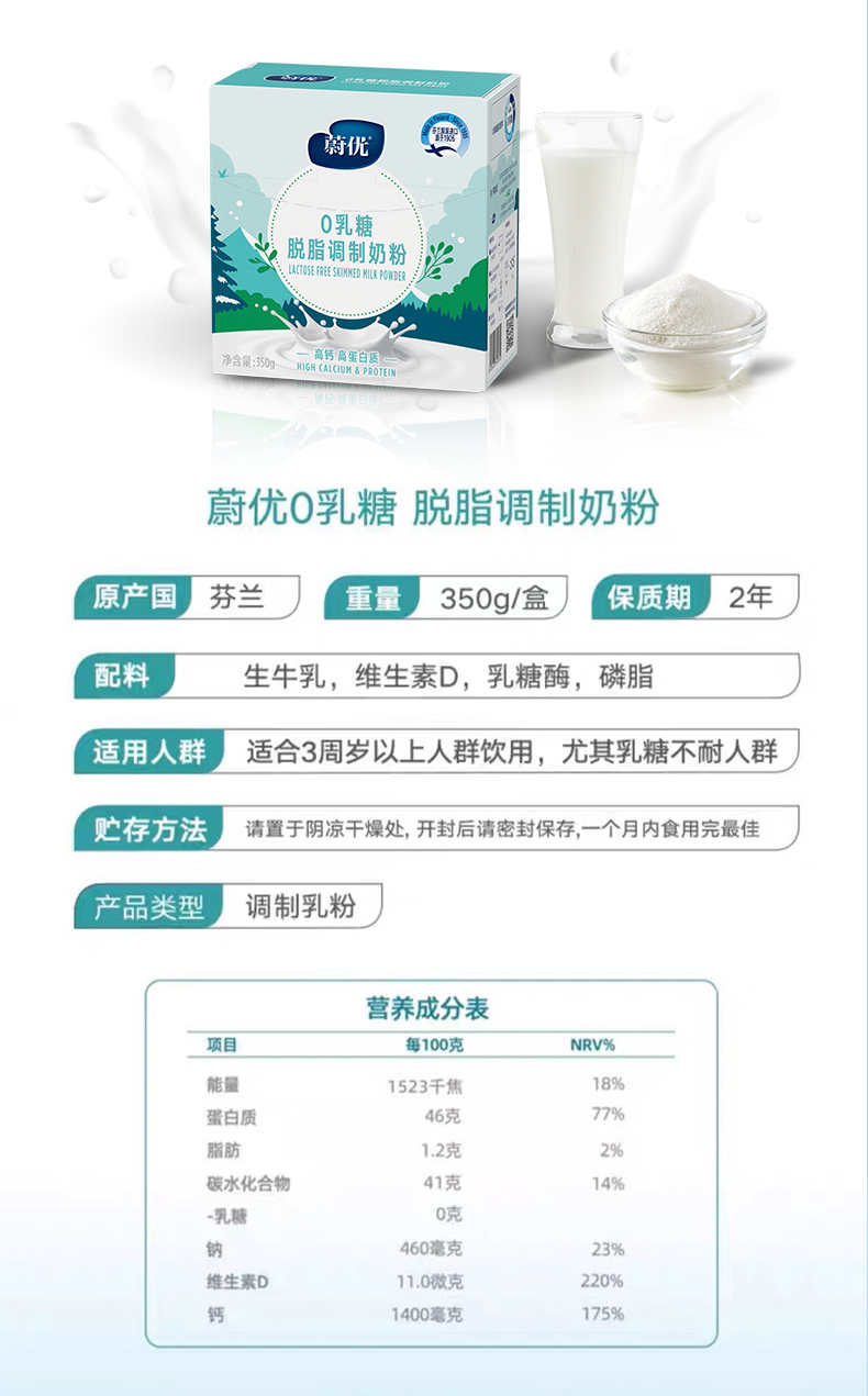 【活动】蔚优 芬兰原装进口 0乳糖 全脂奶粉/脱脂奶粉 盒装 350g