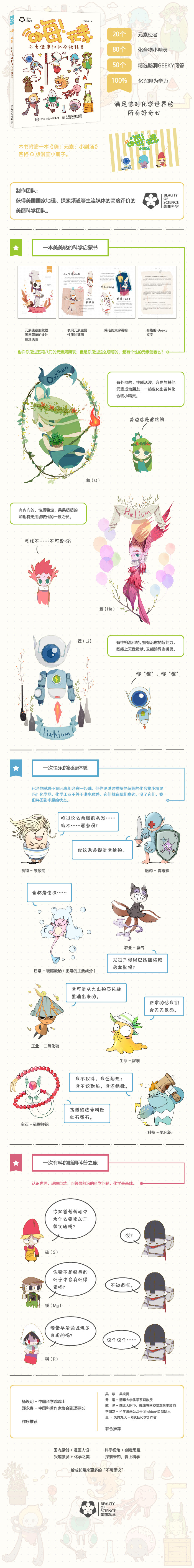 在爱丽萌德大陆,生活着一群元素使者,他们具有操控不同元素的能力。不同的元素使者可以联手召唤出化合物小精灵,他们共同组成了这个世界。但是,一股潜伏在黑暗中的未知力量却在蠢蠢欲动,妄图统治这个世界。一个人类世界的小男孩因为跟父亲生气,意外来到这个世界,并且改变了这一切。他会在爱丽萌德引发什么样的反应、展开什么样的冒险?他是怎么收获和元素使者之间的友情的?而在*后,他又能否回到原来的世界,能否和父亲重归于好呢? 这本科学漫画书不仅讲述了这样的一个奇幻故事,而且还专门设计了“学习时间”板块,满足你的好奇心与求知欲。本书还附赠人设贴纸和填色画!