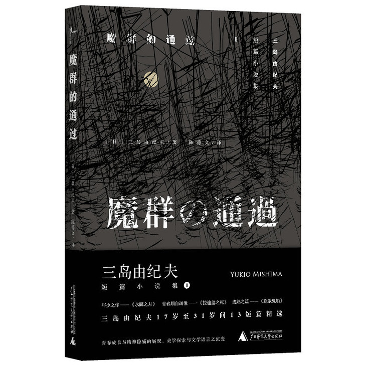 本书收录了三岛由纪夫十七岁至三十一岁期间十三篇短篇秀作,从青春时代的自我窥视到创作成熟期的美学建构,从少年人的踯躅写至老年人的悲哀,三岛式美学理念与创作手法之发展流变尽在其中。开篇之作《水面之月》,为三岛于少年时期所创作的“书信体心理小说”,全文由七篇书信组成,以第一人称叙述铺开精致绵密的心理独白,讲述平安时期男女相恋之事,极具特色与实验性。《拉迪盖之死》则是三岛之倾心力作,既是其青春时代自画像,又是一曲祭奠青春与理想的安魂曲。成熟之篇《施饿鬼船》,借小说人物之口说尽身为创作者的种种隐秘欲望,亦可视为三岛依托于创作中的心灵独白。全书篇目行文风格诡变,故事类型各异,欲之厮杀,爱之幻影,由青春至苍老的面孔流转中,展现肉身的激情与寂灭。每篇小说均带有三岛由纪夫标志性的美学理念,在残虐与优雅,爱欲与毁灭、与孤独之两极间不断切换,亦是流动再现战时至战后日本社会心灵图景的杰作。