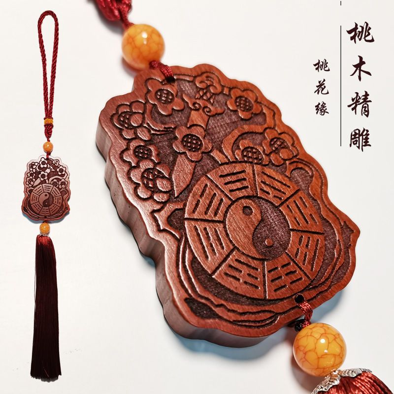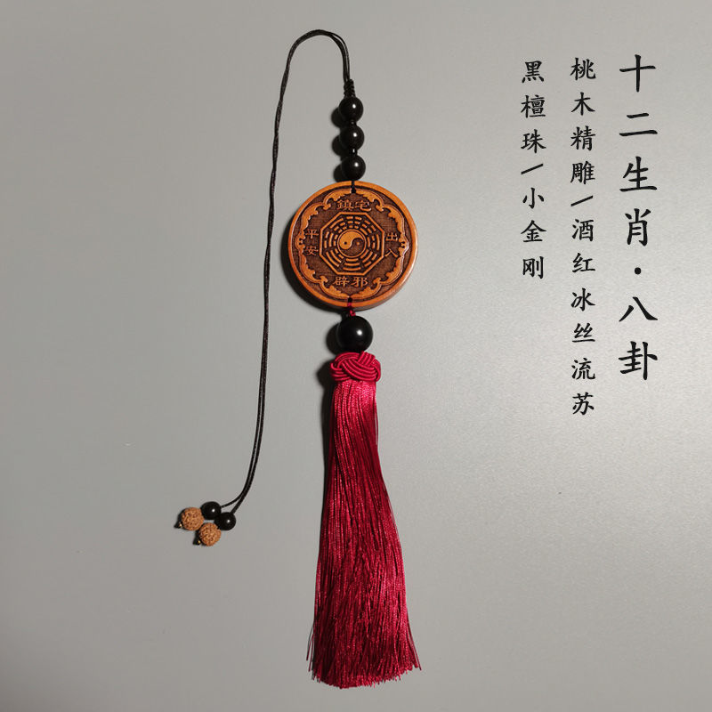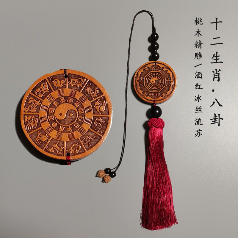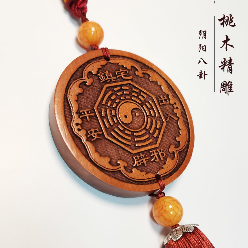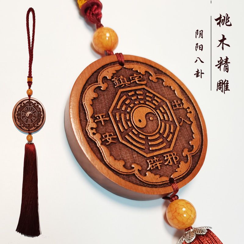 桃木八卦车挂 木雕车内挂件饰品 车吊饰挂男高档车内挂件